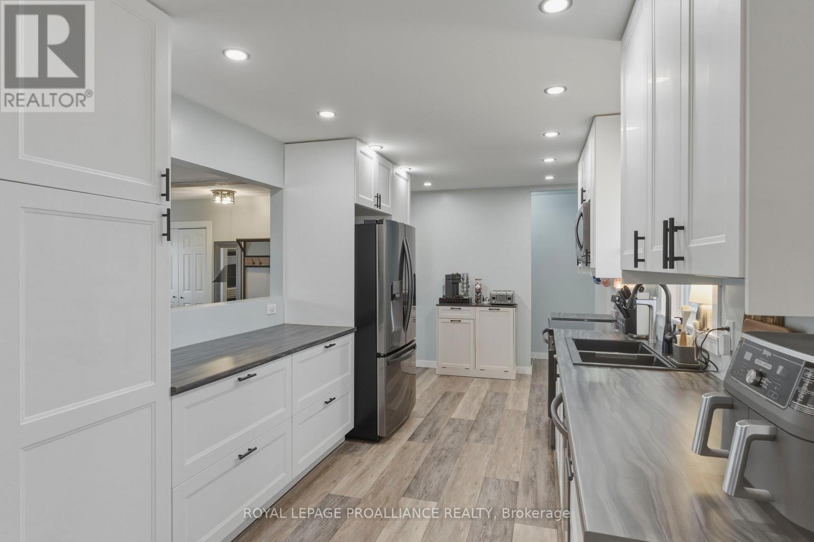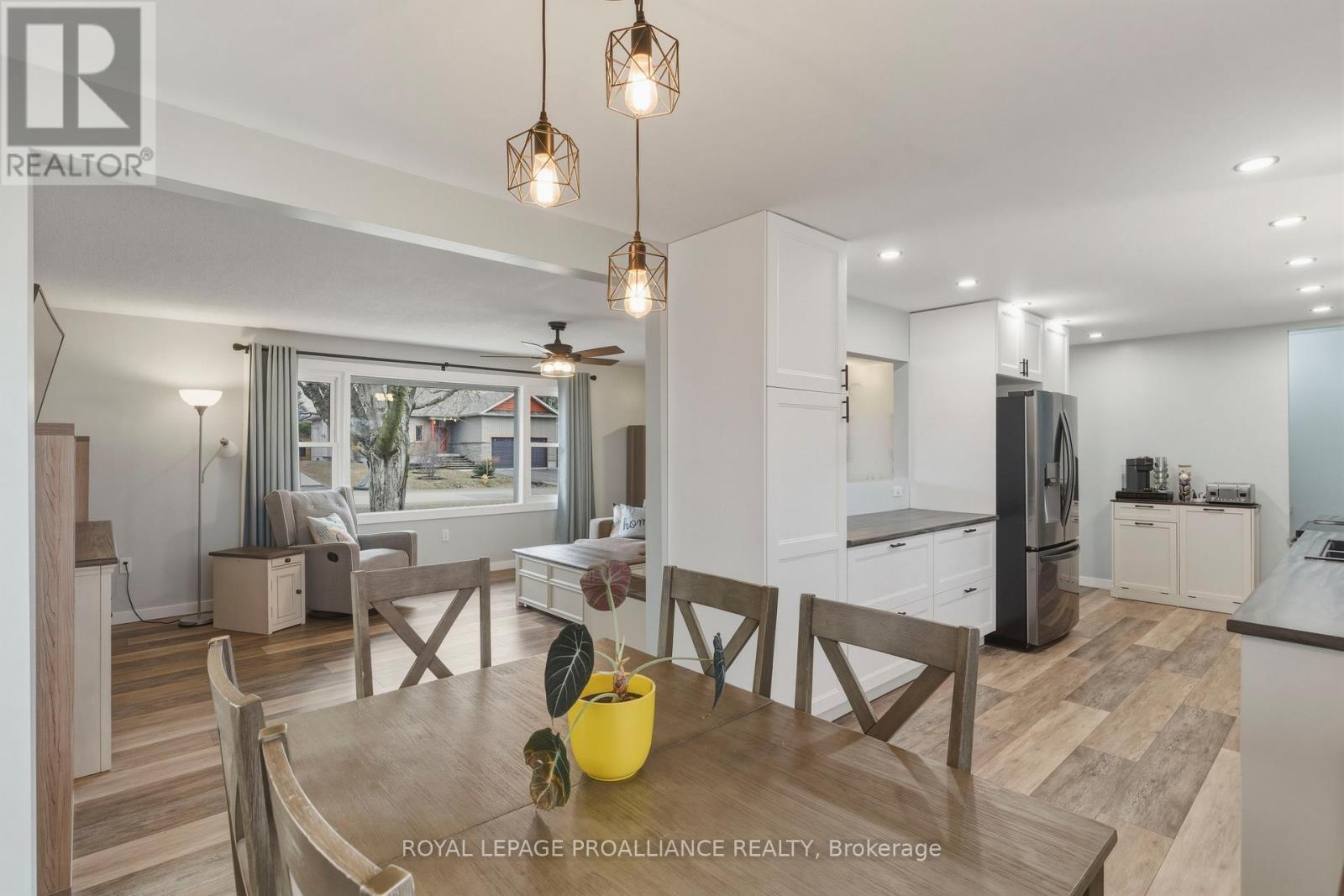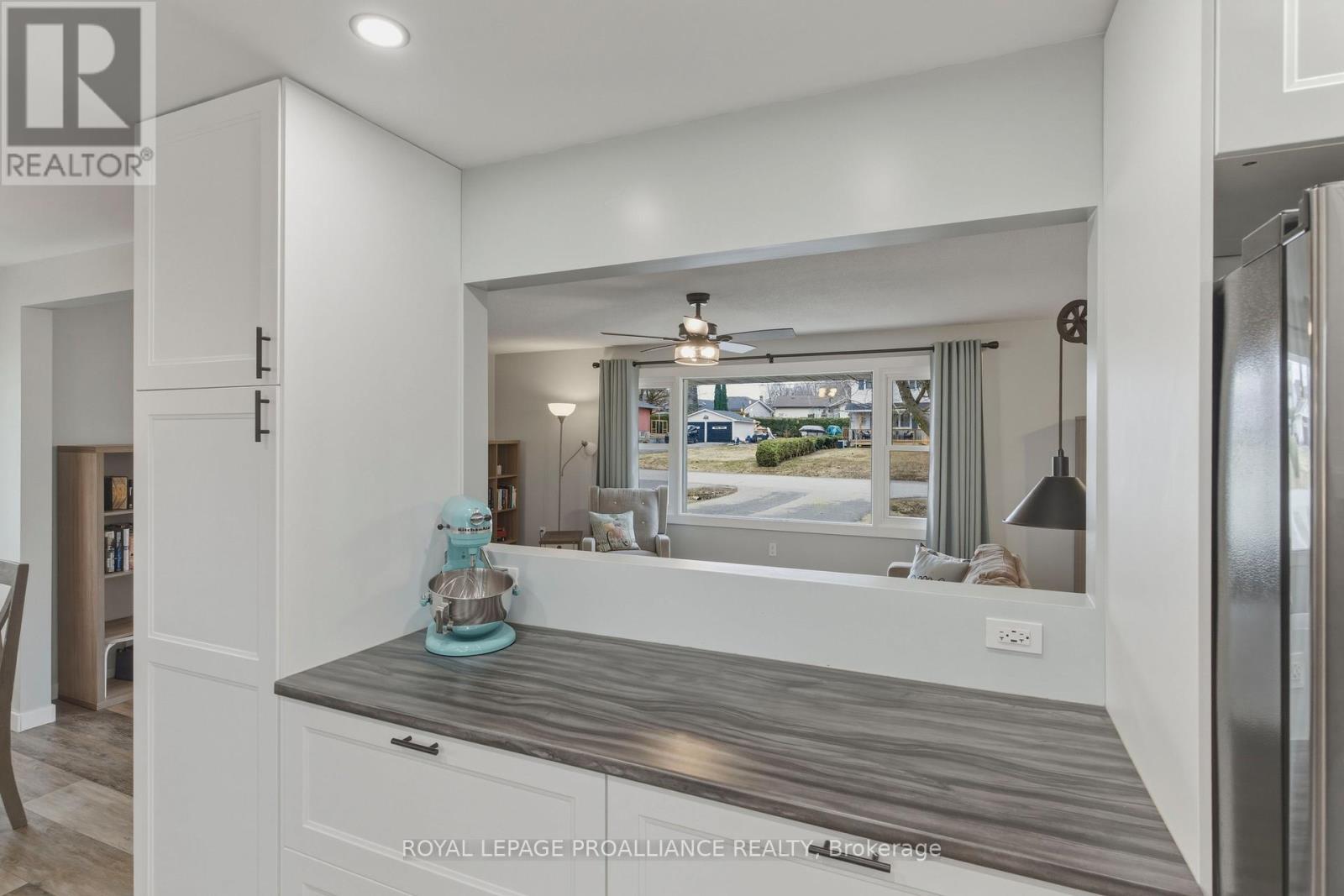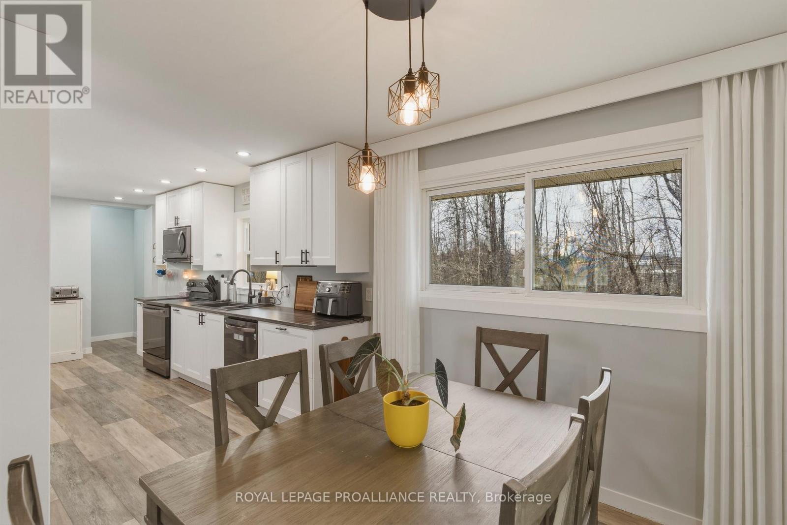 Beautifully updated in 2022, this 3-bedroom bungalow in Brockville's desirable north end offers functional and move-in ready living. The bright and spacious living room features a large front window that fills the space with natural light, while the modern kitchen is finished with soft-close cabinetry, dedicated pot and pan drawers, and updated stainless steel appliances. Wide vinyl plank flooring flows seamlessly throughout, creating a clean and cohesive feel. Additional updates include a forced air furnace (22'), metal roof, new shed (22'), and a fully renovated bathroom with a new vanity, LED mirror, and bathtub surround (22'). Motorized blackout blinds in 2 bedrooms, while all bedrooms are equipped with modern remote-controlled ceiling fans. A sump pump (22') provides added peace of mind, while the double-wide driveway adds everyday convenience. Ideally located close to schools, parks, and all of Brockville's amenities, this is a home you can simply move into and enjoy. (id:28469)