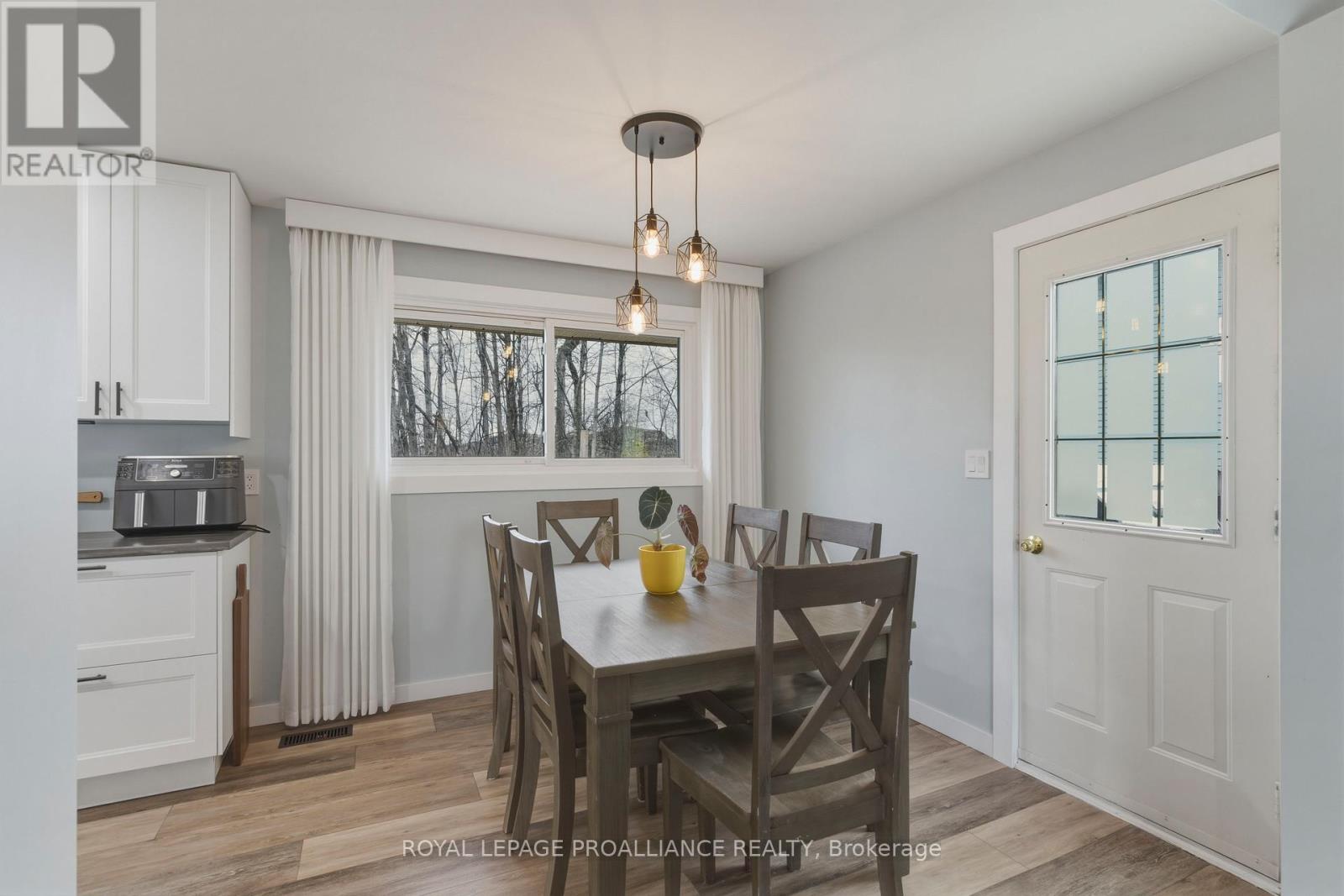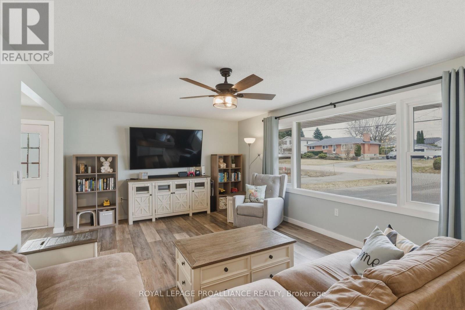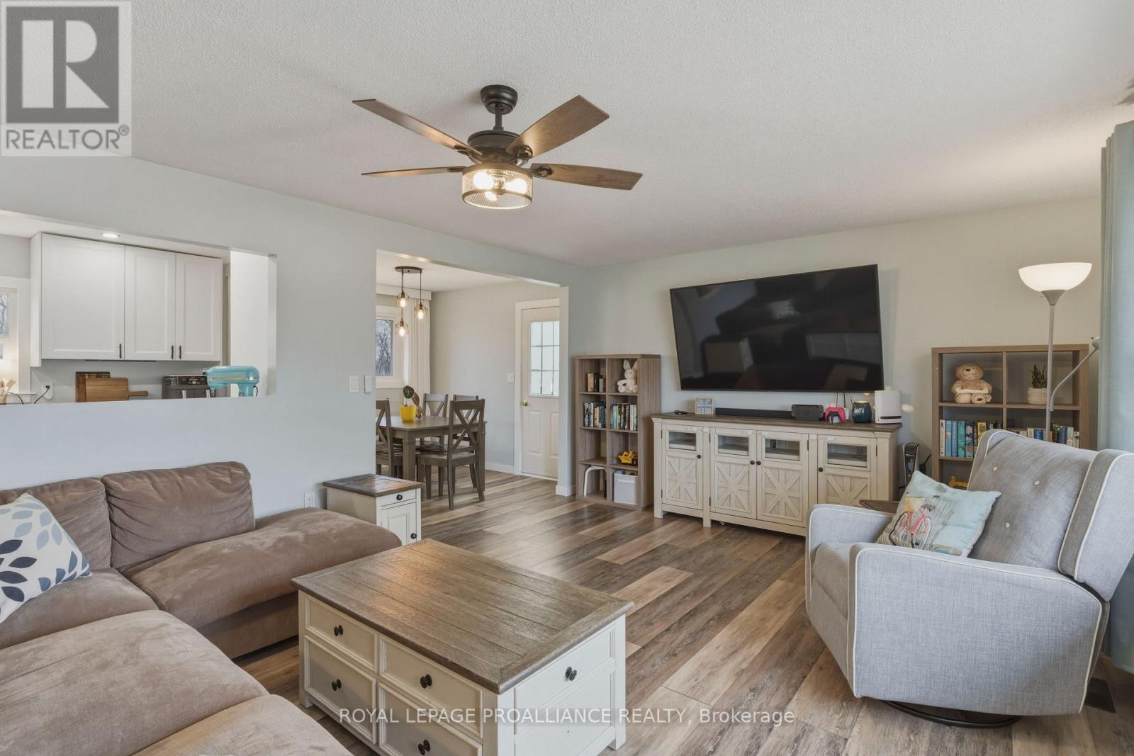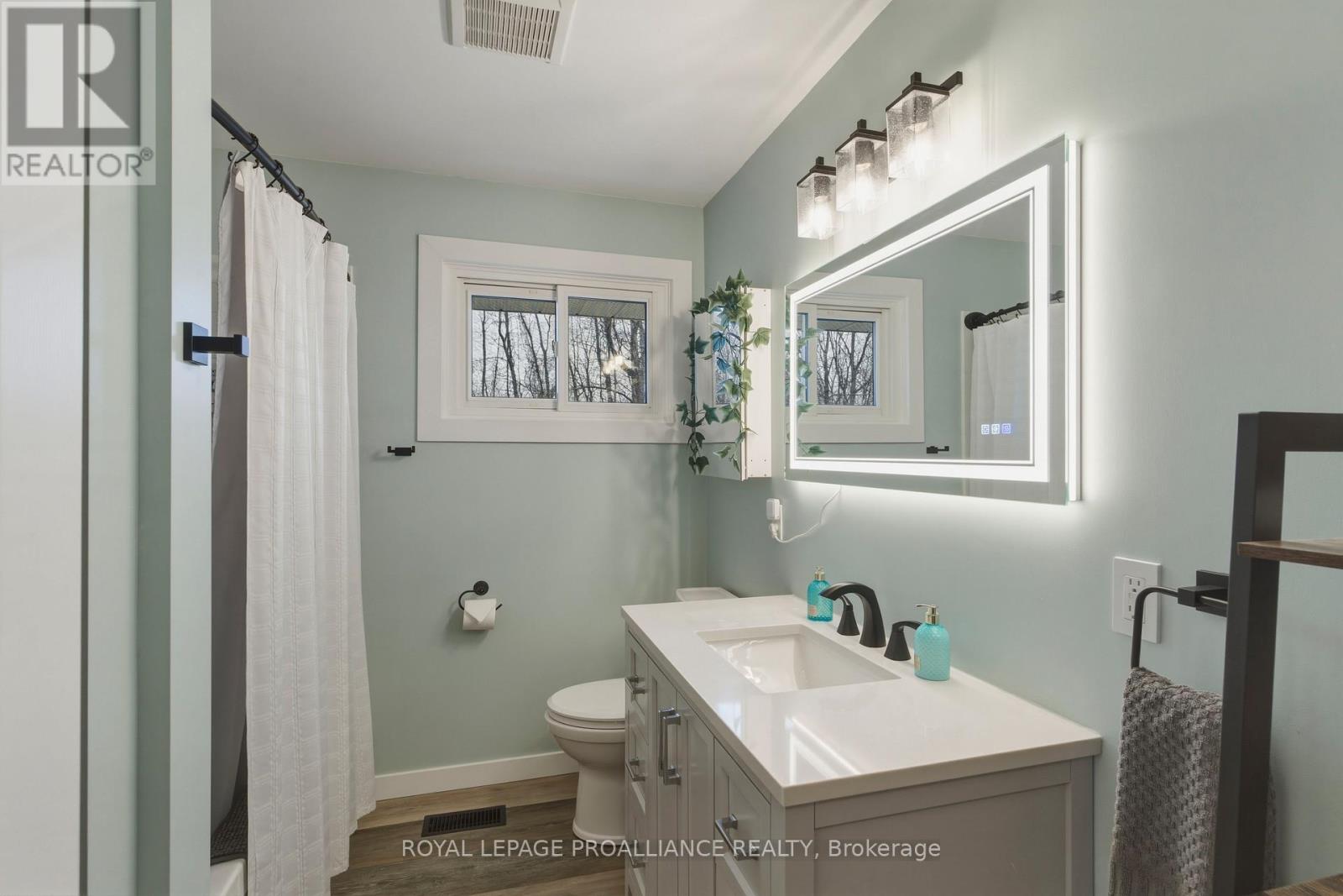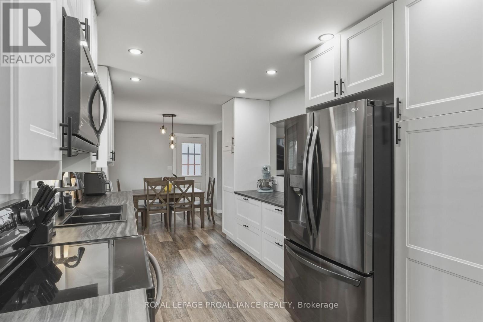 Beautifully updated in 2022, this 3-bedroom bungalow in Brockville's desirable north end offers functional and move-in ready living. The bright and spacious living room features a large front window that fills the space with natural light, while the modern kitchen is finished with soft-close cabinetry, dedicated pot and pan drawers, and updated stainless steel appliances. Wide vinyl plank flooring flows seamlessly throughout, creating a clean and cohesive feel. Additional updates include a forced air furnace (22'), metal roof, new shed (22'), and a fully renovated bathroom with a new vanity, LED mirror, and bathtub surround (22'). Motorized blackout blinds in 2 bedrooms, while all bedrooms are equipped with modern remote-controlled ceiling fans. A sump pump (22') provides added peace of mind, while the double-wide driveway adds everyday convenience. Ideally located close to schools, parks, and all of Brockville's amenities, this is a home you can simply move into and enjoy. (id:28469)