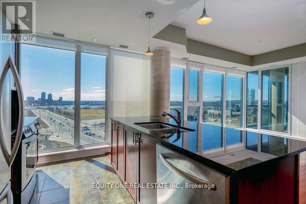 SPECTACULAR unobstructed sunset views of the Ottawa River and the Gatineau Hills! Welcome to 200 Lett in LeBreton Flats, home to Blues Fest, future home of the Ottawa Sens, parks, Canada Day celebrations, restaurants, shopping & more! This beautiful & bright open concept 2bed/2 bath design with hardwood floors will impress anyone. This trendy building offers a good balance of greenspace & access to plenty of amenities at your doorstep. The main fl features a large foyer, full bath, kitchen w/ granite counters, breakfast bar, SS appliances & convenient pantry for extra storage. Eat in the separate dining rm w/ floor to ceiling windows & patio door access to the balcony or relax in the bright living rm. Large primary bedroom w/ 3 pcs ensuite, 2nd bedroom & in-suite laundry round up the condo. Underground parking w/ locker. This building features rooftop terrace, sauna, gym & party room. Close to Little Italy, museums, restaurants, shopping, LRT and much more! Convenient underground parking on level A located approximately 60 feet from the elevator making loading and unloading easier. (id:28469)