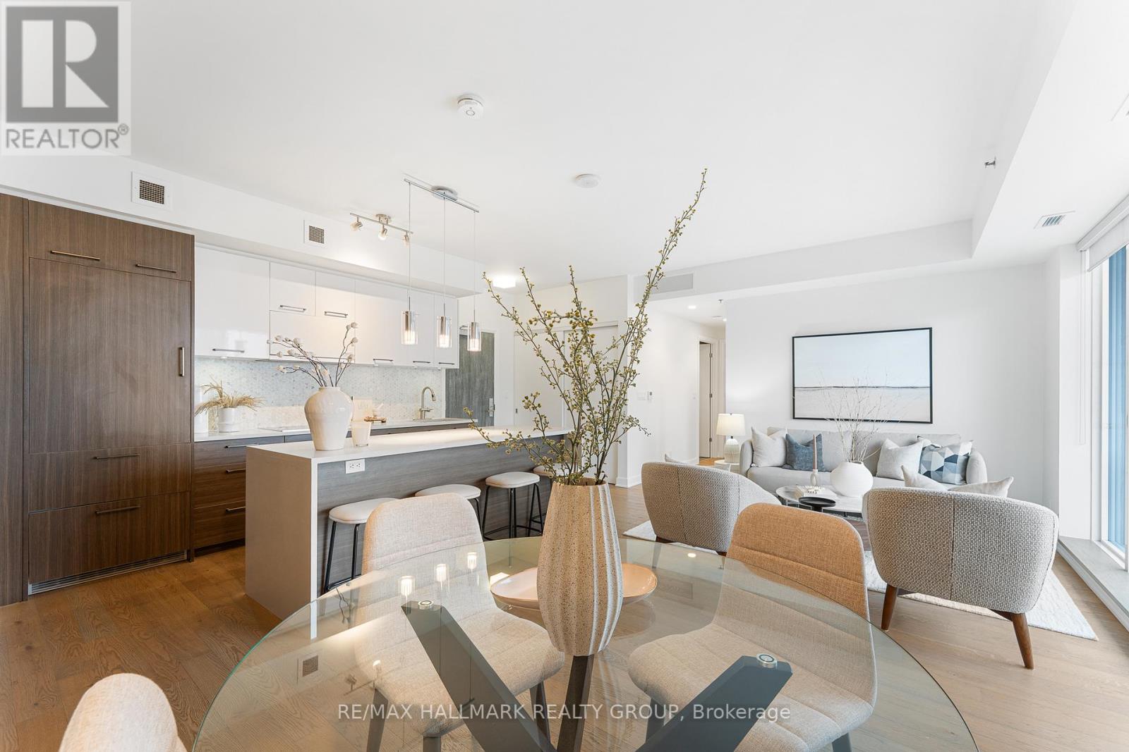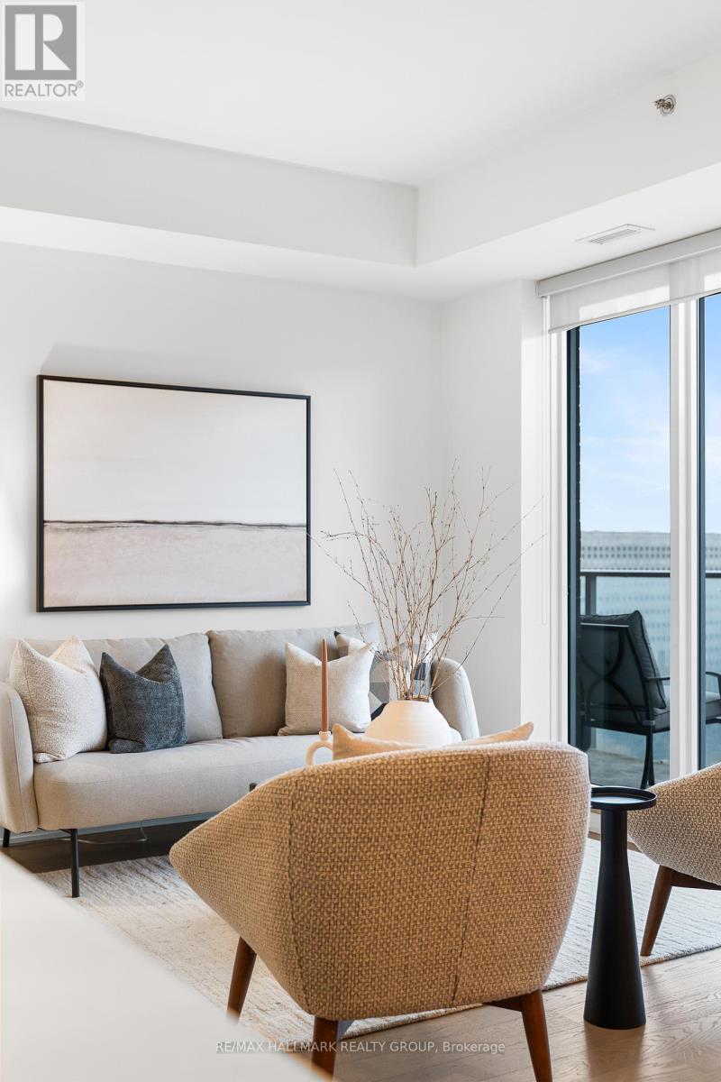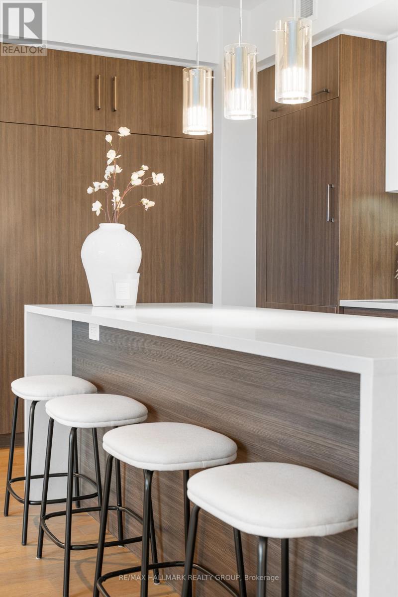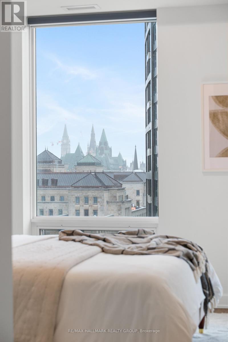 Welcome home to Cathedral Hill at 428 Sparks Street! This bright two bedroom, two full bathroom condo sits on the 10th floor and offers spectacular views of the Ottawa River, downtown skyline, Gatineau Hills, and Parliament. The open-concept layout features floor-to-ceiling windows, hardwood flooring throughout, and a sleek European-inspired kitchen with built-in appliances, two-tone cabinetry, mosaic backsplash, and a modern island with breakfast bar. The spacious Primary Bedroom includes a walk-in closet and spa-like ensuite with glass shower and deep soaker tub. Enjoy your private balcony, in-suite laundry, underground parking, and storage locker, all within an environmentally friendly building. Residents have access to premium amenities including a fitness centre, yoga studio, party room, pet wash station, and concierge service.Ideally located steps to Lyon LRT, LeBreton Flats, Parliament Hill, and downtown Ottawa's best amenities-this is refined urban living in an unbeatable location! Come fall in love today. (id:28469)