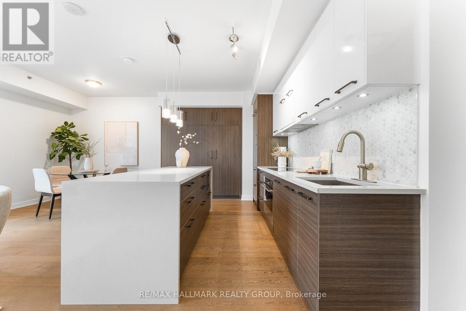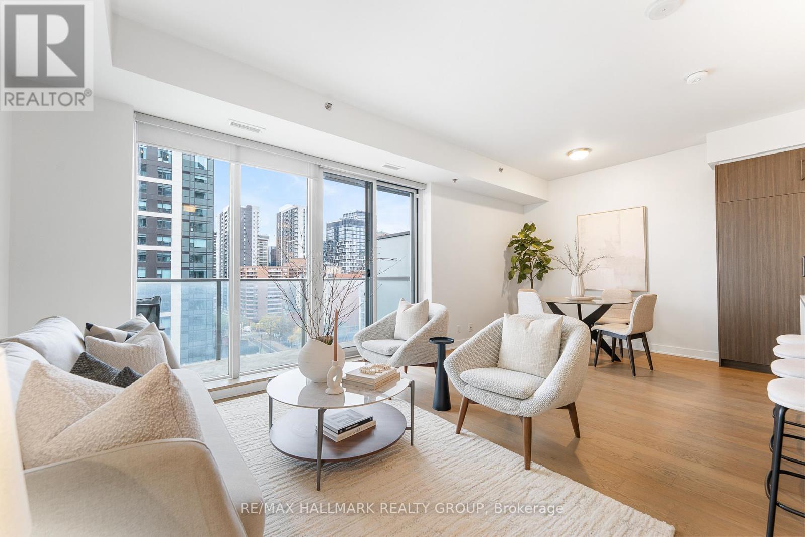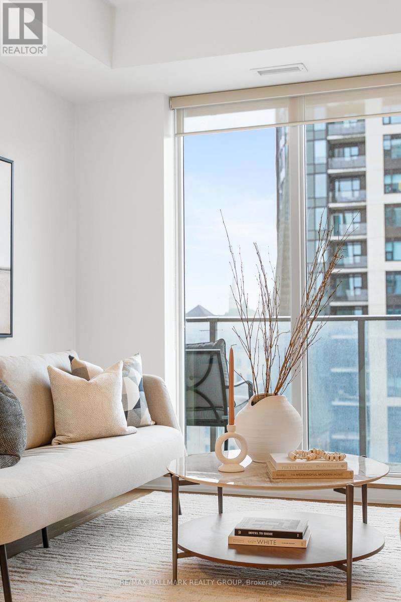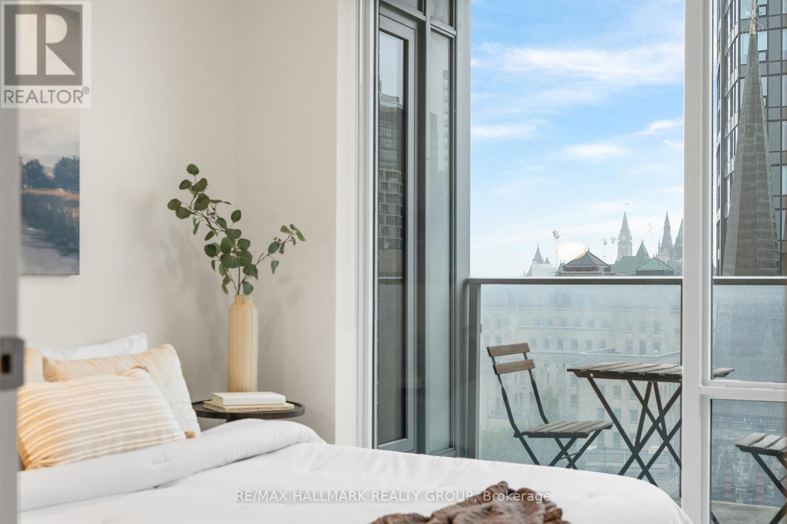 Welcome home to Cathedral Hill at 428 Sparks Street! This bright two bedroom, two full bathroom condo sits on the 10th floor and offers spectacular views of the Ottawa River, downtown skyline, Gatineau Hills, and Parliament. The open-concept layout features floor-to-ceiling windows, hardwood flooring throughout, and a sleek European-inspired kitchen with built-in appliances, two-tone cabinetry, mosaic backsplash, and a modern island with breakfast bar. The spacious Primary Bedroom includes a walk-in closet and spa-like ensuite with glass shower and deep soaker tub. Enjoy your private balcony, in-suite laundry, underground parking, and storage locker, all within an environmentally friendly building. Residents have access to premium amenities including a fitness centre, yoga studio, party room, pet wash station, and concierge service.Ideally located steps to Lyon LRT, LeBreton Flats, Parliament Hill, and downtown Ottawa's best amenities-this is refined urban living in an unbeatable location! Come fall in love today. (id:28469)