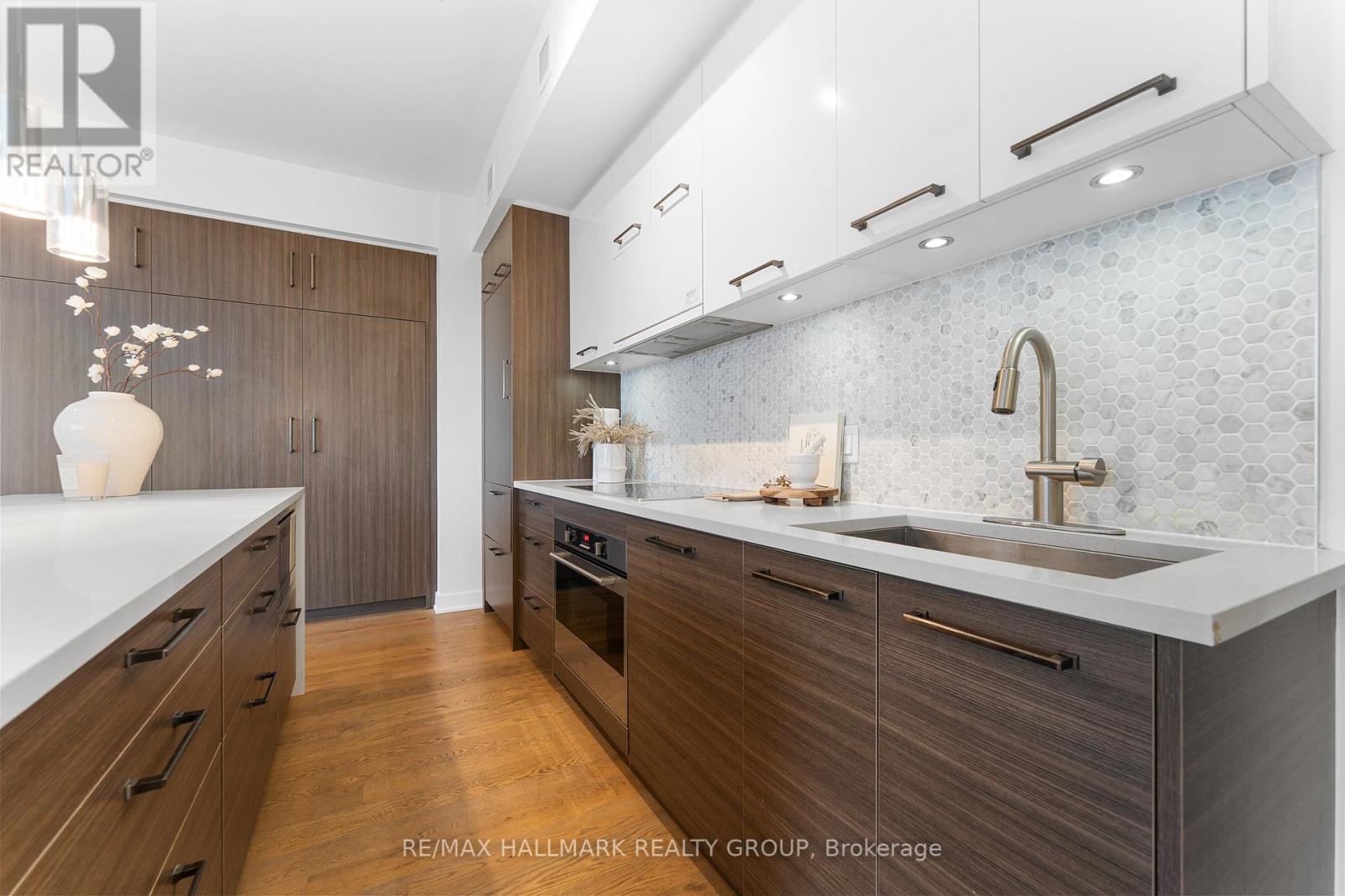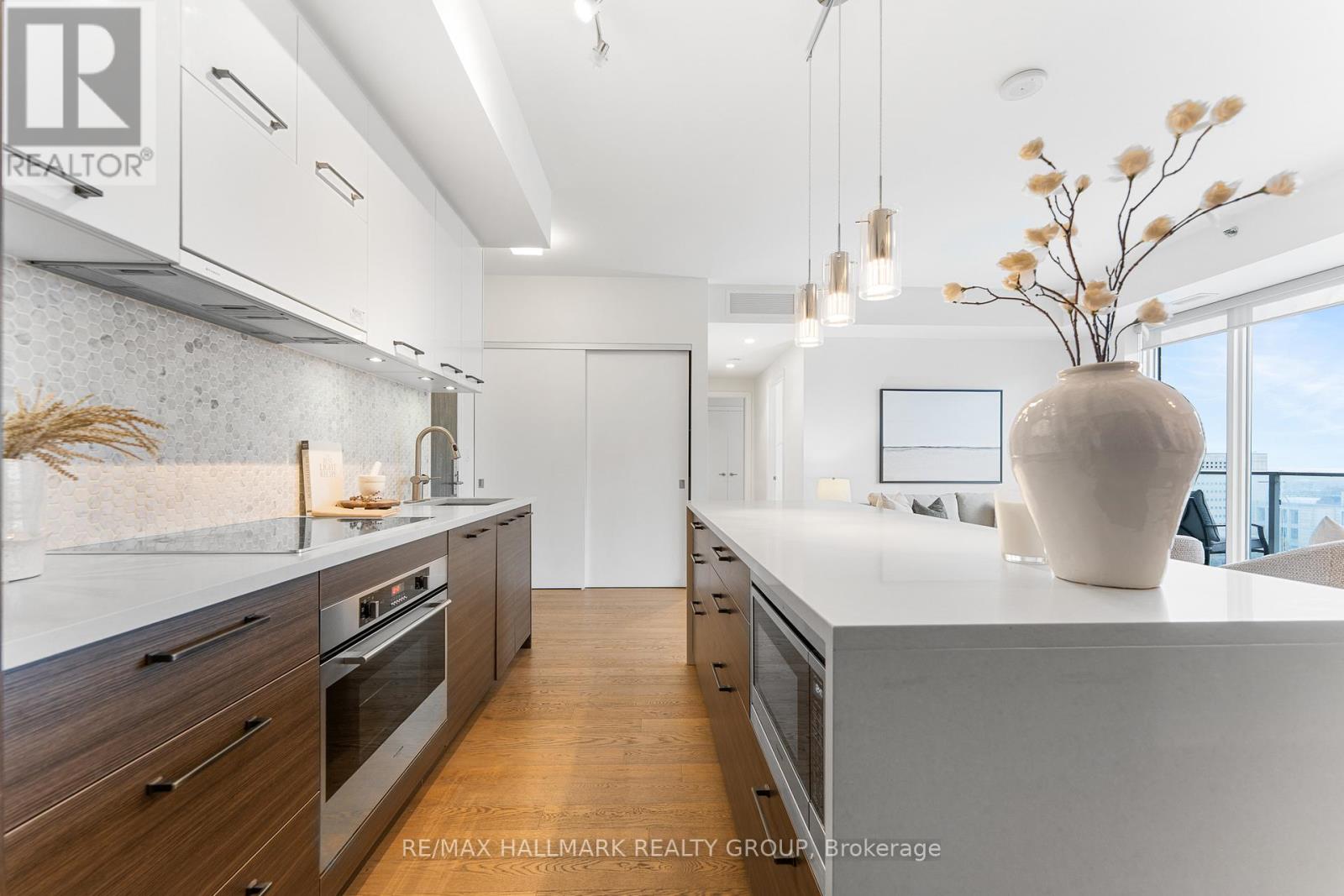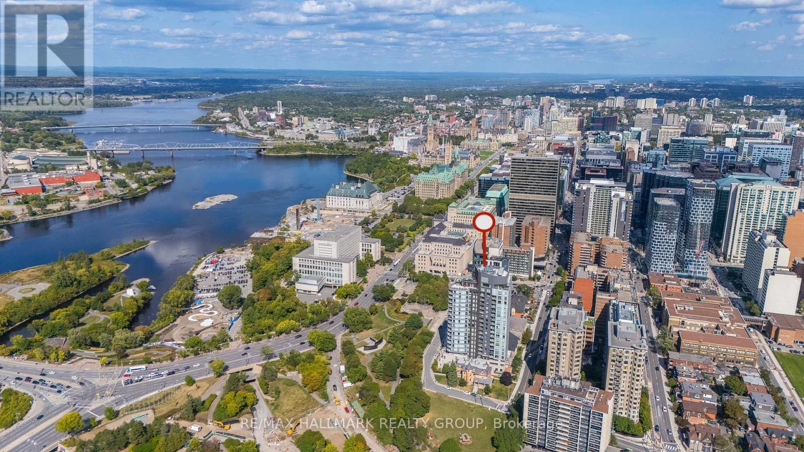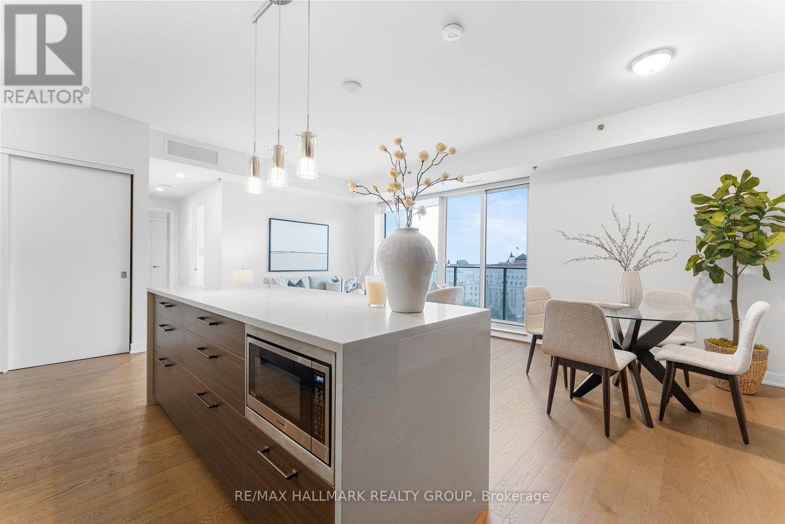 Welcome home to Cathedral Hill at 428 Sparks Street! This bright two bedroom, two full bathroom condo sits on the 10th floor and offers spectacular views of the Ottawa River, downtown skyline, Gatineau Hills, and Parliament. The open-concept layout features floor-to-ceiling windows, hardwood flooring throughout, and a sleek European-inspired kitchen with built-in appliances, two-tone cabinetry, mosaic backsplash, and a modern island with breakfast bar. The spacious Primary Bedroom includes a walk-in closet and spa-like ensuite with glass shower and deep soaker tub. Enjoy your private balcony, in-suite laundry, underground parking, and storage locker, all within an environmentally friendly building. Residents have access to premium amenities including a fitness centre, yoga studio, party room, pet wash station, and concierge service.Ideally located steps to Lyon LRT, LeBreton Flats, Parliament Hill, and downtown Ottawa's best amenities-this is refined urban living in an unbeatable location! Come fall in love today. (id:28469)
