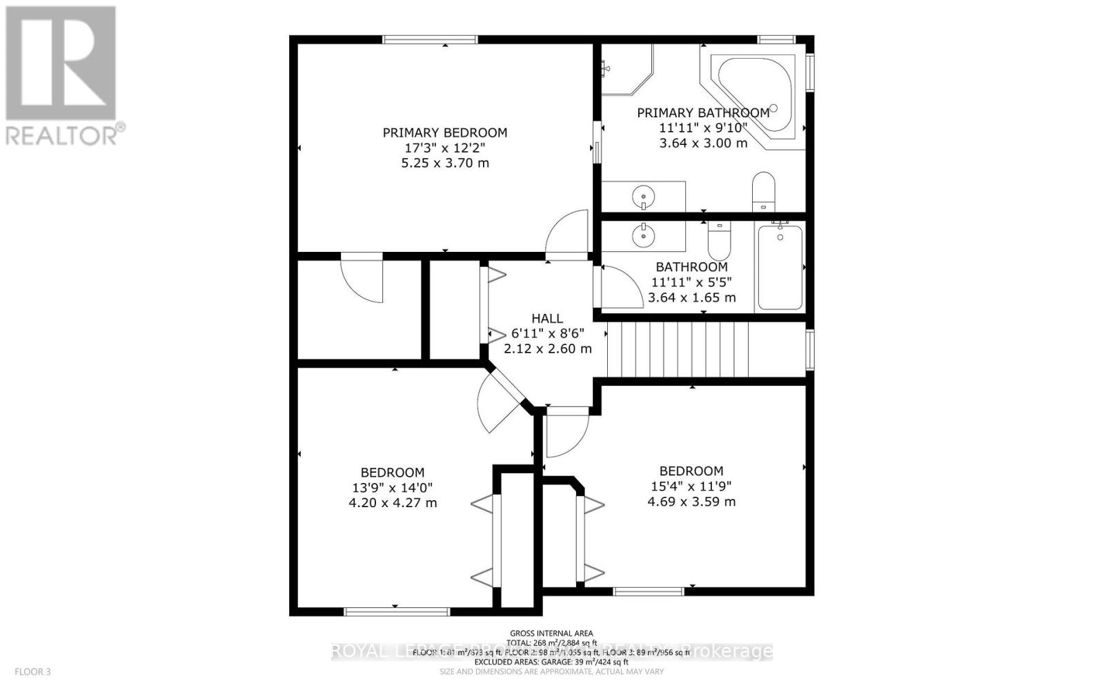 | Second Level | Primary Bedroom | 5.25 m | 3.7 m | 5.25 m x 3.7 m |