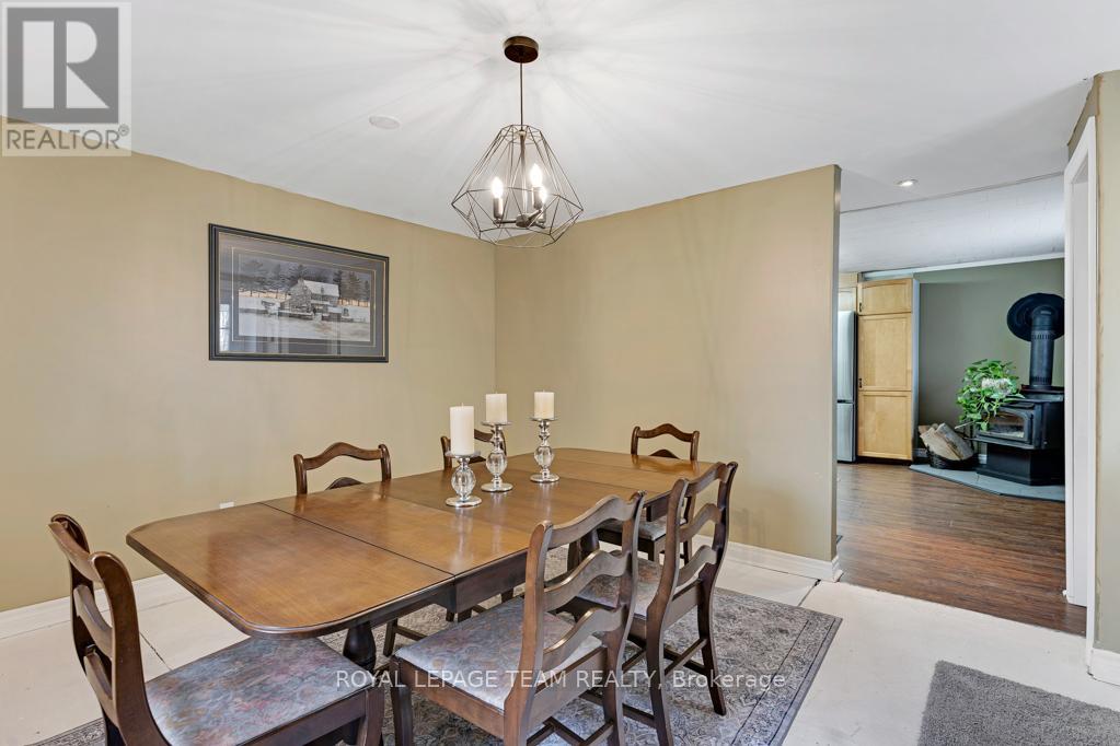 Welcome to your country retreat-an inviting 4-bedroom home set on 3.7 acres of peaceful rural landscape. This transformed farmhouse blends timeless character with modern comfort, thanks to a spacious addition that offers room for the whole family.A wraparound covered porch greets you with classic farmhouse charm. Step inside to a welcoming foyer with a large closet, opening into a bright living room featuring a stone woodburning fireplace and terrace-door access to multiple outdoor living spaces. Just a few steps away, the eat-in kitchen offers warm wood cabinetry, a cozy woodstove, and access to a lovely sunporch-an ideal spot for morning coffee, plants, or flexible living needs. A formal dining room provides the perfect setting for hosting gatherings. The renovated main-floor bath impresses with beautiful tilework, a separate shower, and a deep soaker tub.Upstairs, the generous primary suite is a true retreat, complete with in-floor heating, a 4-piece ensuite with soaker tub and separate shower, and a spacious walk-in closet. The bedroom itself is expansive and filled with natural light, offering tranquil views of the grounds. Three additional second-level bedrooms are all well-sized; one is currently used as a home office and includes its own 2-piece ensuite.Efficient geothermal heating with wood backup keeps the home comfortable year-round. Outside, a triple-bay driveshed, log workshop, and detached single-car garage offer excellent storage and workspace options. The wide-open area behind the home provides endless possibilities-gardens, play space, hobby projects, or simply room to breathe.A true country paradise-this remarkable property is not to be missed. (id:28469)