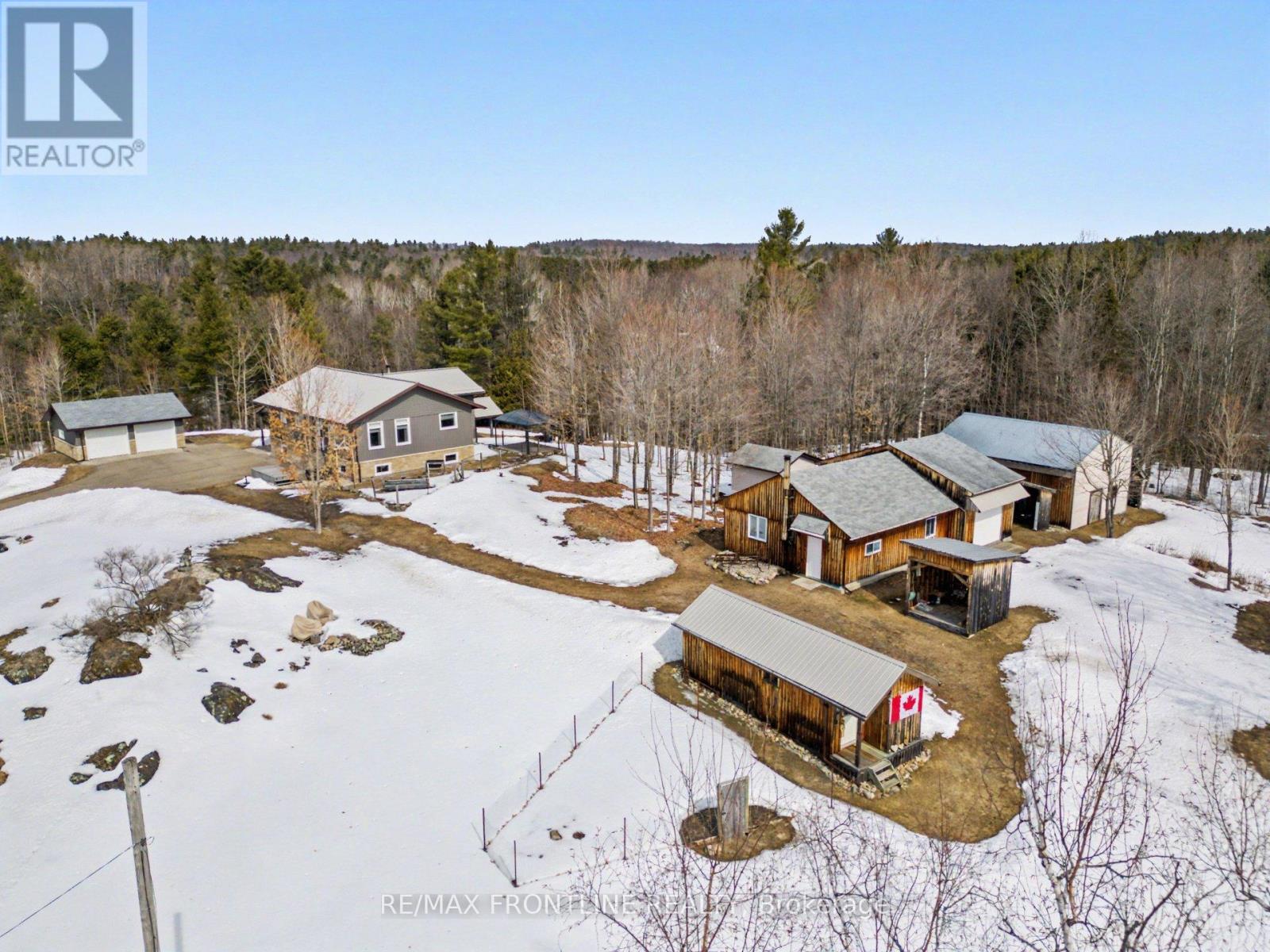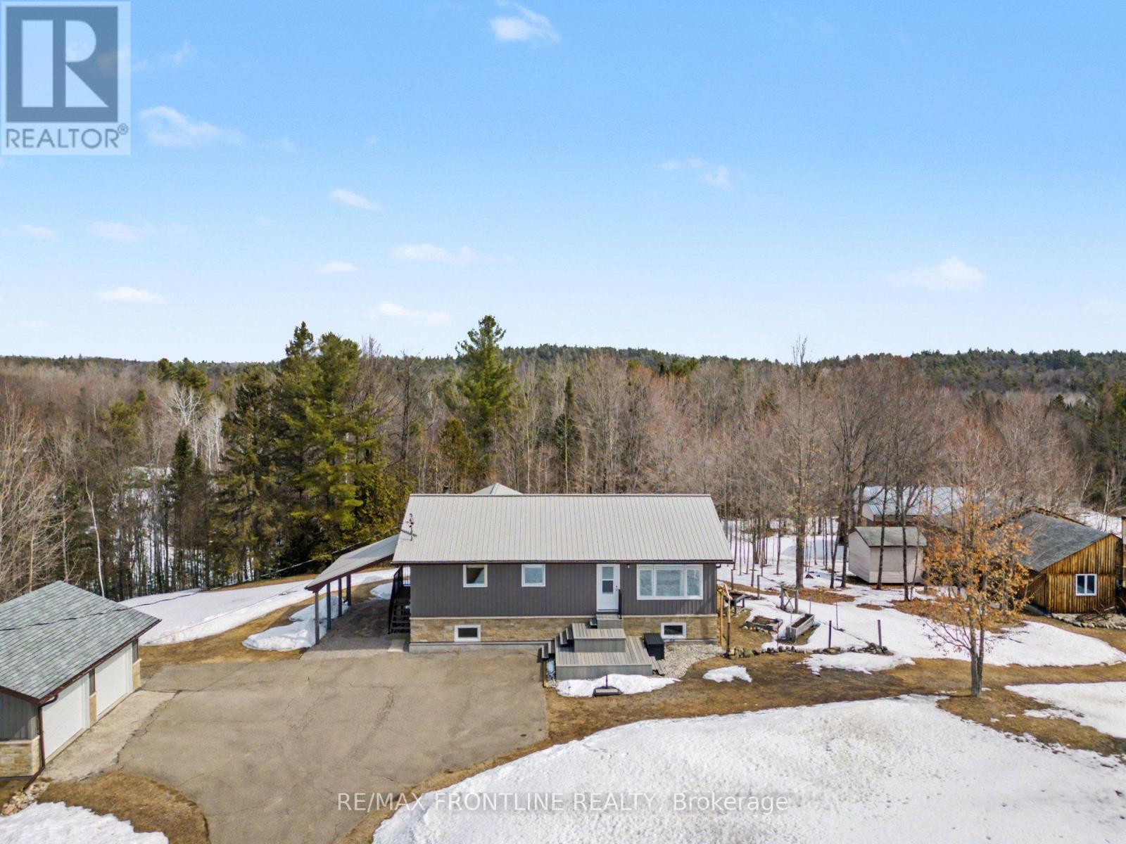 Welcome to your country dream home nestled in the stunning rural landscape of Lanark Highlands! This meticulously maintained, charming three-bedroom, two-bathroom home sits on an amazing 193 private acres with an additional 390 acres of Crown land right next door (not accessible to the public). If you love the outdoors, hunting, hiking, or just enjoying privacy and fresh air, this is the place for you. Step inside and you'll find a beautiful large kitchen with island and ample cupboards, perfect for cooking and entertaining, as well as a primary bedroom with convenient 2pc powder room, 2 additional bedrooms, an office or storage room, and 4pc bath with laundry. The full basement features a convenient walkout, with a workout room or 4th bedroom if desired, giving you plenty of extra living space to enjoy year round. Outside is where this property stands out. If you are looking for space for hobbies, projects, or farming you will appreciate all of the outbuildings including a two-car garage, and an insulated workshop with oversized door, ideal for larger equipment. There is also a two-storey storage barn, a large garden shed and woodsheds, not to mention a sand pit on the property. You will love the landscape which features a mix of bush with maple, cedar and pine trees. With the ample acreage there may be severance potential. The surrounding area offers a peaceful, laid-back lifestyle with a short drive to the charming village of Lanark, and fabulous shops and restaurants in Almonte or Perth. Calabogie Peaks Ski Resort, several golf courses, and lakes are also nearby.The quality of build throughout this property speaks for itself, the acreage and price point makes it an outstanding opportunity. This is country living at its finest. Book your showing today and come see everything this incredible property has to offer. (id:28469)