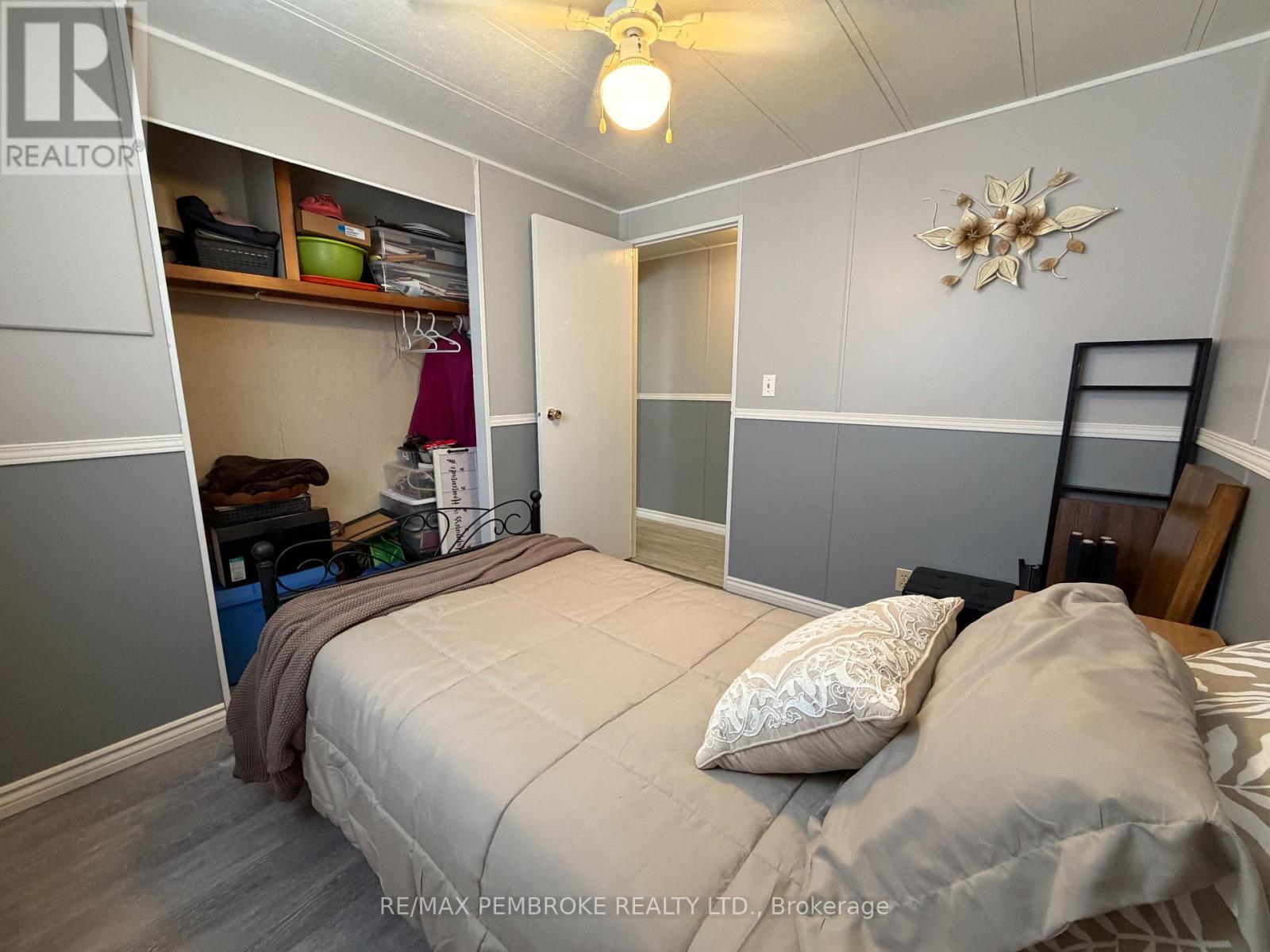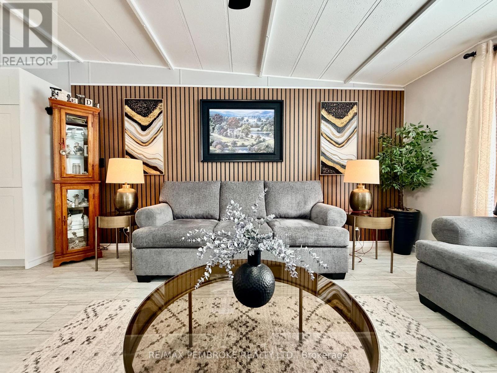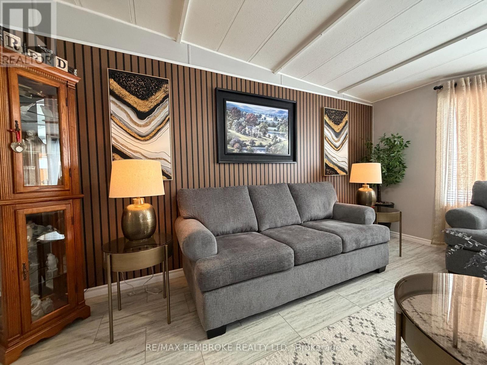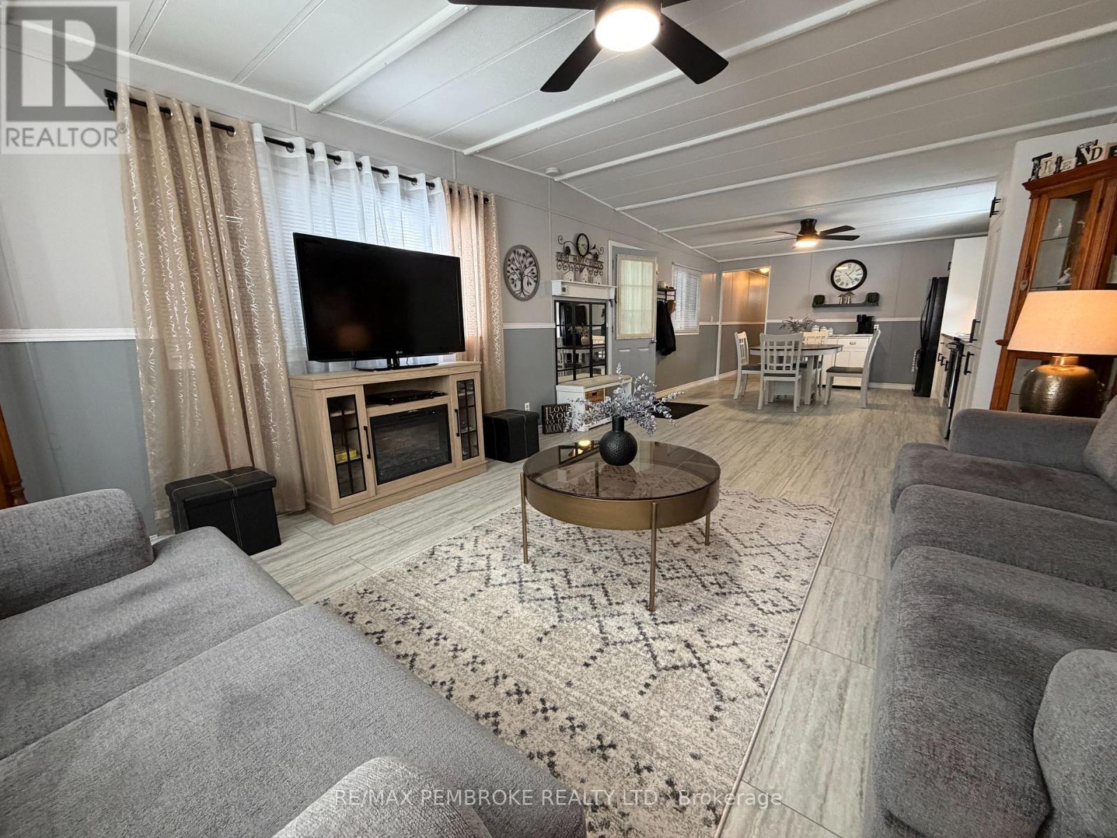 Welcome to 103 Pinehurst Estates in Petawawa, an updated and move-in ready home offering exceptional value and a great location just minutes from key employment hubs including Garrison Petawawa (approximately 5 minutes) and Canadian Nuclear Laboratories at Chalk River (approximately 20 minutes). This well-maintained 2-bedroom home with an additional den or workshop features a spacious primary bedroom with double closets, a full bathroom with convenient in-unit laundry, and a bright, open-concept living space highlighted by modern vinyl floor tile( done in december 2025 ), updated finishes, and a stylish feature wall. The kitchen ( 2 years old) offers ample cabinetry, included appliances, and flows seamlessly into the dining and living areas, creating a functional layout ideal for both everyday living and entertaining. A practical mudroom adds extra storage and convenience, while the inviting front deck provides a great space to relax outdoors under the steel gazebo. Situated on a lot with a double driveway, the property also includes a storage shed, Rubbermaid garbage storage, and two additional storage containers offering plenty of room for tools and seasonal items. Perfect for first-time buyers or downsizers this home delivers outstanding affordability, comfort, and location. Quick Closing available (id:28469)