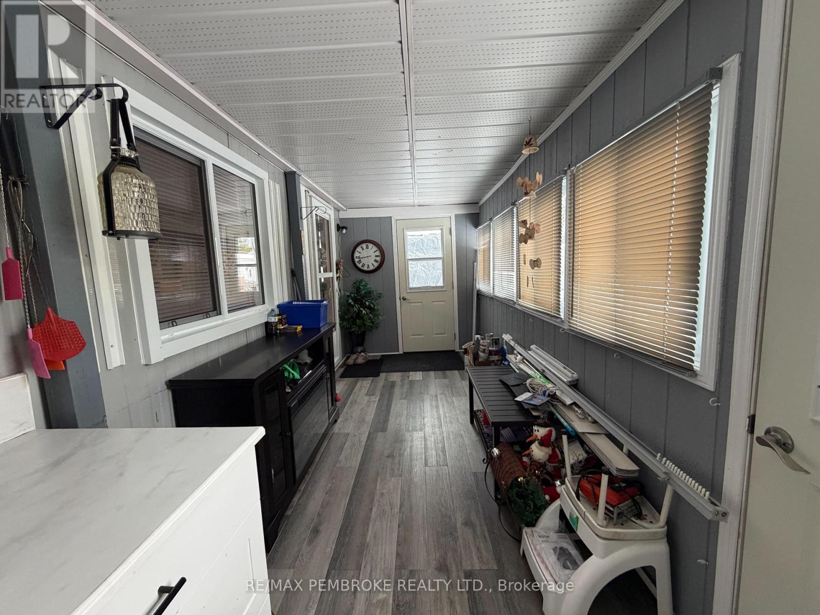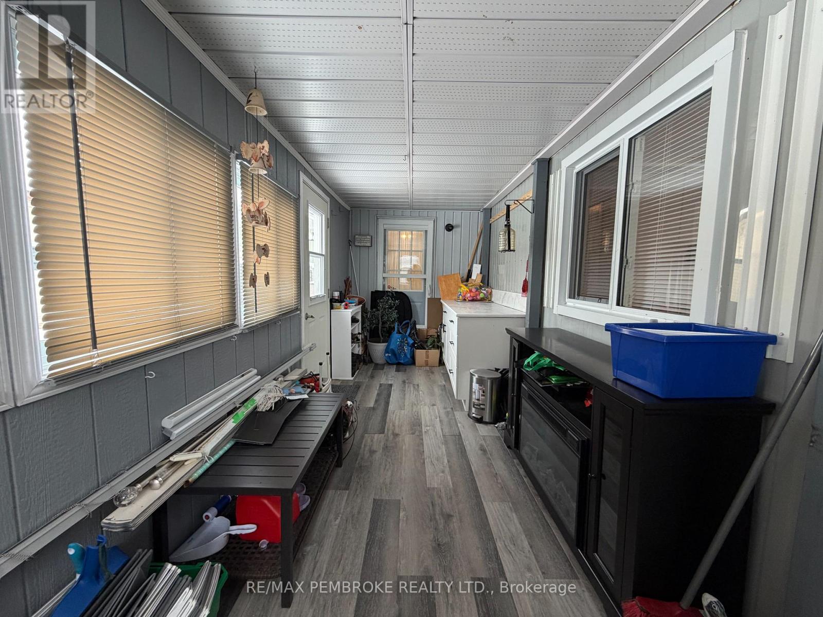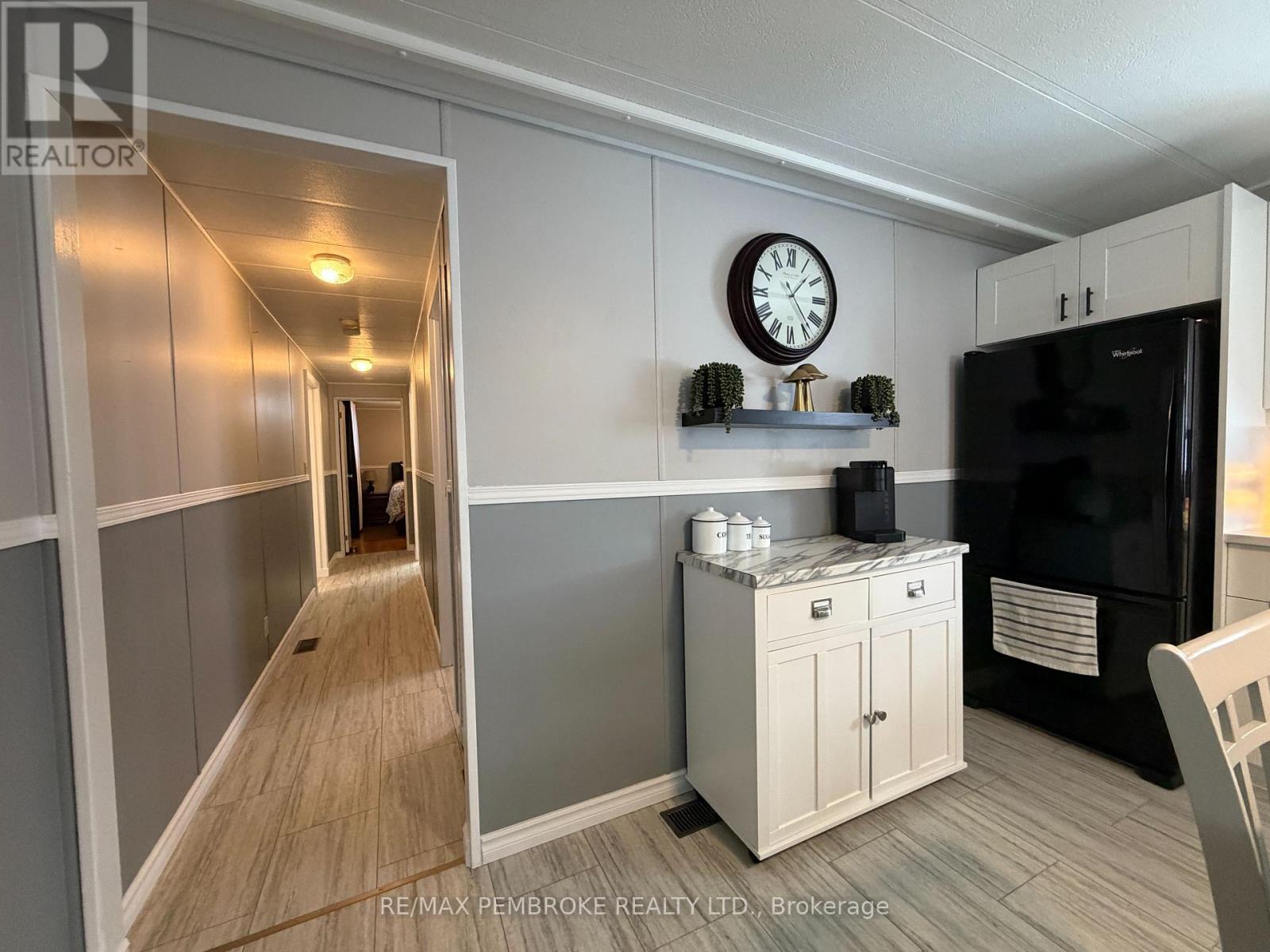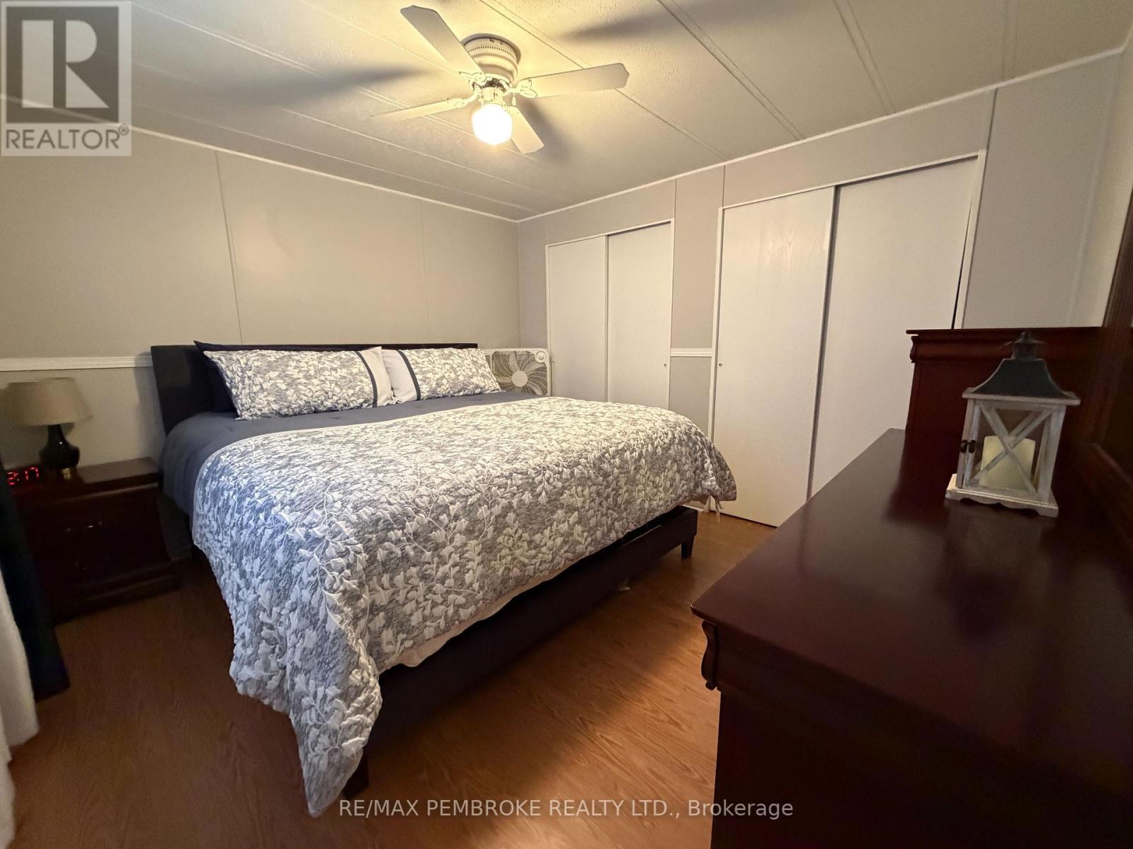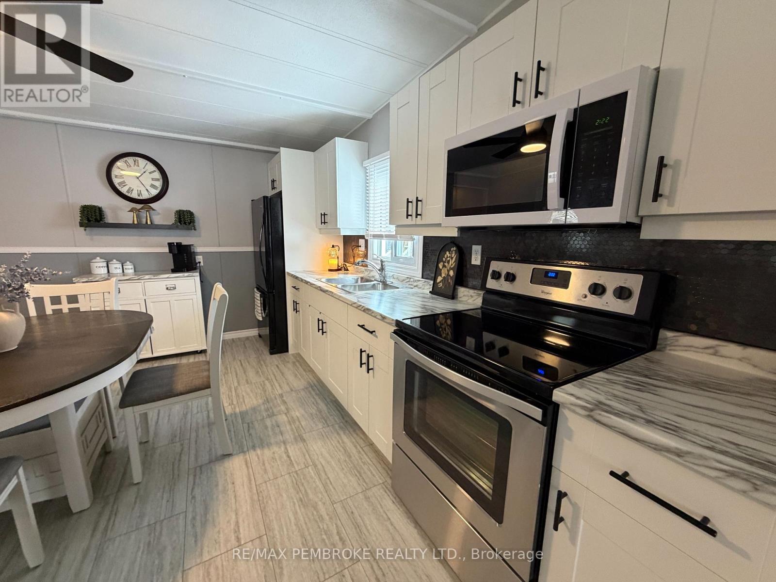 Welcome to 103 Pinehurst Estates in Petawawa, an updated and move-in ready home offering exceptional value and a great location just minutes from key employment hubs including Garrison Petawawa (approximately 5 minutes) and Canadian Nuclear Laboratories at Chalk River (approximately 20 minutes). This well-maintained 2-bedroom home with an additional den or workshop features a spacious primary bedroom with double closets, a full bathroom with convenient in-unit laundry, and a bright, open-concept living space highlighted by modern vinyl floor tile( done in december 2025 ), updated finishes, and a stylish feature wall. The kitchen ( 2 years old) offers ample cabinetry, included appliances, and flows seamlessly into the dining and living areas, creating a functional layout ideal for both everyday living and entertaining. A practical mudroom adds extra storage and convenience, while the inviting front deck provides a great space to relax outdoors under the steel gazebo. Situated on a lot with a double driveway, the property also includes a storage shed, Rubbermaid garbage storage, and two additional storage containers offering plenty of room for tools and seasonal items. Perfect for first-time buyers or downsizers this home delivers outstanding affordability, comfort, and location. Quick Closing available (id:28469)