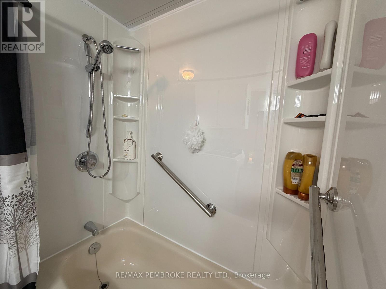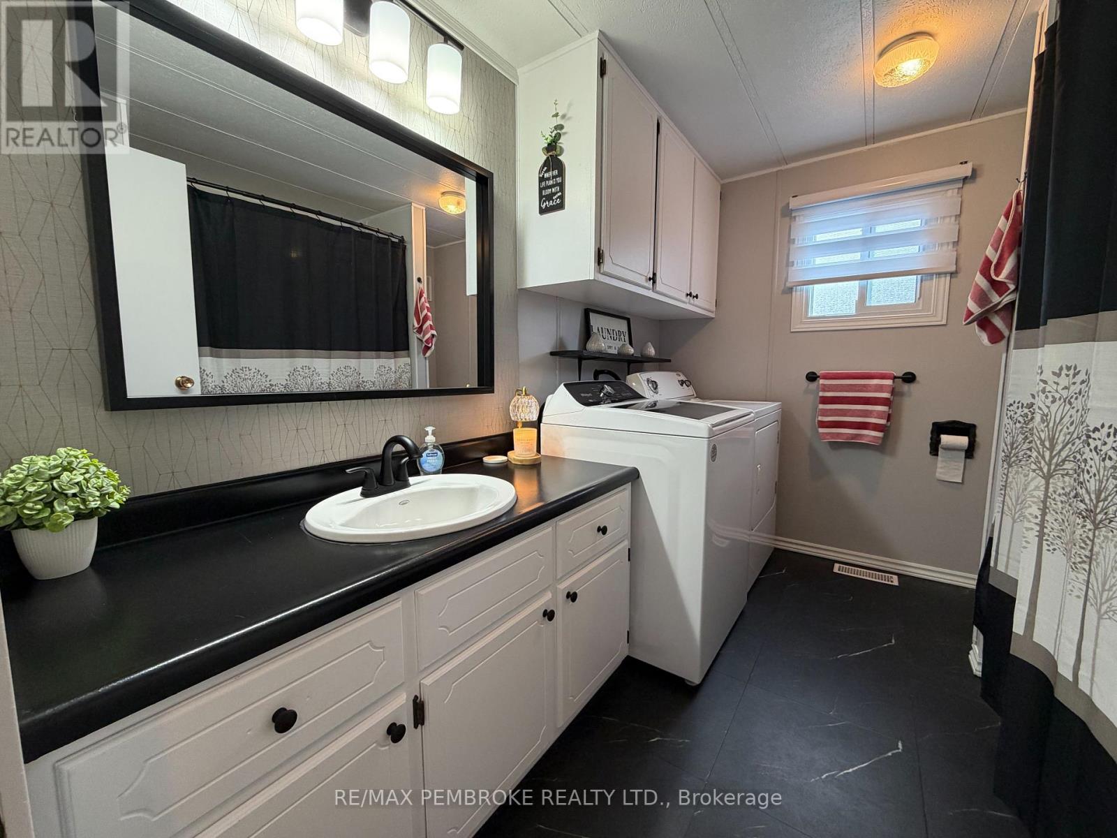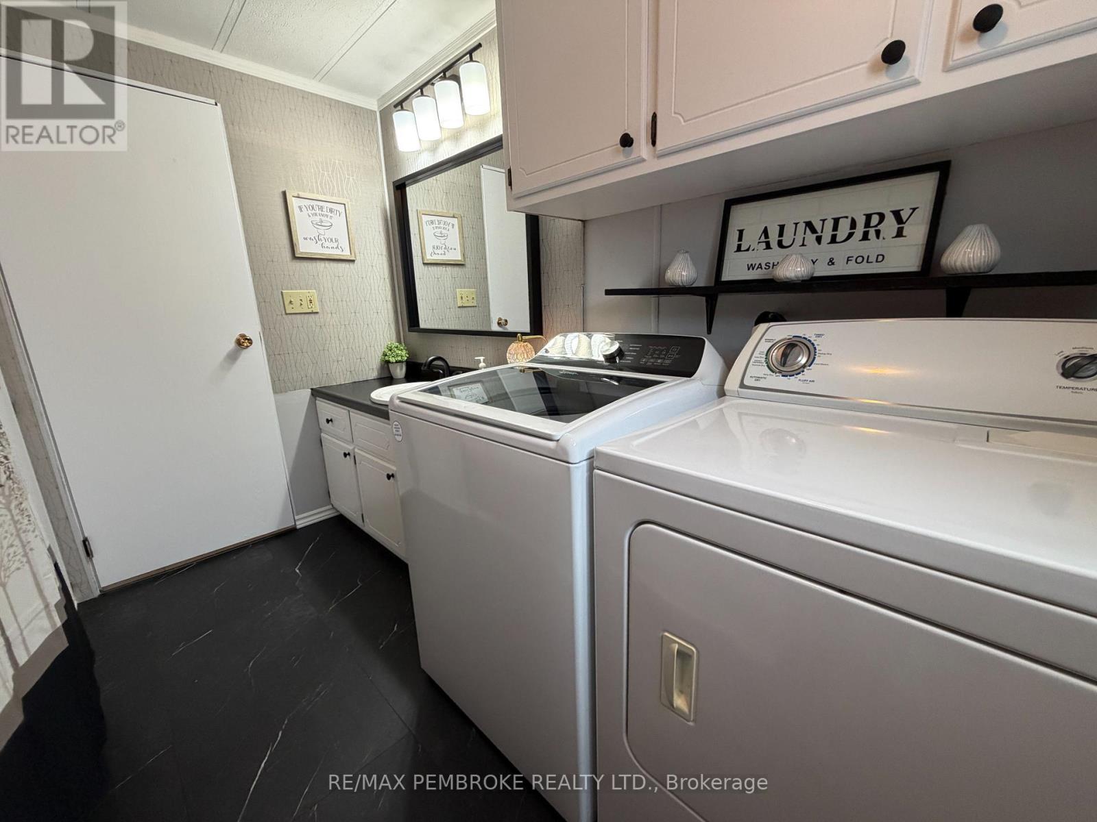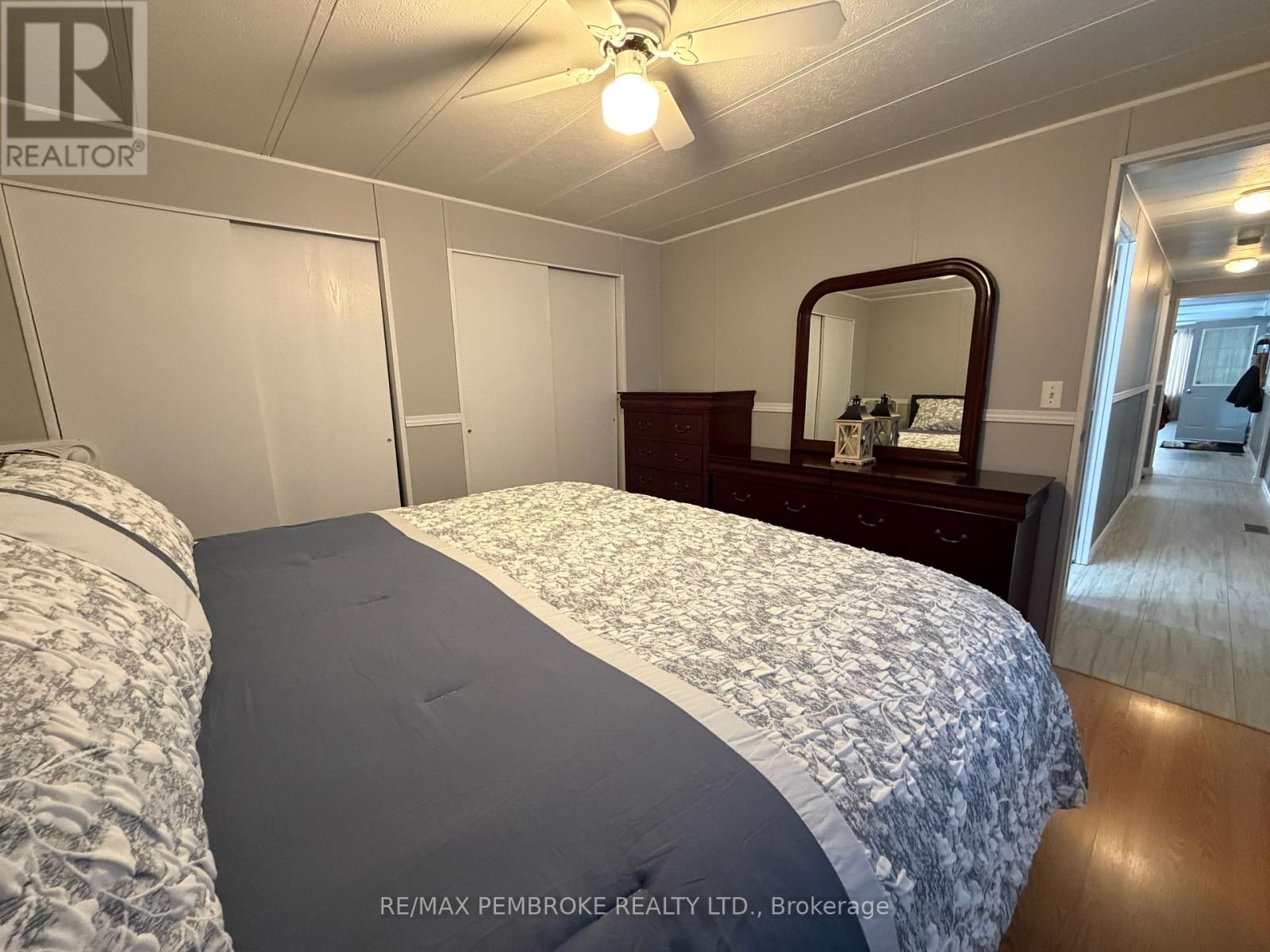 Welcome to 103 Pinehurst Estates in Petawawa, an updated and move-in ready home offering exceptional value and a great location just minutes from key employment hubs including Garrison Petawawa (approximately 5 minutes) and Canadian Nuclear Laboratories at Chalk River (approximately 20 minutes). This well-maintained 2-bedroom home with an additional den or workshop features a spacious primary bedroom with double closets, a full bathroom with convenient in-unit laundry, and a bright, open-concept living space highlighted by modern vinyl floor tile( done in december 2025 ), updated finishes, and a stylish feature wall. The kitchen ( 2 years old) offers ample cabinetry, included appliances, and flows seamlessly into the dining and living areas, creating a functional layout ideal for both everyday living and entertaining. A practical mudroom adds extra storage and convenience, while the inviting front deck provides a great space to relax outdoors under the steel gazebo. Situated on a lot with a double driveway, the property also includes a storage shed, Rubbermaid garbage storage, and two additional storage containers offering plenty of room for tools and seasonal items. Perfect for first-time buyers or downsizers this home delivers outstanding affordability, comfort, and location. Quick Closing available (id:28469)