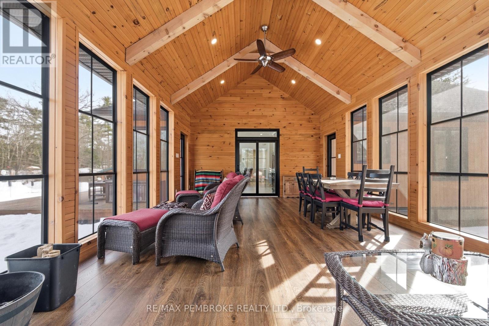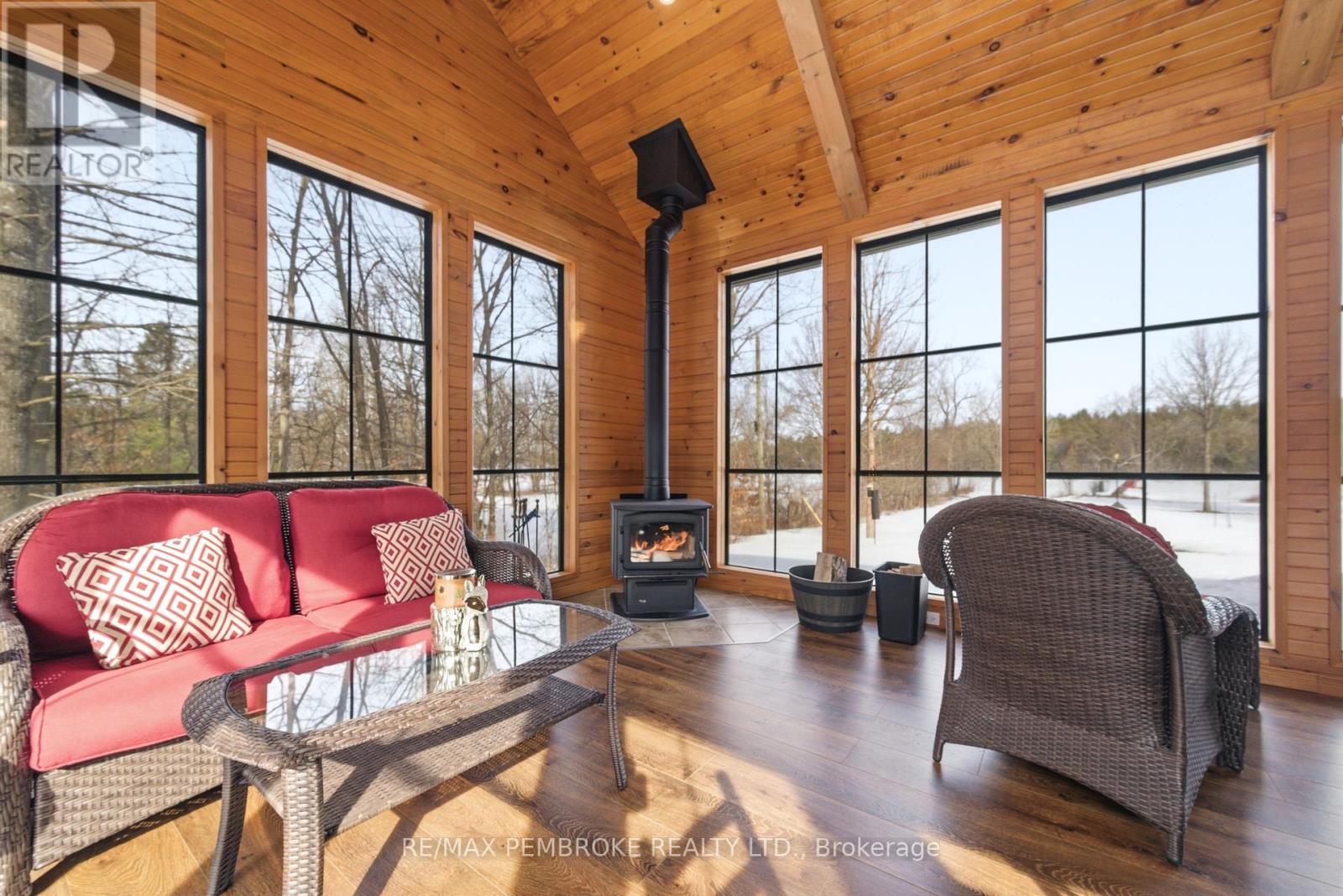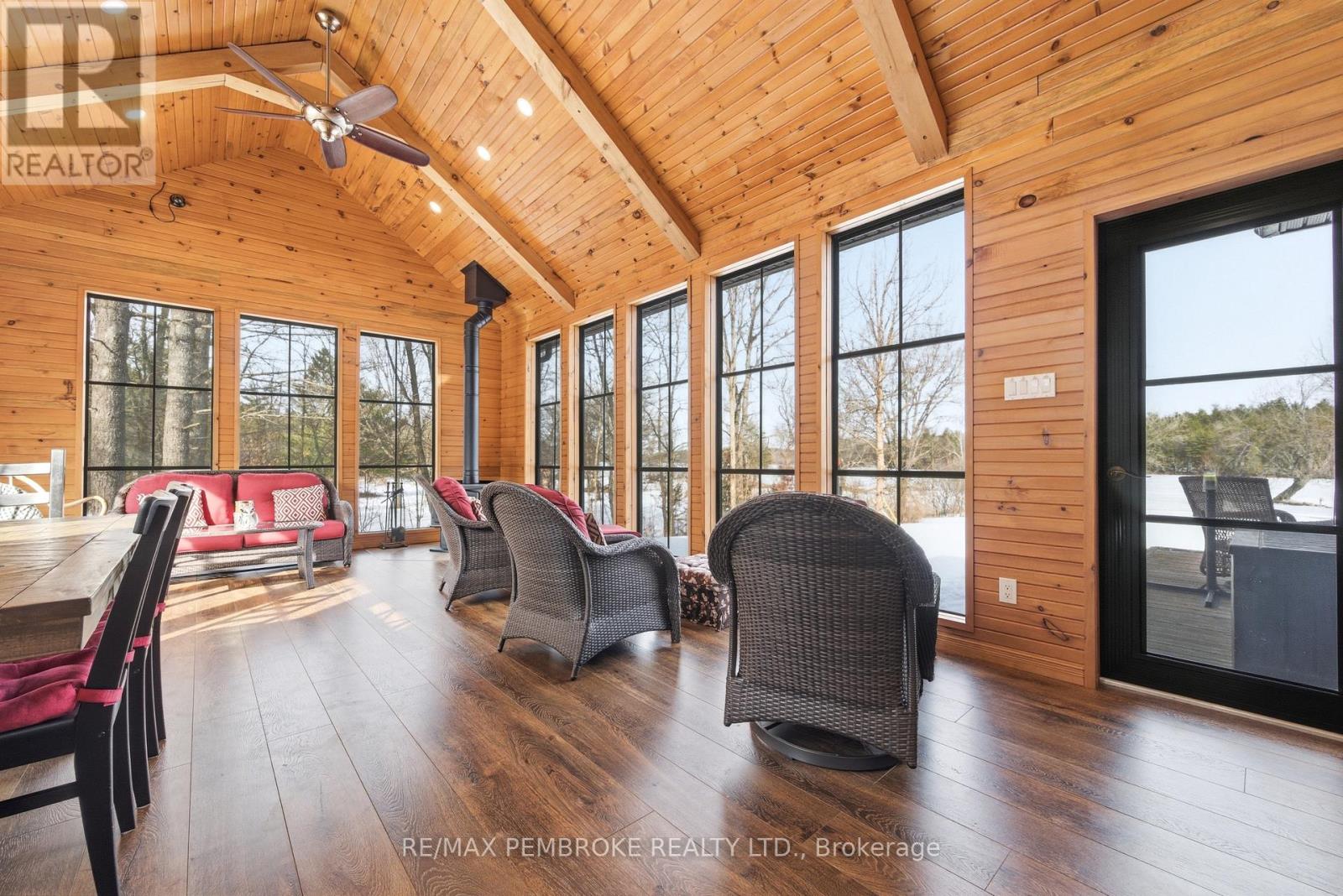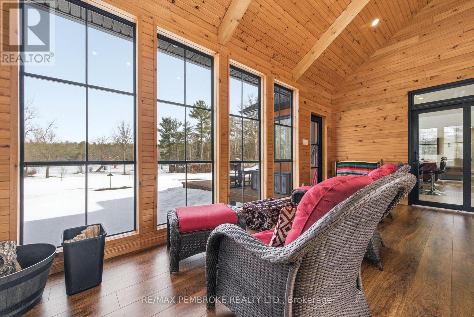 Experience waterfront living at its finest on this exceptional 3.96-acre property along the Petawawa River. Offering rare privacy, open-water views, and true four-season enjoyment-boat, kayak, skate, or ice fish right from your own shoreline.Just 7 minutes from CFB Petawawa, this bright and inviting home features 2 + 2 bedrooms and 3.5 bathrooms, including a beautiful ensuite and convenient powder room. The showstopping sunroom features cathedral ceilings and expansive windows that flood the space with natural light and seamless views. The versatile lower level adds two bedrooms plus three additional flexible rooms, with an egress window in the family room/gym.Quality triple-pane windows, central air, and efficient wood stoves in both the sunroom and living room ensure year-round comfort. Step outside to two sandy beaches, a charming beach house, and ample space for gatherings. The property also includes a wood shed that doubles as a carport, plus a massive 40' x 50' garage with an additional 40' x 20' carport.Additional features include dual-zone in floor heating (lower level and garage), an 800-bottle wine room, a newly upgraded 2026 water treatment system, and an underground garden-watering system sourced from the river.This is a rare waterfront oasis-peaceful, private, and truly one of a kind. A must-see for anyone seeking a retreat without compromise. (id:28469)