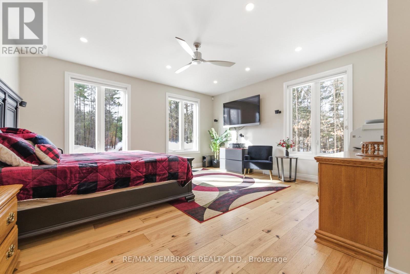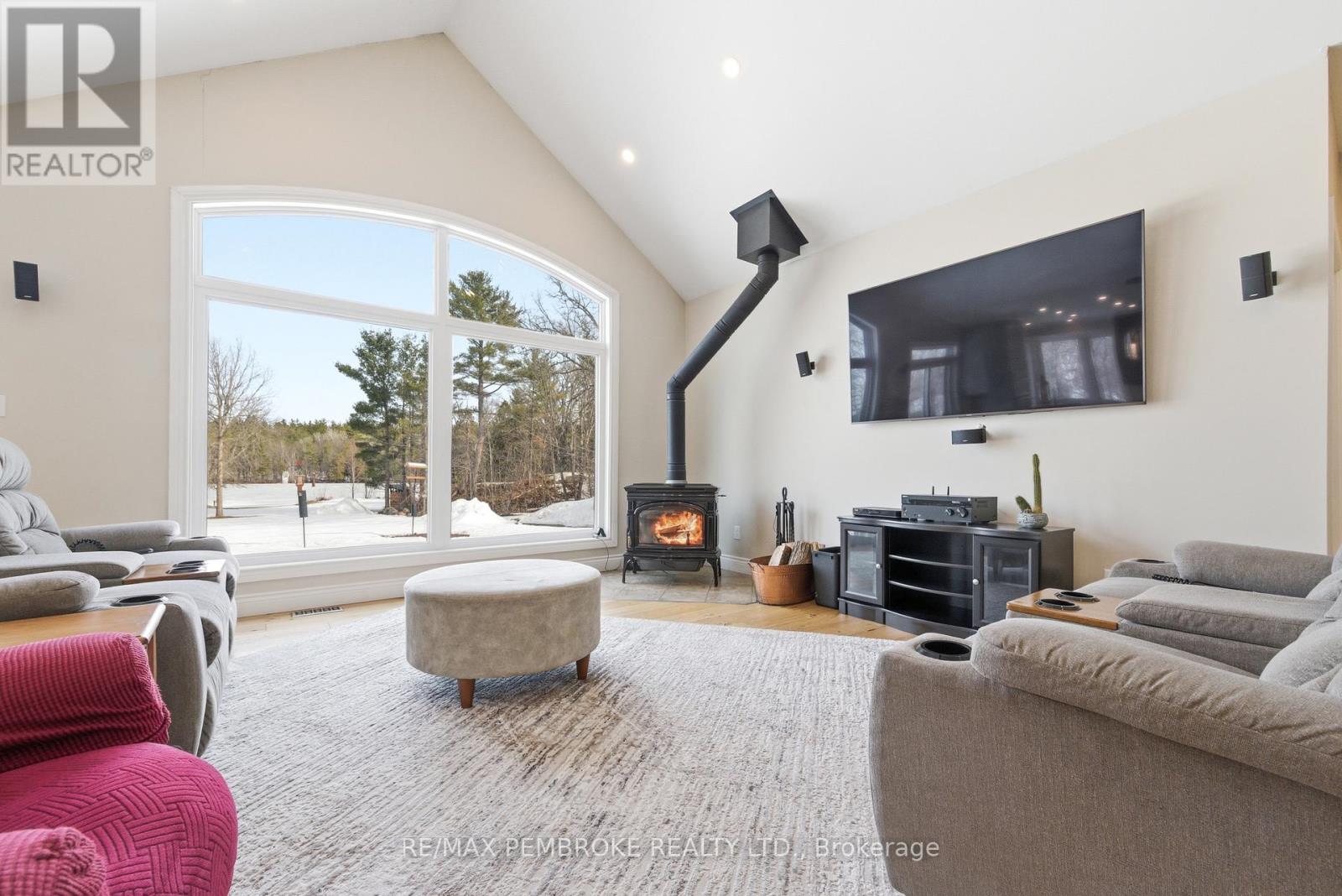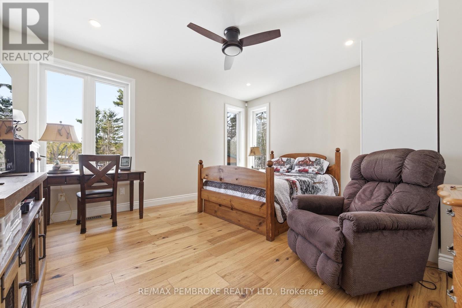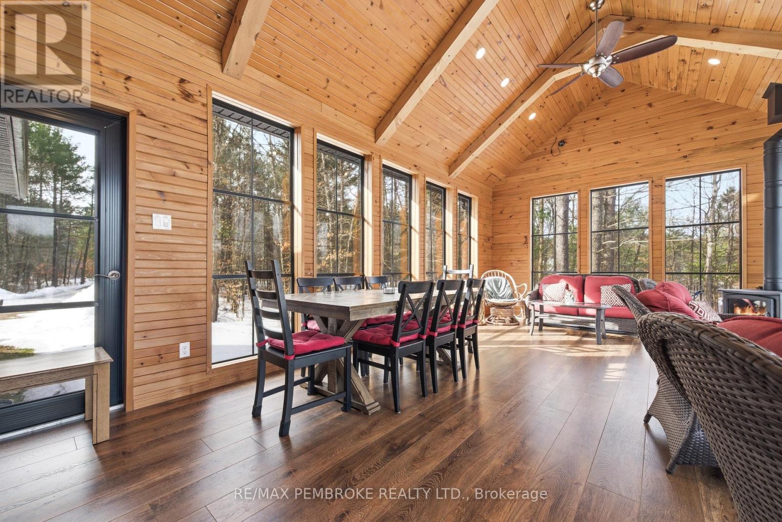 Experience waterfront living at its finest on this exceptional 3.96-acre property along the Petawawa River. Offering rare privacy, open-water views, and true four-season enjoyment-boat, kayak, skate, or ice fish right from your own shoreline.Just 7 minutes from CFB Petawawa, this bright and inviting home features 2 + 2 bedrooms and 3.5 bathrooms, including a beautiful ensuite and convenient powder room. The showstopping sunroom features cathedral ceilings and expansive windows that flood the space with natural light and seamless views. The versatile lower level adds two bedrooms plus three additional flexible rooms, with an egress window in the family room/gym.Quality triple-pane windows, central air, and efficient wood stoves in both the sunroom and living room ensure year-round comfort. Step outside to two sandy beaches, a charming beach house, and ample space for gatherings. The property also includes a wood shed that doubles as a carport, plus a massive 40' x 50' garage with an additional 40' x 20' carport.Additional features include dual-zone in floor heating (lower level and garage), an 800-bottle wine room, a newly upgraded 2026 water treatment system, and an underground garden-watering system sourced from the river.This is a rare waterfront oasis-peaceful, private, and truly one of a kind. A must-see for anyone seeking a retreat without compromise. (id:28469)