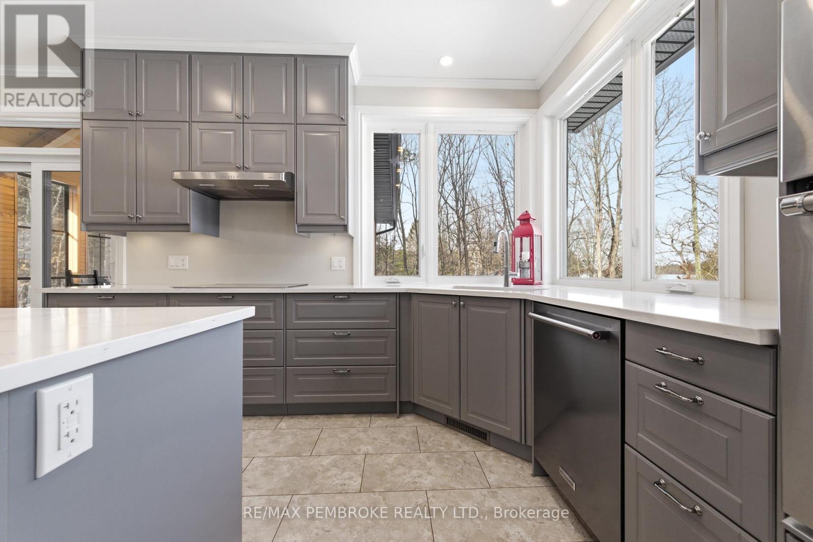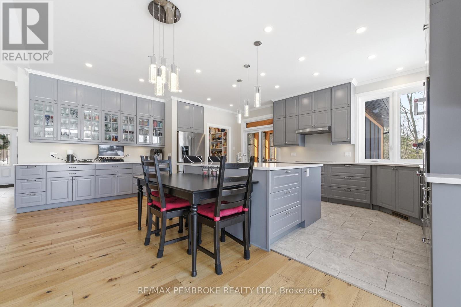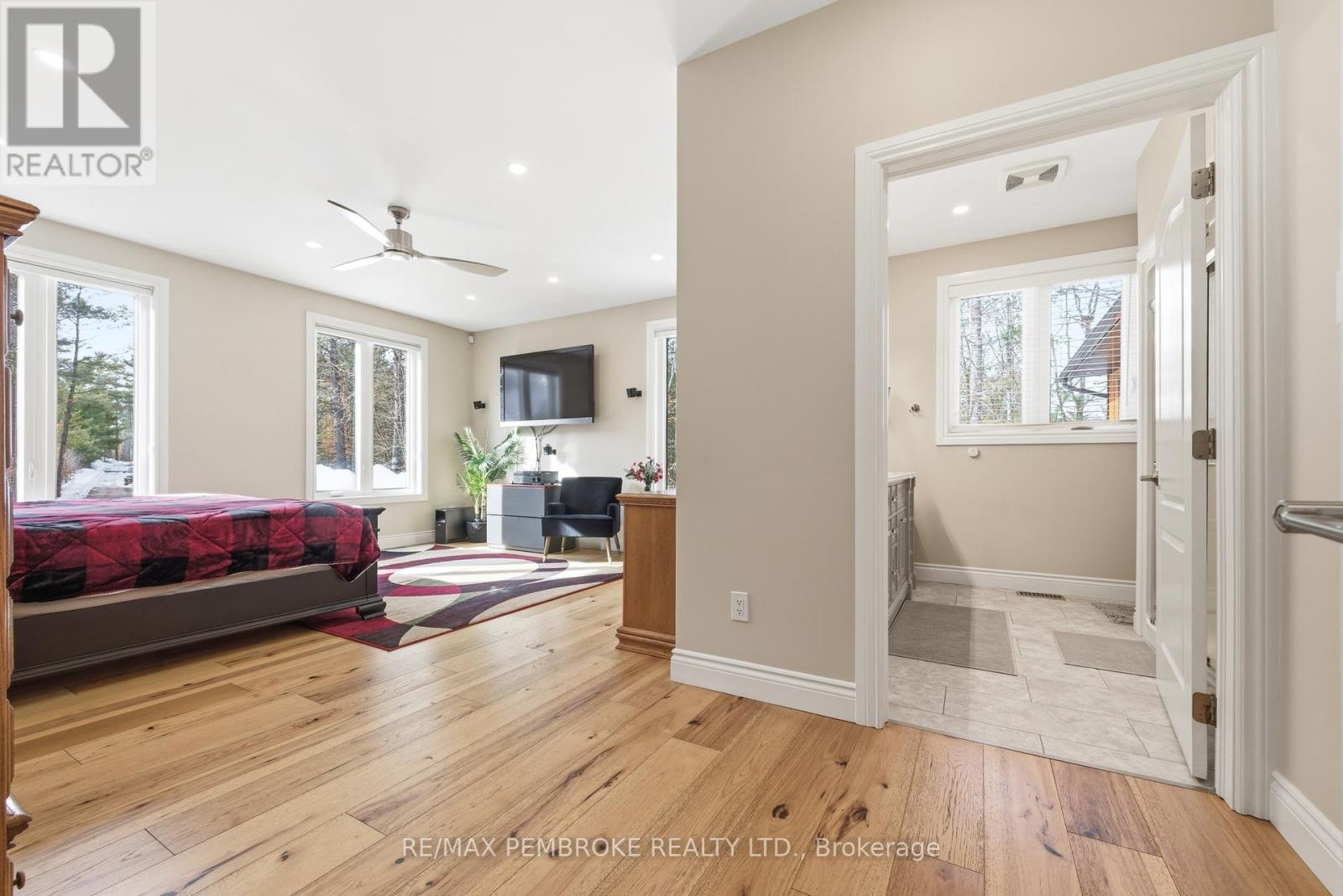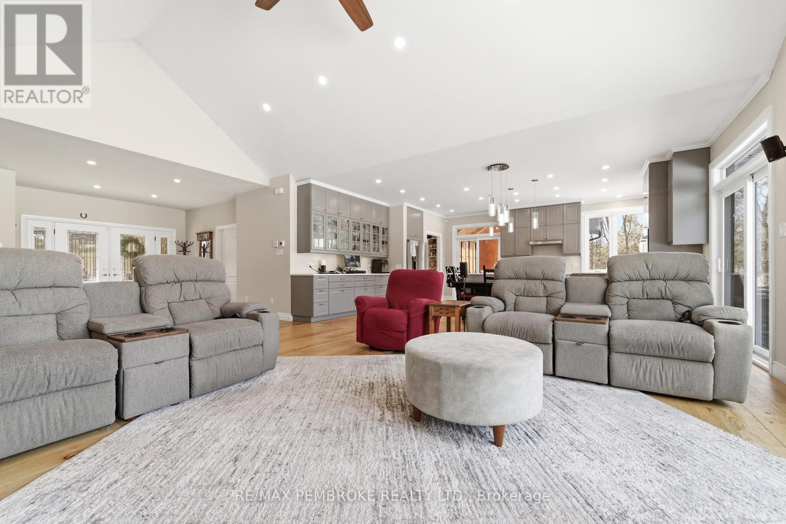 Experience waterfront living at its finest on this exceptional 3.96-acre property along the Petawawa River. Offering rare privacy, open-water views, and true four-season enjoyment-boat, kayak, skate, or ice fish right from your own shoreline.Just 7 minutes from CFB Petawawa, this bright and inviting home features 2 + 2 bedrooms and 3.5 bathrooms, including a beautiful ensuite and convenient powder room. The showstopping sunroom features cathedral ceilings and expansive windows that flood the space with natural light and seamless views. The versatile lower level adds two bedrooms plus three additional flexible rooms, with an egress window in the family room/gym.Quality triple-pane windows, central air, and efficient wood stoves in both the sunroom and living room ensure year-round comfort. Step outside to two sandy beaches, a charming beach house, and ample space for gatherings. The property also includes a wood shed that doubles as a carport, plus a massive 40' x 50' garage with an additional 40' x 20' carport.Additional features include dual-zone in floor heating (lower level and garage), an 800-bottle wine room, a newly upgraded 2026 water treatment system, and an underground garden-watering system sourced from the river.This is a rare waterfront oasis-peaceful, private, and truly one of a kind. A must-see for anyone seeking a retreat without compromise. (id:28469)