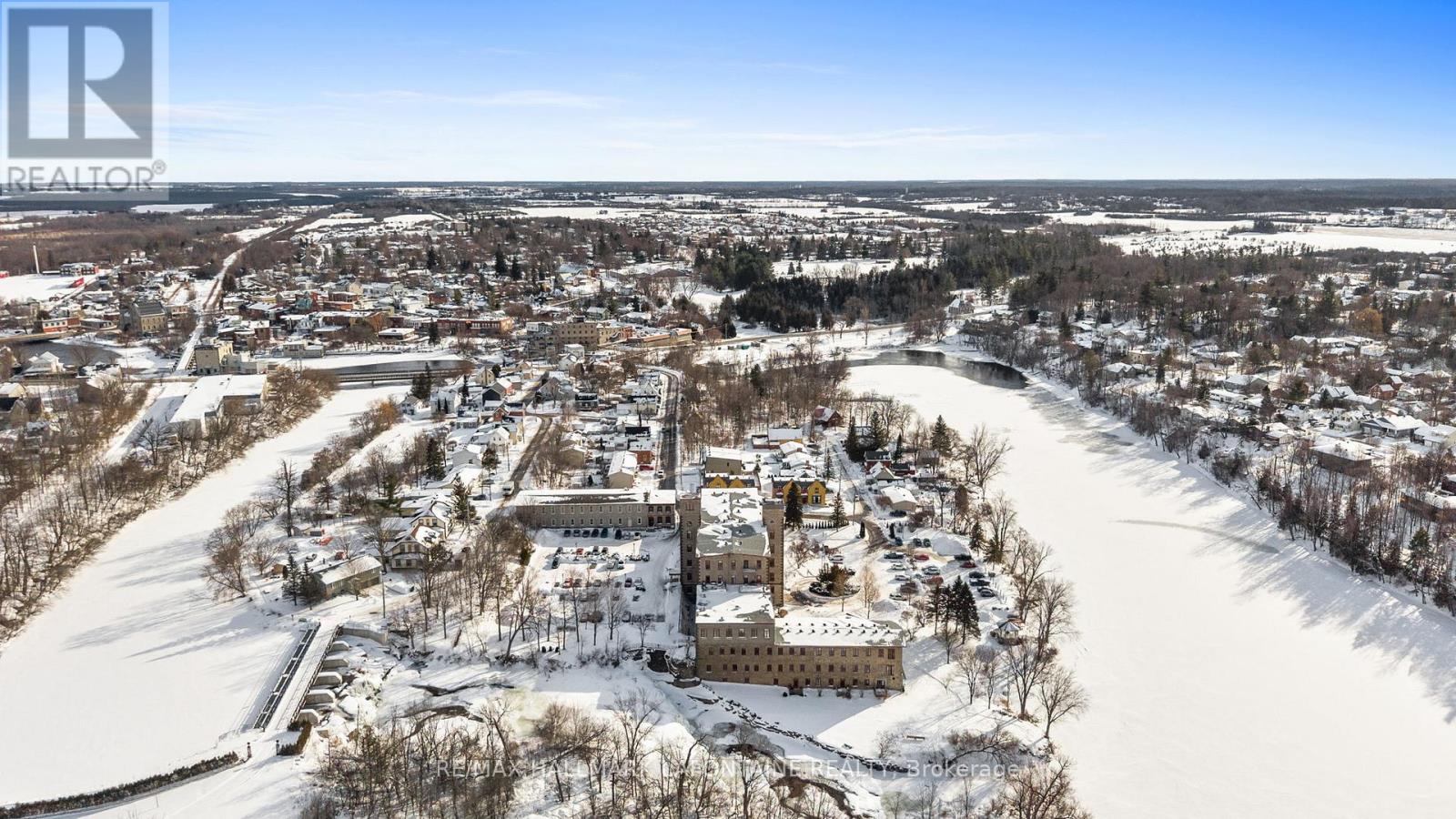 Welcome to The Millfall - where history meets the Mississippi River.This landmark 1800s textile mill has been masterfully transformed into 69 exceptional residences set across four acres of meticulously curated private grounds. Here, enduring craftsmanship and natural beauty exist in perfect harmony, creating a sanctuary that feels both elevated and profoundly tranquil.This home occupies one of the most coveted exterior-access points in the community. Step onto your private composite patio and take in uninterrupted views of cascading waterfalls and the river beyond. Mornings and evenings alike are accompanied by the gentle rhythm of flowing water, the dance of light across the sky, and the quiet serenity of a setting where history, artistry, and nature converge. It's more than a home-it's a rare vantage point where every moment feels thoughtfully curated for living well.Step inside and continue the dream: soaring 9.5-foot ceilings and 24-inch window sills enhance the integrated living and dining areas, which flow seamlessly into a spaciously renovated kitchen with abundant upgraded cabinetry and granite counters. The bedroom offers ample closet space and leads to your own upgraded ensuite with quartz counters and additional storage. A second powder room is perfectly positioned for guests. Need a den for working from home, a cozy reading area, or a hobby room? This home has it all-thoughtfully designed to suit every lifestyle.Residents enjoy a host of amenities, including an exercise room, workshop, library, recreation room, and rentable guest suite. Just steps from the Ottawa Valley Recreational Trail and River Walk, and only a five-minute stroll to Almonte's historic downtown with its renowned restaurants and boutiques, The Millfall offers a perfect balance of riverside tranquility with vibrant community living. Live elevated. Live serene. Live The Millfall. (id:28469)