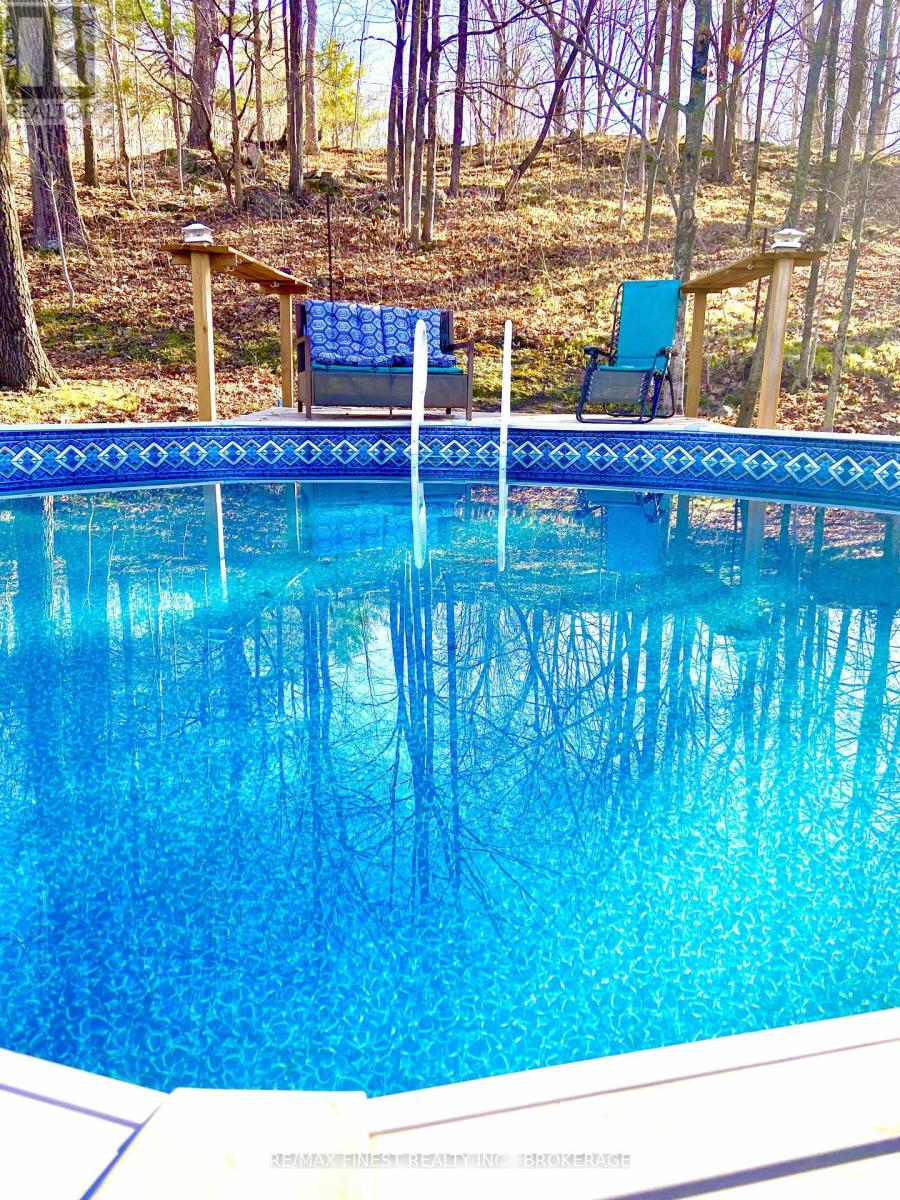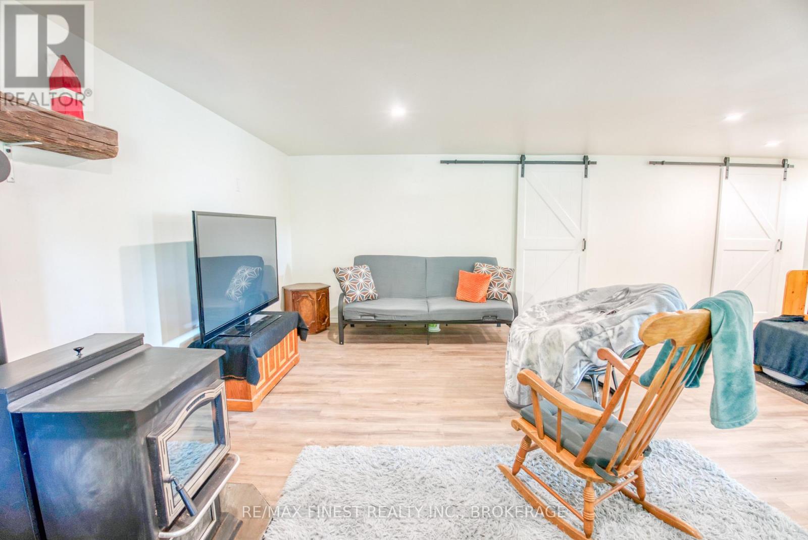 Your next adventure awaits -trees included. Tucked away in the forest like your own private woodland hideout, this little gem is just far enough from Westport to feel like an escape, yet close enough for a beer run when the weekend is in view. The current owners have poured both love, time, and energy into thoughtful upgrades: a new water pressure system (so showers finally feel like showers), an upgraded kitchen ready for culinary ambition or late-night pizza reheats, new flooring and a renovated bathroom, plus a cozy pellet stove that delivers warmth without the "chopping wood in the cold" commitment. Outside, improved decks and sitting areas set the stage for coffee-with-a-view mornings. But wait, there's more - farther up the driveway you'll find a matching insulated workshop/shed-perfect for projects, storage, or confidently telling people you're about to build something. Just beyond that sits an above-ground pool with a custom-built shed standing guard, and for the truly adventurous, a wooded trail that winds past Hole #1 of what may be the world's most exclusive one-hole golf course (par is whatever you say it is). The loop conveniently ends back at the pool, because every good walk should have a refreshing finish. On the practical side, the septic was replaced in 2018, the new second bathroom means one per floor (no waiting required), and the lower-level has a ground level walk out. With boat launches in every direction (Wolfe Lake is just two minutes away) and scenic Westport only ten minutes down the road for supplies, dining, or a reminder that other humans exist, this property delivers efficient living, peaceful surroundings, and enough personality to make it memorable. Hydro bill from Dec 15, 24 to Sept 18, 25 was $2085.00. Pellet stove is their main heating source. Since photos were taken, a 2 piece bathroom has been added to the lower level. (id:28469)