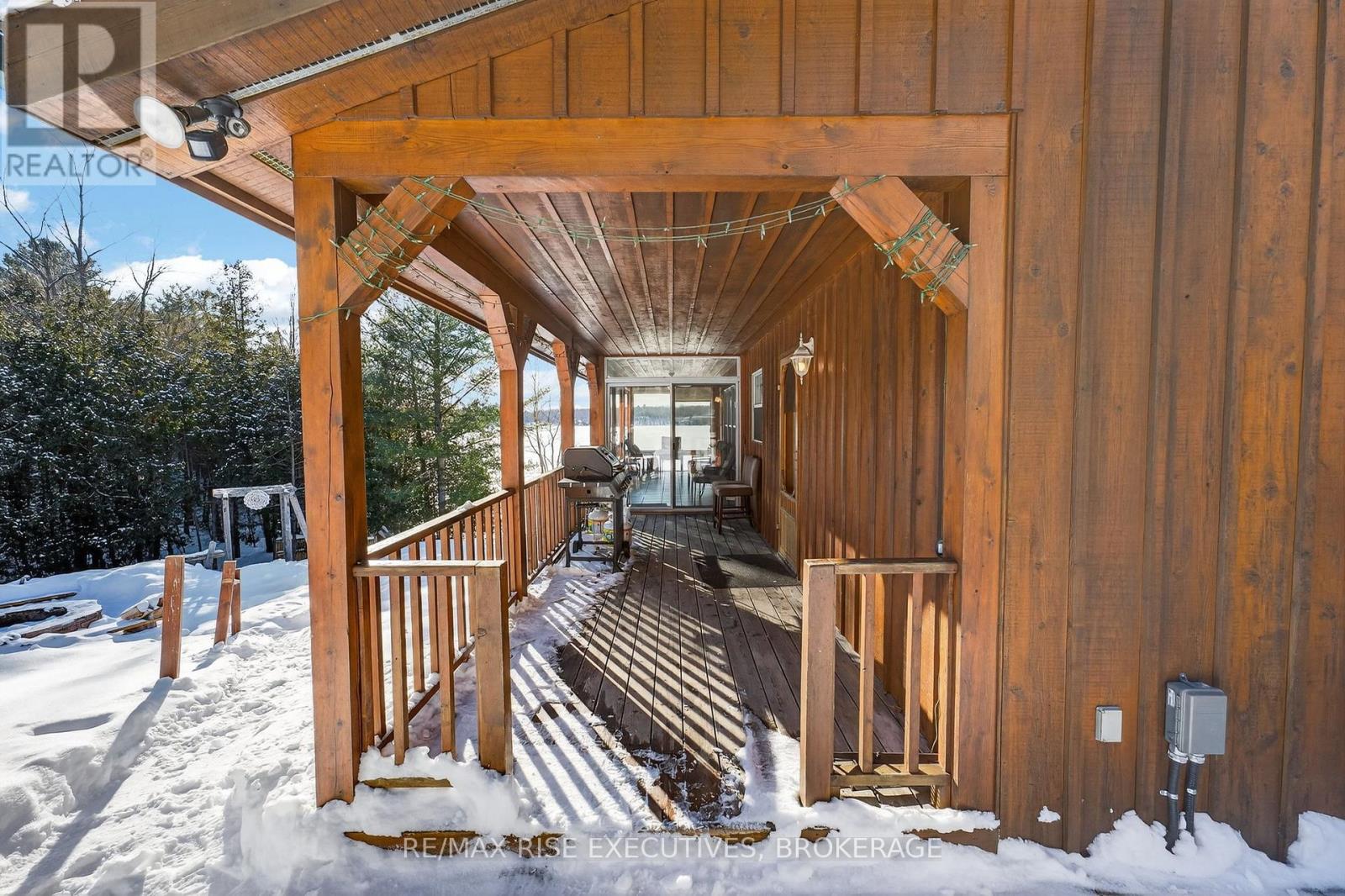 1093B Two Loon Lane - O'Reilly Lake. Welcome to pure paradise. Tucked away on a quiet, well-maintained year-round road, this custom-built 4-bedroom lakefront home offers unmatched privacy with 9 acres of seclusion and an incredible 528 feet of pristine shoreline on peaceful O'Reilly Lake-where gas motors are prohibited, ensuring calm waters and a true escape. Warmth and character fill the home, highlighted by pine beams, ash hardwood floors, and a thoughtfully designed layout. The main floor features a convenient bedroom with direct access to the attached garage and hot tub, along with a 3-piece bathroom-ideal for main-level living or guests. Upstairs, you'll find three additional bedrooms, including a spacious primary bedroom, and a beautiful main bath complete with soaker tub and separate shower. The heart of the home is a welcoming kitchen with granite island, flowing seamlessly into an enclosed, year-round wraparound porch that's both heated and cooled-perfect for enjoying the lake views in every season. A massive 25' x 23' attached garage provides plenty of room for vehicles, toys, and storage. Outside, the property truly shines with a finished, heated bunkie ideal for guests or a games room, multiple outbuildings, and your own private boat launch. Whether you're swimming, paddling, or simply soaking in the quiet, this is lakefront living at its finest. Currently operated as a successful and lucrative Airbnb, this property offers the next owner the option to continue generating strong rental income, or simply enjoy it as a private family retreat. Offered fully furnished, including all furniture, dishware, canoe, kayak, hot tub, and more, this is a true turn-key waterfront opportunity. A rare combination of privacy, lifestyle, and income potential-once you arrive, you may never want to leave. (id:28469)