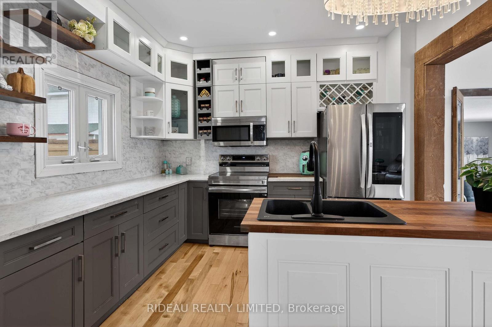 Welcome Home to 110 Main St E, a completely renovated 3 bed 1.5 bath home! From the moment you arrive, you'll notice the care and attention to detail, with a re-gravelled driveway, stunning new front entrance, stonework, and raised stone flower beds that elevate the home's curb appeal. Step inside to discover new hardwood floors and updated lighting flowing seamlessly throughout the main living spaces. The inviting living room opens effortlessly into the dining area, creating a warm and functional layout perfect for everyday living and entertaining. The fully renovated kitchen features stainless steel appliances, modern finishes, and an open-concept design overlooking the dining room, ideal for hosting family and friends. At the back of the home, a spacious family room with a new sliding patio door leads you to your private backyard oasis. Thoughtfully designed, this space features interlocking patio stones (2024), an architectural gazebo (2025), a 10x10 garden shed (2024), and a fully fenced yard perfect for relaxing or entertaining. Electrical is already in place for a future hot tub. Just off the family room, you'll find convenient main floor laundry and a 2-piece bathroom. Upstairs offers three generously sized bedrooms and a beautifully updated bathroom with all new plumbing and modern fixtures. Beyond the cosmetic updates, the home has seen major improvements including a new roof (2022, still under warranty), siding and flashing (2025), furnace (2017), central air (2019), on-demand hot water (2022), upgraded insulation (R19), new water meter (2025), improved drainage around the foundation (2024), and new basement stairs (2024), providing peace of mind for years to come. Ideally located close to schools, parks, and all amenities, this move-in ready home offers the perfect blend of style, comfort, and convenience... This is the one you've been waiting for. (id:28469)