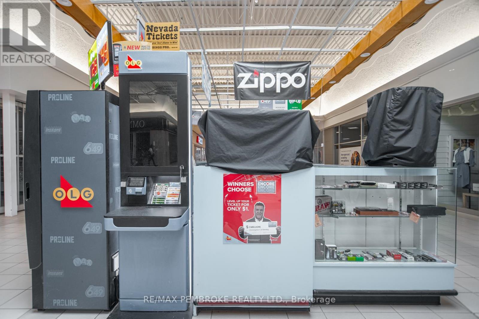 Are you ready to take the reins of your own successful business? Look no further! This well-established kiosk in the east end Pembroke Mall offers an exceptional opportunity for aspiring entrepreneurs. Situated in a prime high-traffic location right next to the food court and a popular drugstore, this kiosk has built a loyal customer base and boasts a thriving revenue stream. The business has become a local favourite for lottery enthusiasts revolving around high volume lottery and Nevada ticket sales. With two cigar humidors, stocked with a wide variety of premium cigars, it is the go to place in the area for cigar aficionados. Smoking accessories, key cutting, and a variety of gadgets add to the income stream. The current owner is committed to ensuring a smooth transition and is willing to provide training for the new owner. This means you can hit the ground running without the steep learning curve. A quick closing is possible, but is subject to the buyer being approved by the Alcohol and Gaming Commission. Don't miss your chance to own this lucrative retail kiosk in a prime location. (id:28469)