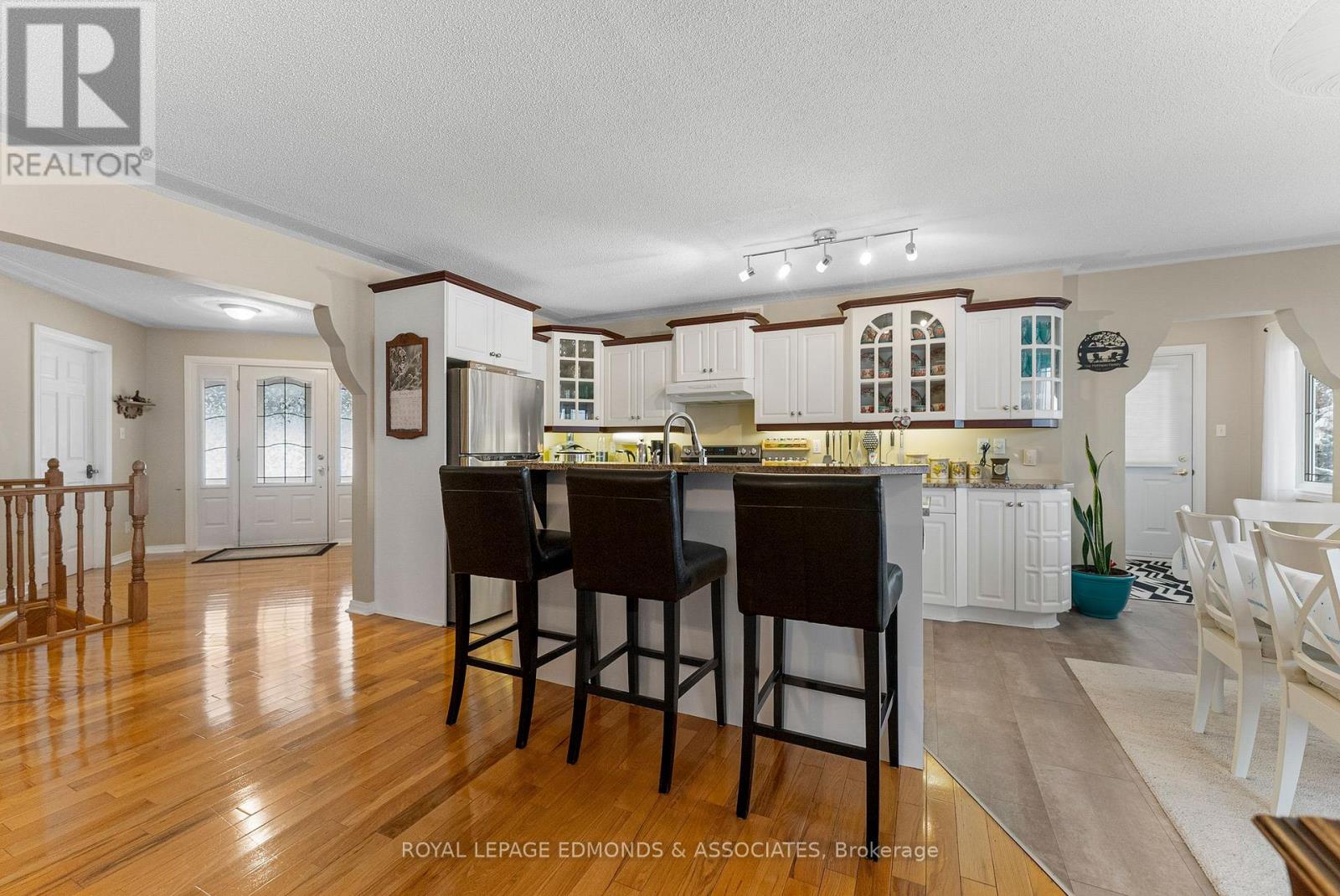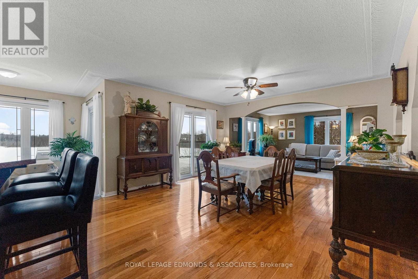 A truly spectacular, one-of-a-kind waterfront escape! Perched high on 2.28 acres overlooking the pristine Little Lakes, just minutes from Beachburg, this show-stopping property offers breathtaking views, exceptional privacy, and an unbeatable lifestyle. This impeccably maintained 2+2 bedroom, 2.5 bathroom custom home features an attached double garage and a rare bonus of a dry boathouse at the shoreline. Thoughtfully designed for efficiency, this home is equipped with a geothermal heating system, keeping operating costs impressively low. Step into the grand foyer and immediately feel welcomed by the bright, open-concept layout highlighted by gleaming hardwood floors, abundant natural light, and fantastic water views that truly steal the show. The stunning kitchen showcases crisp white cabinetry, granite countertops, a breakfast bar, and both casual and formal dining spaces; perfect for everyday living or entertaining. The cozy living room is an ideal place to unwind while enjoying the ever-changing lake scenery. The spacious primary suite is a private retreat, complete with a walk-in closet and a spa-like 5-piece ensuite. The main level is rounded out with a second bedroom, convenient 2-piece bath, laundry room, and a practical side mudroom. The fully finished walkout lower level continues to impress with a massive rec-room, two additional bedrooms, a full bathroom, home gym/storage area, and a separate utility room. Outside, take in the views from the expansive deck with glass railing, the striking armour stone wall and stairs, and beautifully landscaped grounds. Down by the water, the dry boathouse provides storage for all your water toys, while the impressive composite/aluminum dock offers 90 feet of deep water-perfect for swimming, fishing, and endless summer fun! With exceptional birdwatching, peaceful surroundings, and postcard-worthy sunsets, this is a rare and remarkable waterfront offering. (id:28469)
