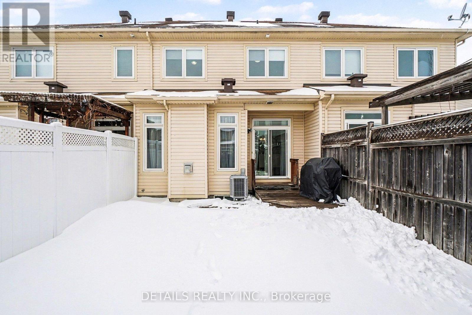 Welcome to this exceptional two-storey townhome offering over $60,000 in upgrades completed within the last two years. Ideally located in the sought-after Mer Bleue / Bradley Estates community, this home is approximately 1 km from Notre-Dame-des-Champs and about 2 km from Mer Bleue Catholic High School, with Bradley Ridge Park conveniently located at the end of the street. Upon entering, you are welcomed by high ceilings and a spacious open-concept layout designed for modern living. Hardwood flooring runs throughout the main and second level, creating a seamless and refined atmosphere. The kitchen features granite countertops, elegant maple cabinetry, and new stainless steel chef-inspired appliances, offering both style and functionality for everyday living and entertaining. The living room is anchored by a gas fireplace and enhanced with pot lighting throughout, creating a bright and inviting environment. Upstairs, the primary bedroom retreat offers a generous walk-in closet and a well-appointed ensuite featuring a large soaking tub, granite countertops, and a separate shower. This level also includes two additional well-sized bedrooms and a full four-piece bathroom. The finished basement provides additional living space ideal for family gatherings, featuring a bright recreation room along with a versatile office or den area perfect for working from home or flexible living. A large storage room completes the lower level. Outside, the fully fenced east-facing backyard captures morning sun and provides a private outdoor setting with plenty of room for children to play or to enjoy relaxing summer evenings. The lawn was fully re-sodded last year. A well-positioned home in a prime family neighbourhood offering quality upgrades, functional living space, and exceptional value. (id:28469)