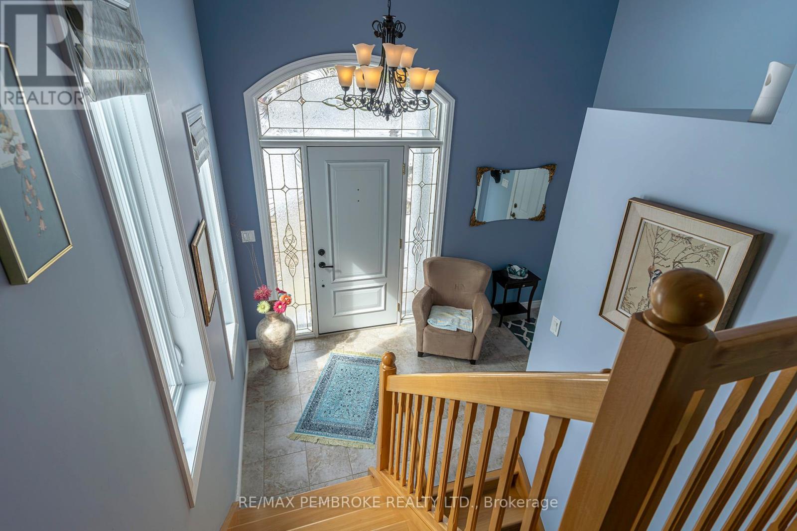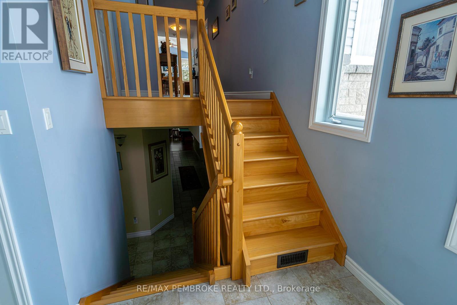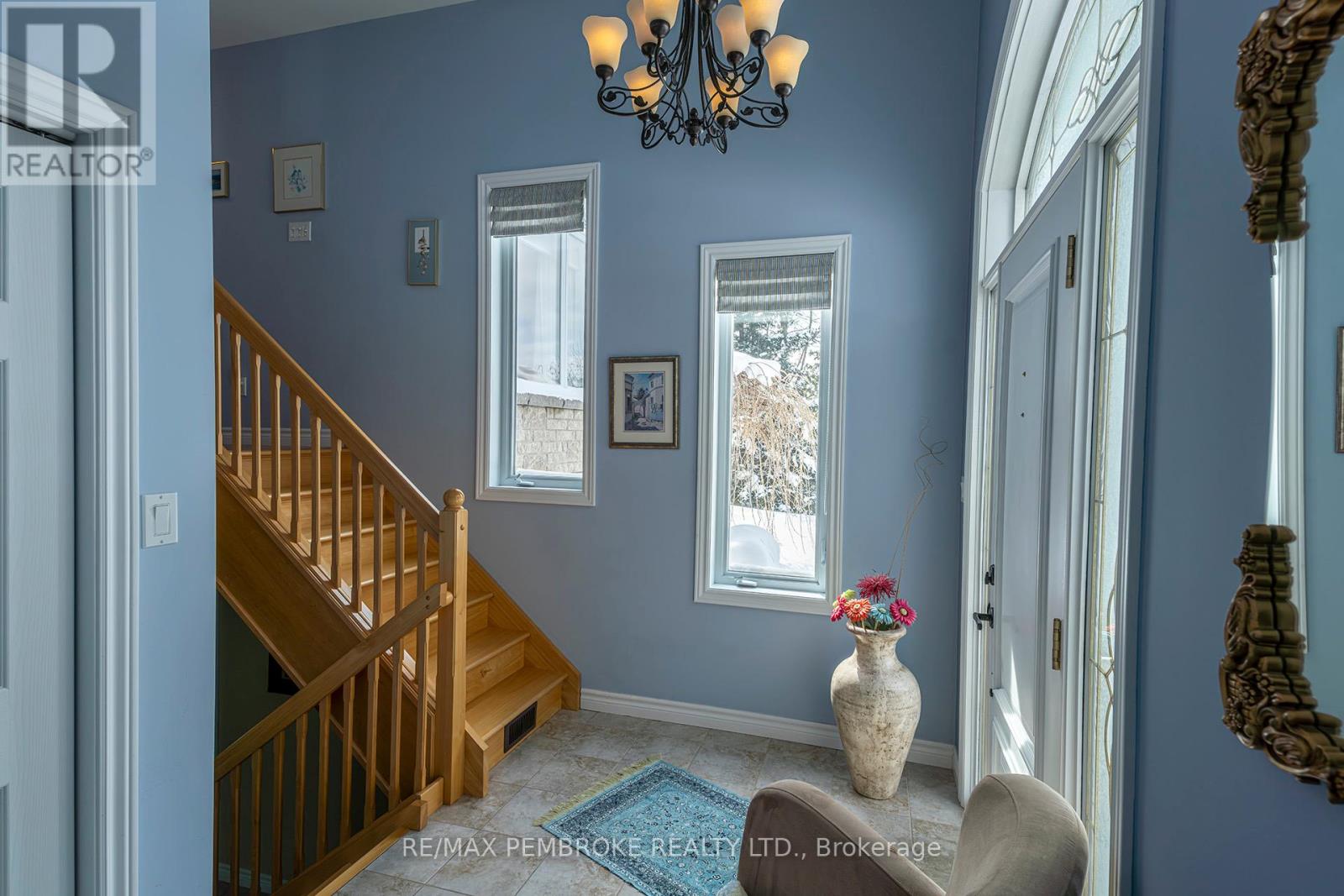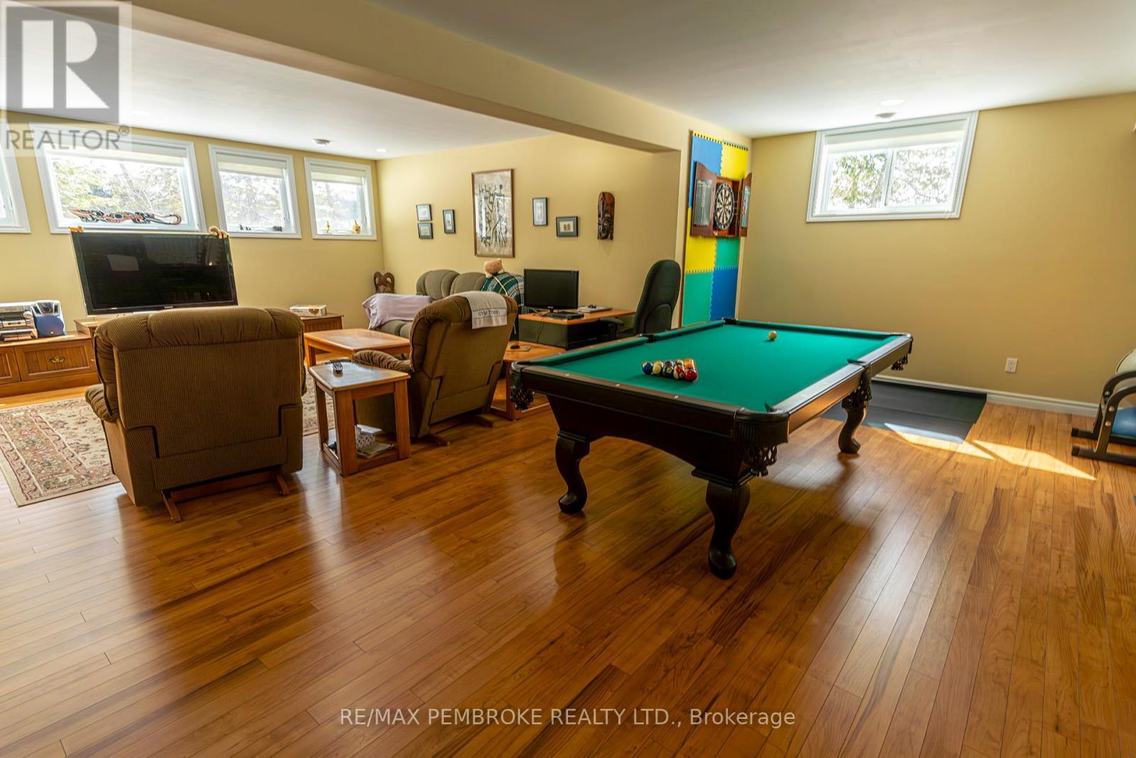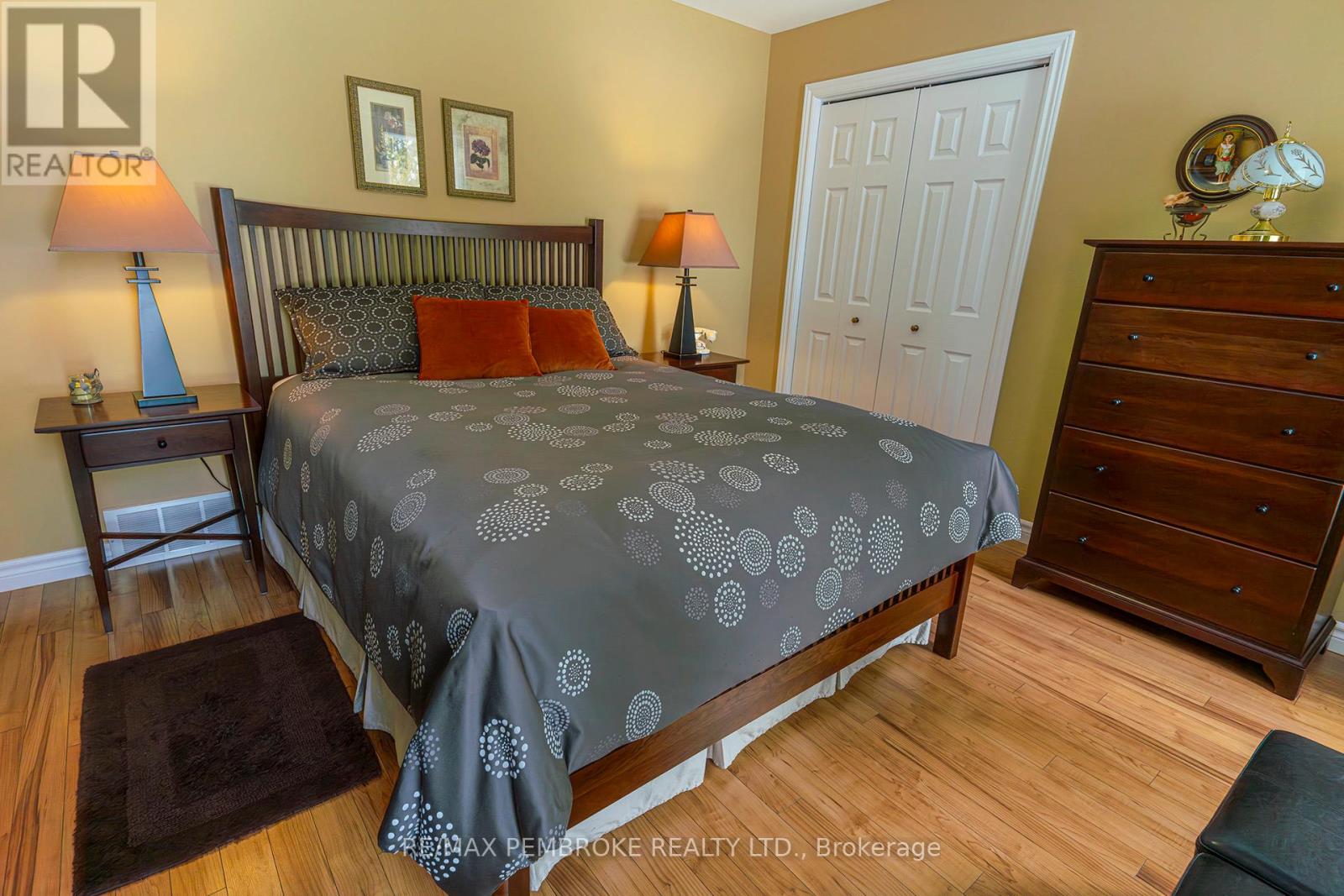 STUNNING LAKEFRONT home situated on private, estate like 5 acre lot with over 1100 feet of shoreline on desirable GOLDEN LAKE. Built on a breathtaking peninsula surrounded by WATERFRONT (east/west/south) with MATURE PINES & glorious all day sunshine. This high quality ZOMERS custom built 3 bed, 3 bath OPEN CONCEPT bungalow is bursting with high end features throughout. CAPITVATING PANORAMIC Lakes views surround you from all rooms on the main level thanks to the oversized windows, TALL 9ft ceilings, custom hardwood kitchen with granite counter tops & large Island, formal dining area with access to outdoor deck for outdoor summer dinners. LARGE living room area with vaulted ceiling and gas fireplace. Oversized primary bedroom with spa like ensuite bathroom & walk in closet, OVERSIZED mudroom with main floor laundry. TALL & bright finished lower level features; bar, LARGE rec room with gas fireplace, 3rd bedroom, gym area (could easily be space for 4th/5th bedroom), 3rd full bathroom and walk out direct access to the attached garage. this home has a ICF (insulated concrete form) foundation & radiant heated floors (lower level , kitchen, bathrooms). PRIVACY & TRANQUILITY awaits you outside with: extensive landscaping, two separate decks on opposite sides of the house, lush flat yard, 90ft of floating dock to moor your boats, plus your own private sandy beach and fire pit. Attached OVERSIZED 1 car garage and a second detached garage (28ft x36ft). The home is hardwired with a full sized Generator in case of power outages, Irrigation, Gated entry, FULL Paved Driveway, NEW shingles 2023 on house and detached garage. START making YOUR Lakefront memories a reality by, boating, fishing, swimming paddle boarding, kayaking, water skiing, tubing, ice fishing or snowmobiling! Just 600m off ON-60. 10mins to Eganville, 25mins to Pembroke, 85 mins to Ottawa. (id:28469)