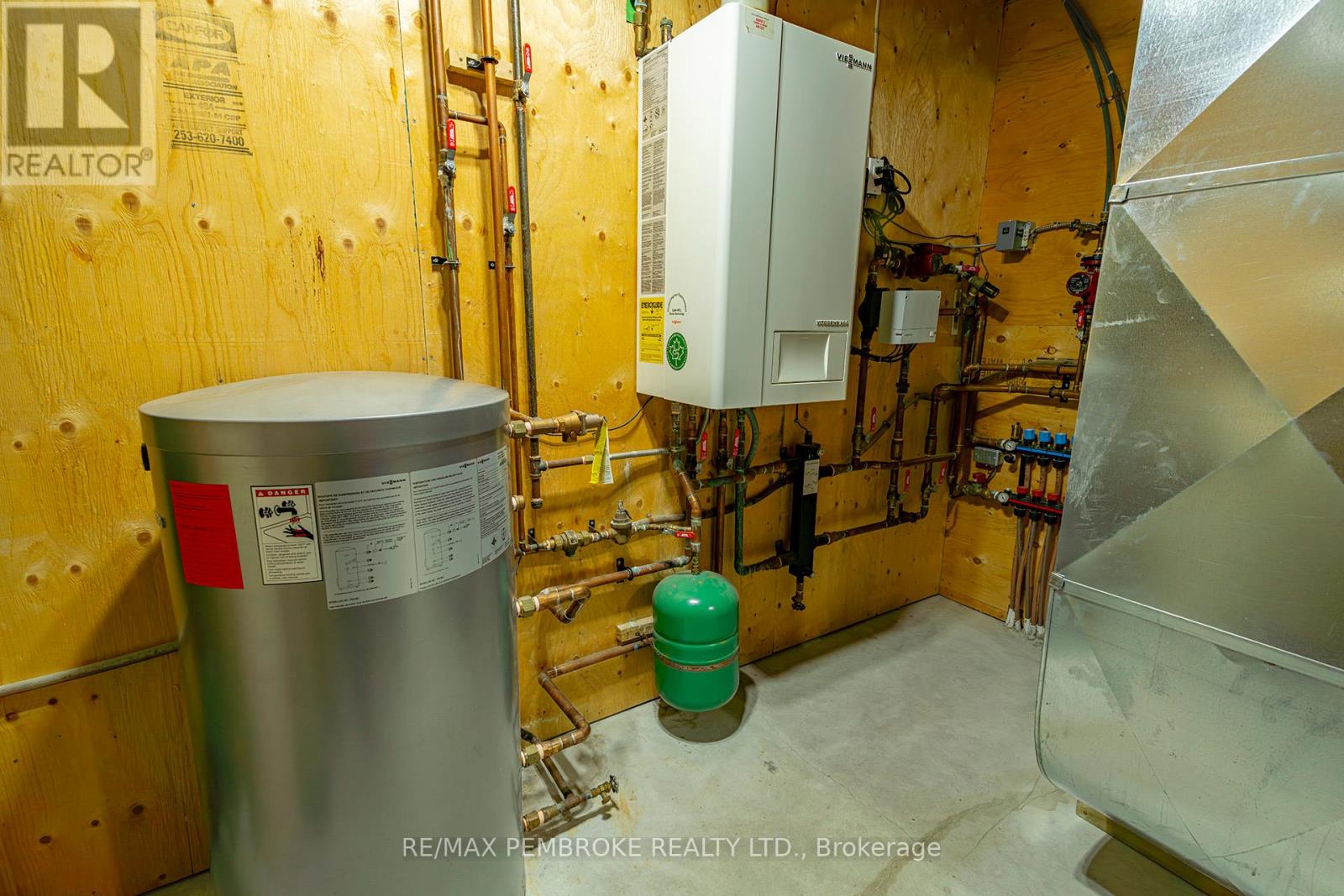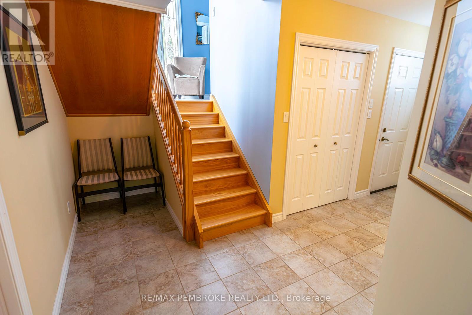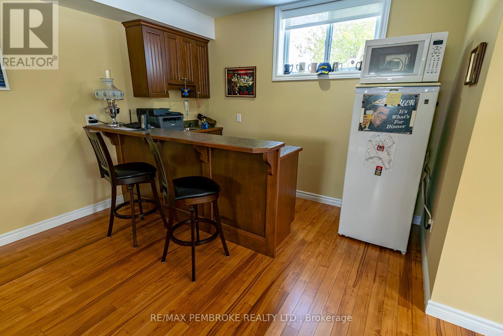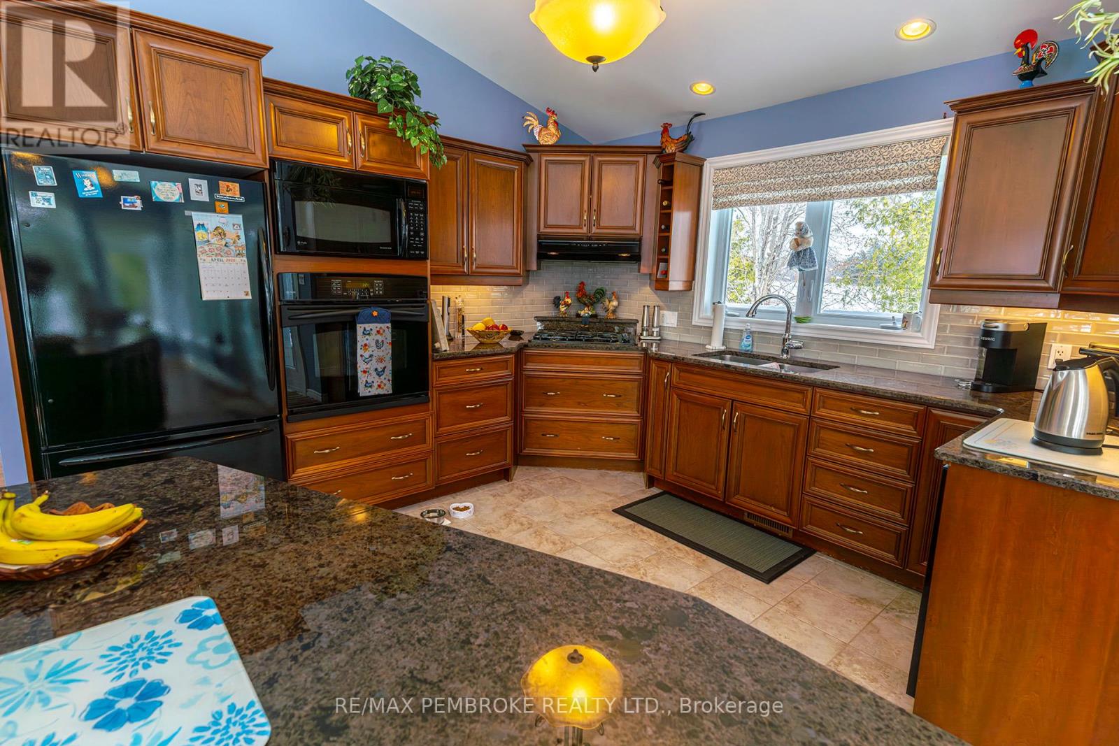 STUNNING LAKEFRONT home situated on private, estate like 5 acre lot with over 1100 feet of shoreline on desirable GOLDEN LAKE. Built on a breathtaking peninsula surrounded by WATERFRONT (east/west/south) with MATURE PINES & glorious all day sunshine. This high quality ZOMERS custom built 3 bed, 3 bath OPEN CONCEPT bungalow is bursting with high end features throughout. CAPITVATING PANORAMIC Lakes views surround you from all rooms on the main level thanks to the oversized windows, TALL 9ft ceilings, custom hardwood kitchen with granite counter tops & large Island, formal dining area with access to outdoor deck for outdoor summer dinners. LARGE living room area with vaulted ceiling and gas fireplace. Oversized primary bedroom with spa like ensuite bathroom & walk in closet, OVERSIZED mudroom with main floor laundry. TALL & bright finished lower level features; bar, LARGE rec room with gas fireplace, 3rd bedroom, gym area (could easily be space for 4th/5th bedroom), 3rd full bathroom and walk out direct access to the attached garage. this home has a ICF (insulated concrete form) foundation & radiant heated floors (lower level , kitchen, bathrooms). PRIVACY & TRANQUILITY awaits you outside with: extensive landscaping, two separate decks on opposite sides of the house, lush flat yard, 90ft of floating dock to moor your boats, plus your own private sandy beach and fire pit. Attached OVERSIZED 1 car garage and a second detached garage (28ft x36ft). The home is hardwired with a full sized Generator in case of power outages, Irrigation, Gated entry, FULL Paved Driveway, NEW shingles 2023 on house and detached garage. START making YOUR Lakefront memories a reality by, boating, fishing, swimming paddle boarding, kayaking, water skiing, tubing, ice fishing or snowmobiling! Just 600m off ON-60. 10mins to Eganville, 25mins to Pembroke, 85 mins to Ottawa. (id:28469)