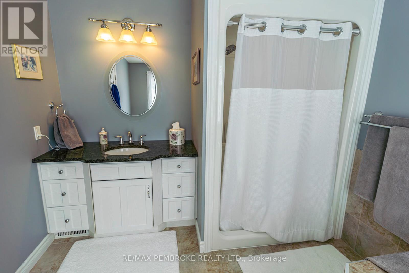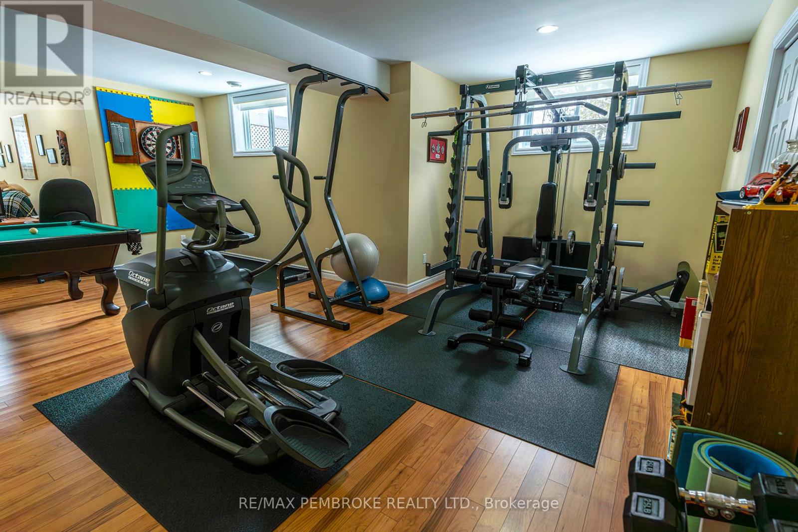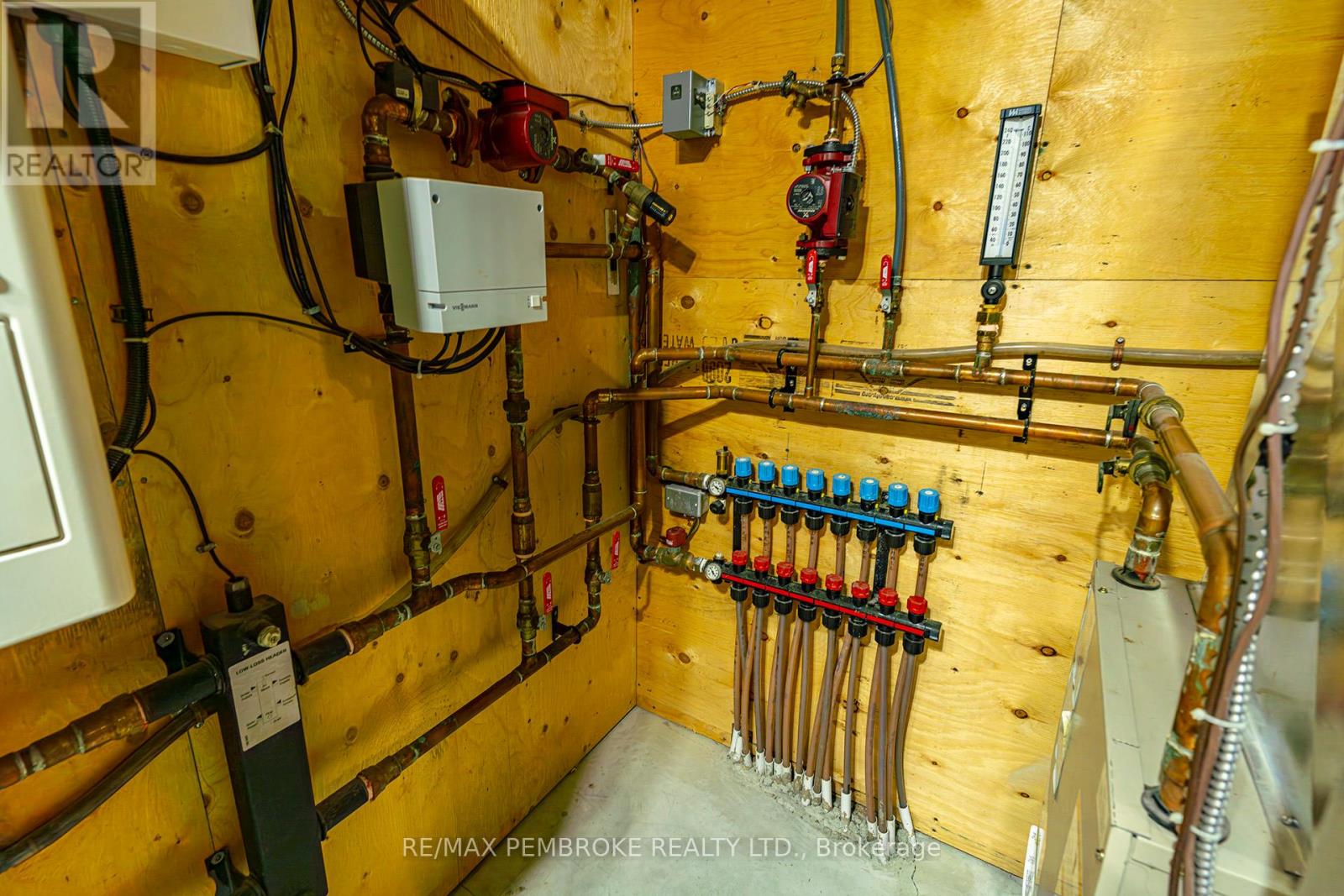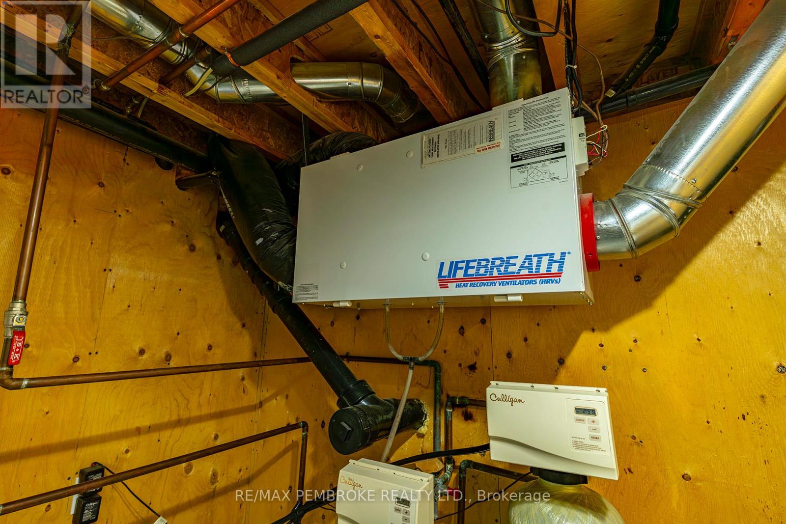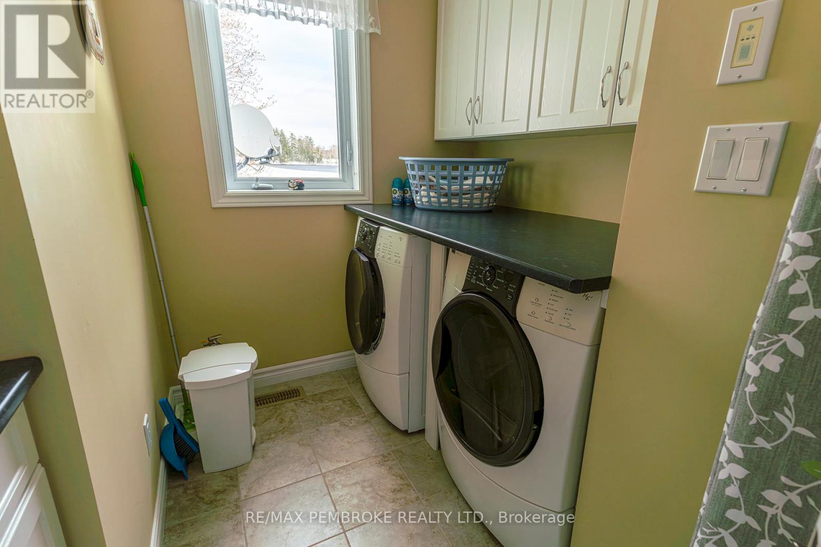 STUNNING LAKEFRONT home situated on private, estate like 5 acre lot with over 1100 feet of shoreline on desirable GOLDEN LAKE. Built on a breathtaking peninsula surrounded by WATERFRONT (east/west/south) with MATURE PINES & glorious all day sunshine. This high quality ZOMERS custom built 3 bed, 3 bath OPEN CONCEPT bungalow is bursting with high end features throughout. CAPITVATING PANORAMIC Lakes views surround you from all rooms on the main level thanks to the oversized windows, TALL 9ft ceilings, custom hardwood kitchen with granite counter tops & large Island, formal dining area with access to outdoor deck for outdoor summer dinners. LARGE living room area with vaulted ceiling and gas fireplace. Oversized primary bedroom with spa like ensuite bathroom & walk in closet, OVERSIZED mudroom with main floor laundry. TALL & bright finished lower level features; bar, LARGE rec room with gas fireplace, 3rd bedroom, gym area (could easily be space for 4th/5th bedroom), 3rd full bathroom and walk out direct access to the attached garage. this home has a ICF (insulated concrete form) foundation & radiant heated floors (lower level , kitchen, bathrooms). PRIVACY & TRANQUILITY awaits you outside with: extensive landscaping, two separate decks on opposite sides of the house, lush flat yard, 90ft of floating dock to moor your boats, plus your own private sandy beach and fire pit. Attached OVERSIZED 1 car garage and a second detached garage (28ft x36ft). The home is hardwired with a full sized Generator in case of power outages, Irrigation, Gated entry, FULL Paved Driveway, NEW shingles 2023 on house and detached garage. START making YOUR Lakefront memories a reality by, boating, fishing, swimming paddle boarding, kayaking, water skiing, tubing, ice fishing or snowmobiling! Just 600m off ON-60. 10mins to Eganville, 25mins to Pembroke, 85 mins to Ottawa. (id:28469)