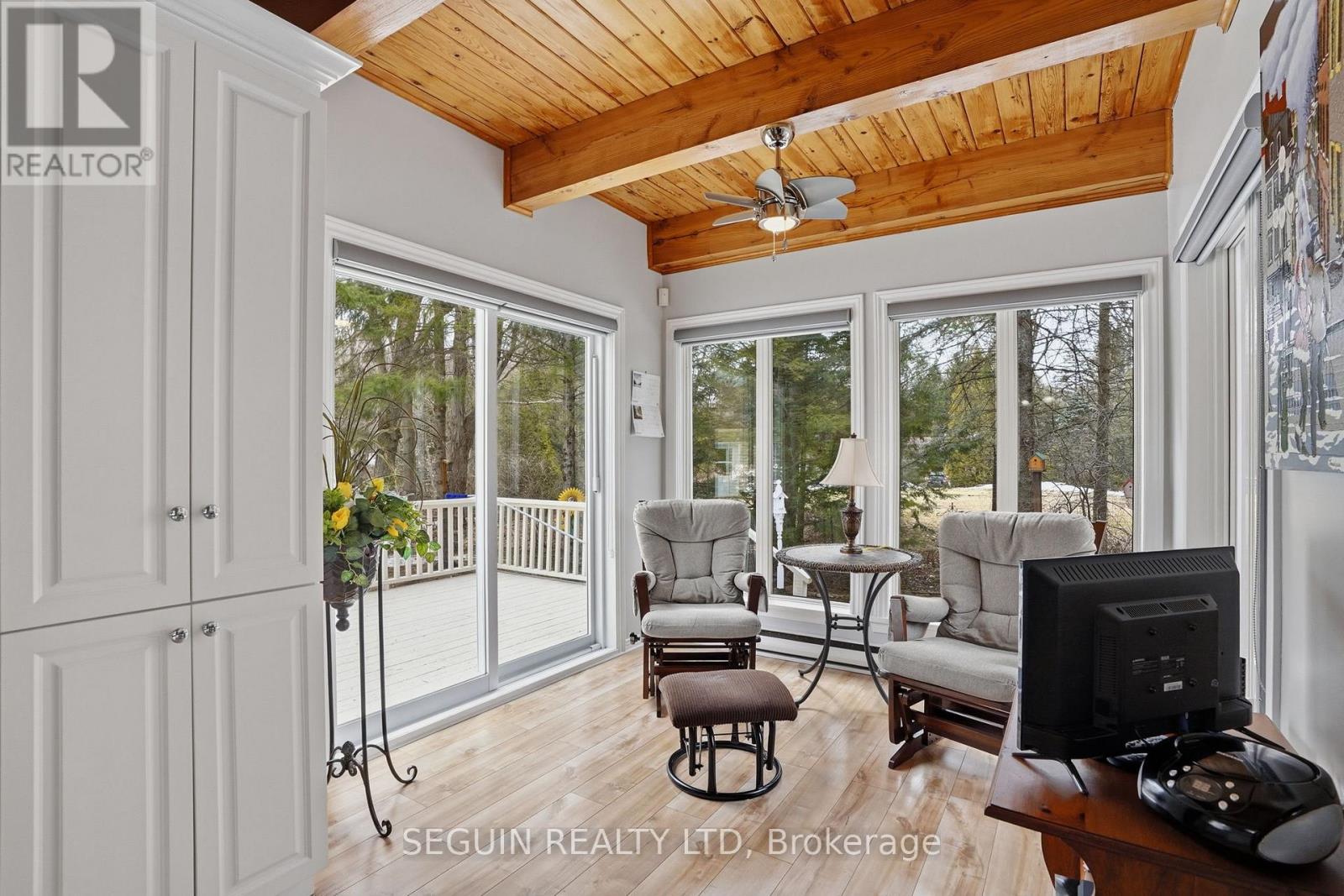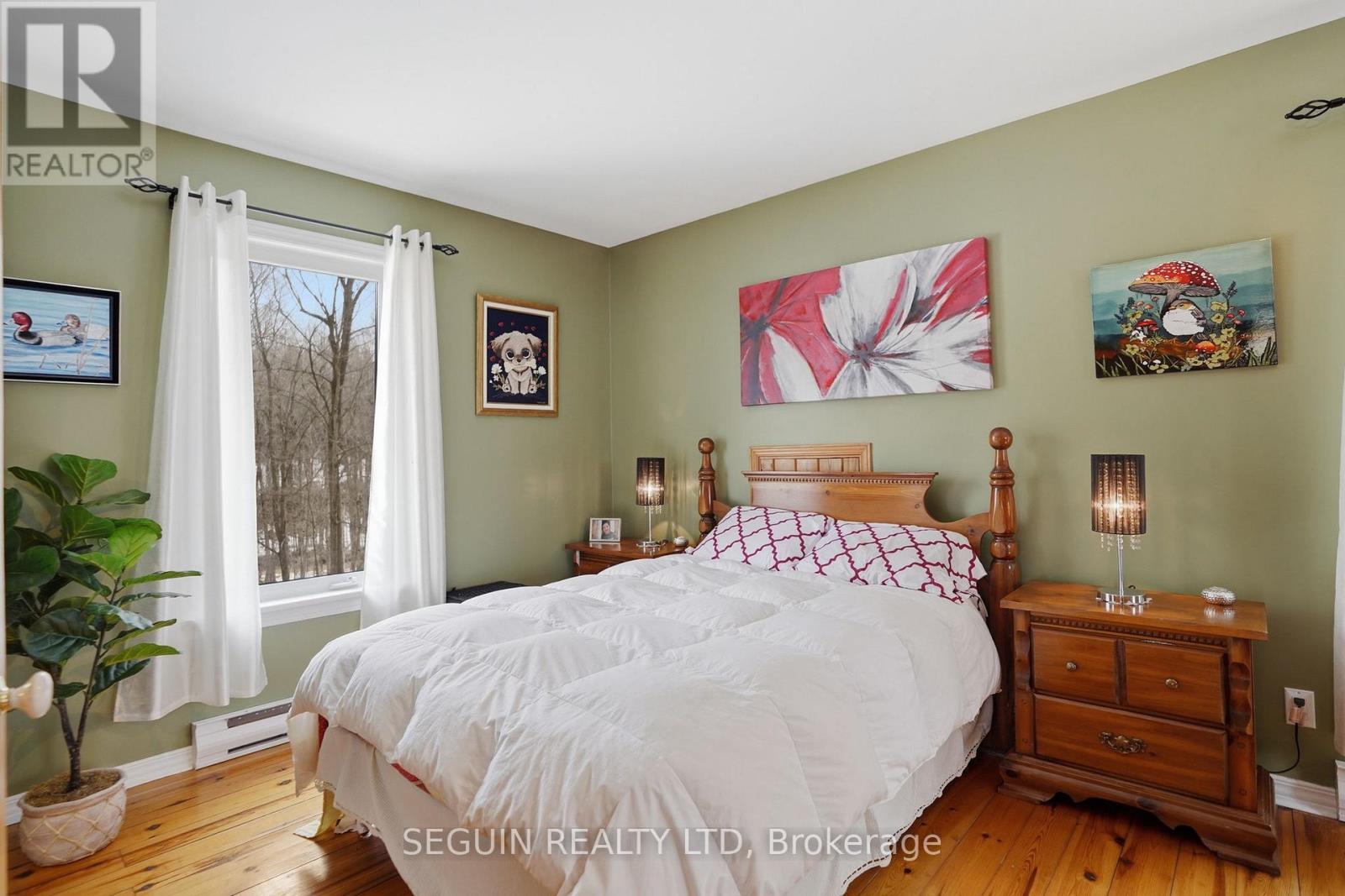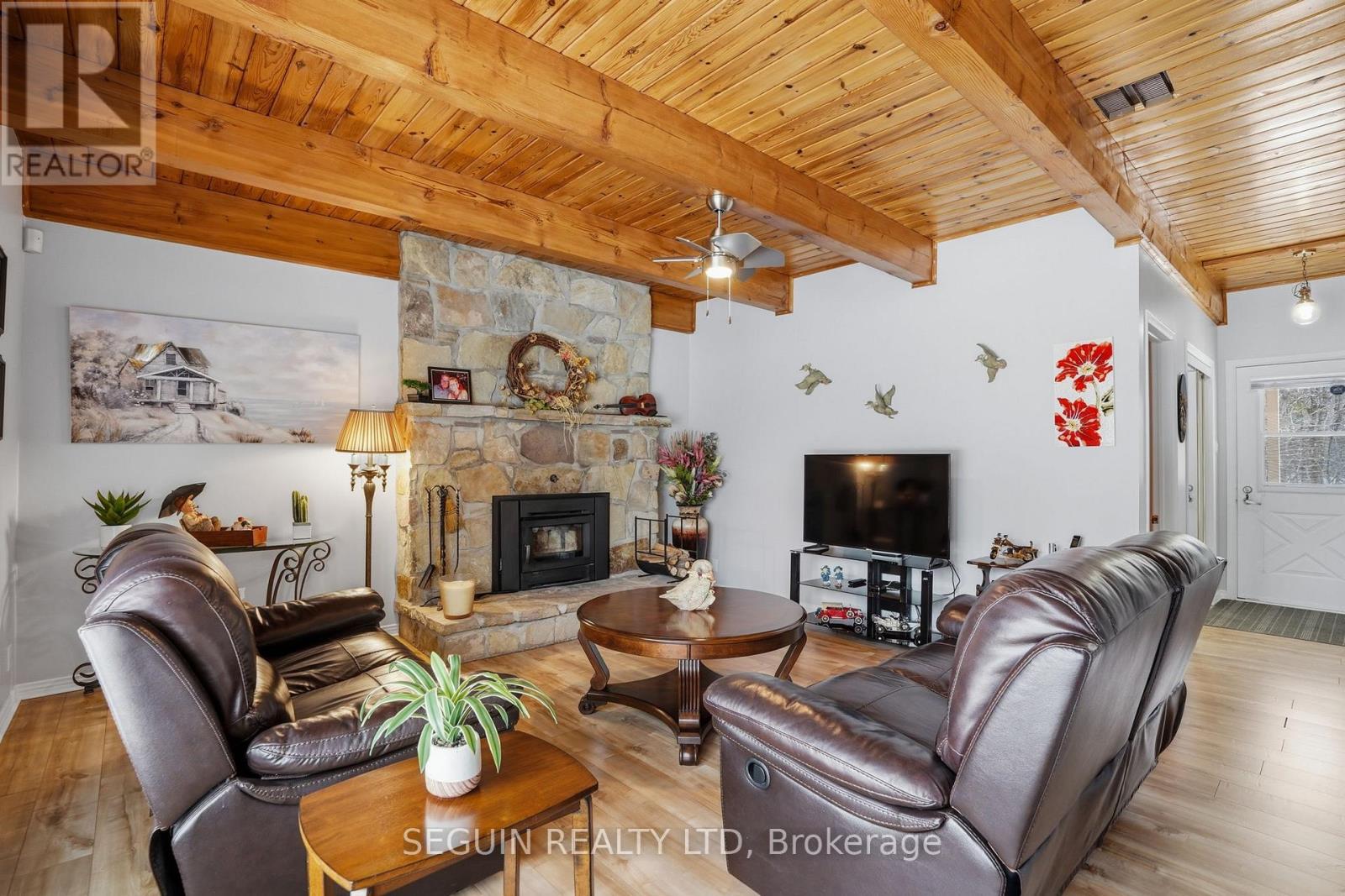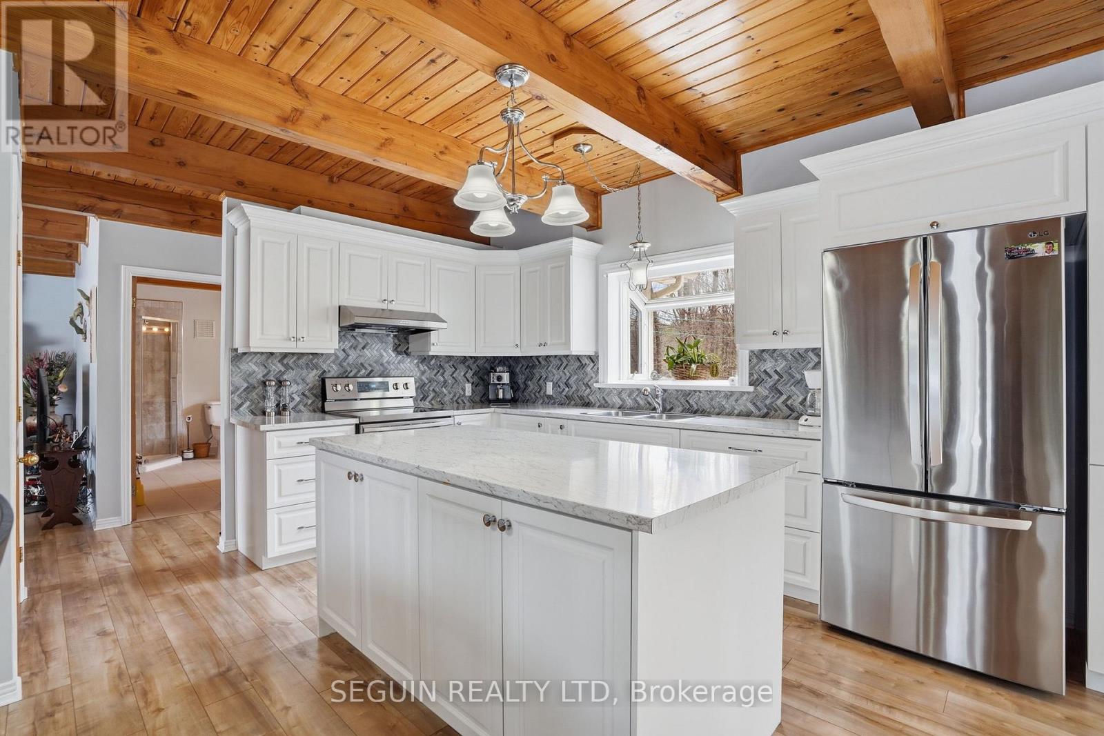 Impeccably maintained home ideally located directly across from the renowned Hawkesbury Golf and Curling Club, offering a peaceful setting and an exceptional lifestyle.This charming one-and-three-quarter storey home features a warm and inviting layout. The main floor offers a spacious living room filled with natural light and a wood-burning fireplace adds comfort and character to the space, a welcoming dining area, and a beautifully renovated kitchen (2020) combining style and functionality. A cozy sunroom sits just off the kitchen, perfect for enjoying natural light year-round. The main floor has seen several key updates, including new flooring (2020), a modern kitchen (2020), and an updated bathroom (2024). A heat pump installed in 2020 ensures efficient year-round comfort. Upstairs, you will find two generously sized bedrooms along with a second full bathroom, ideal for families or guests. Situated on a beautiful 100 x 150 ft lot, the property offers privacy and a true country feel. A standout feature is the detached double garage (22 x 40), fully finished inside and meticulously maintained - perfect for storage, hobbies, or workshop use. Major updates include windows (2015 or newer) and a roof replaced in 2020, offering peace of mind for years to come.A true turnkey property combining comfort, space, and a prime location. (id:28469)