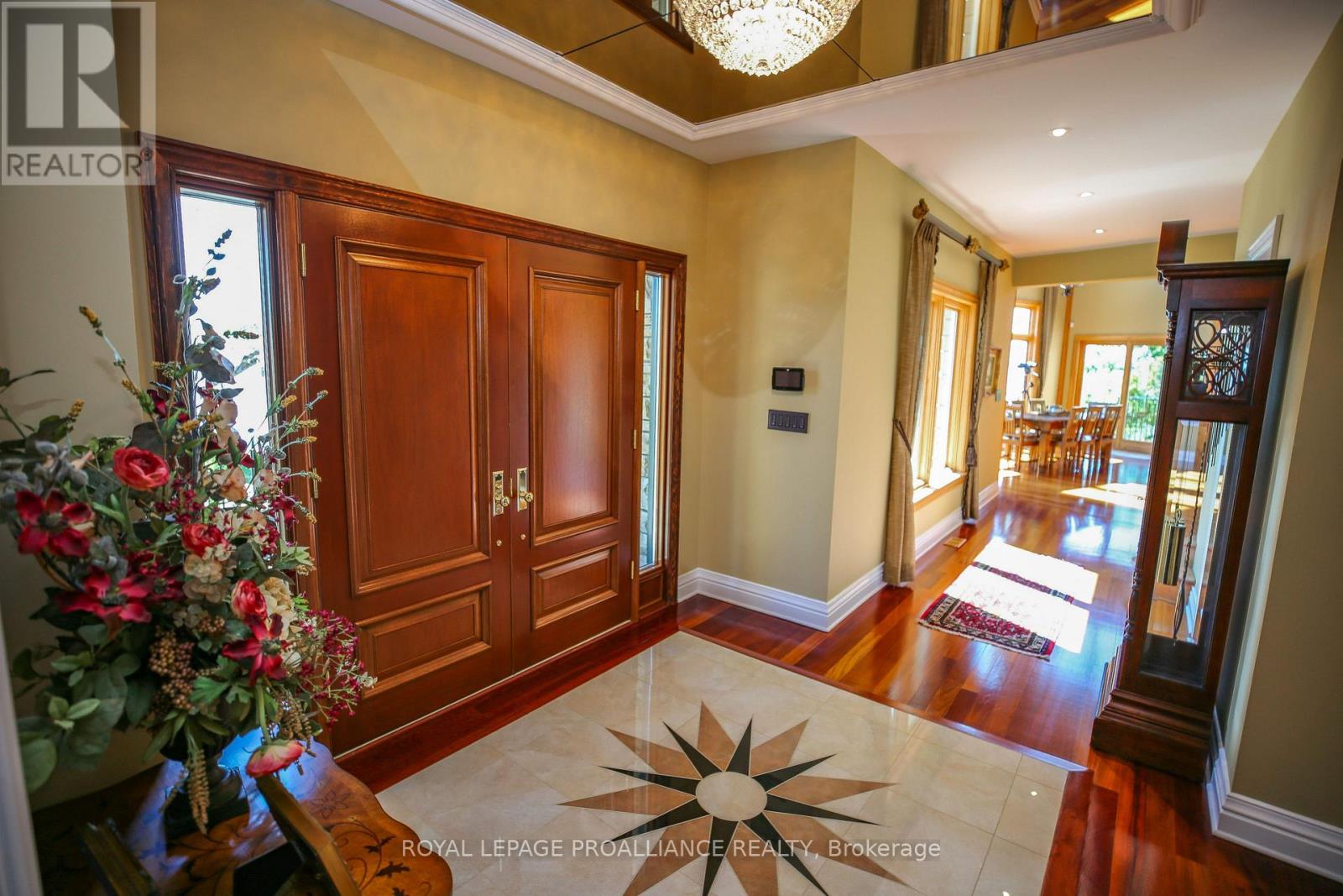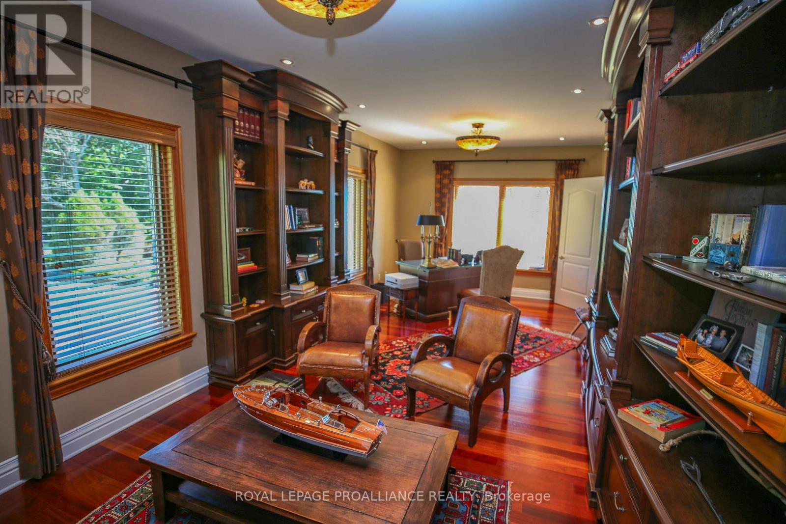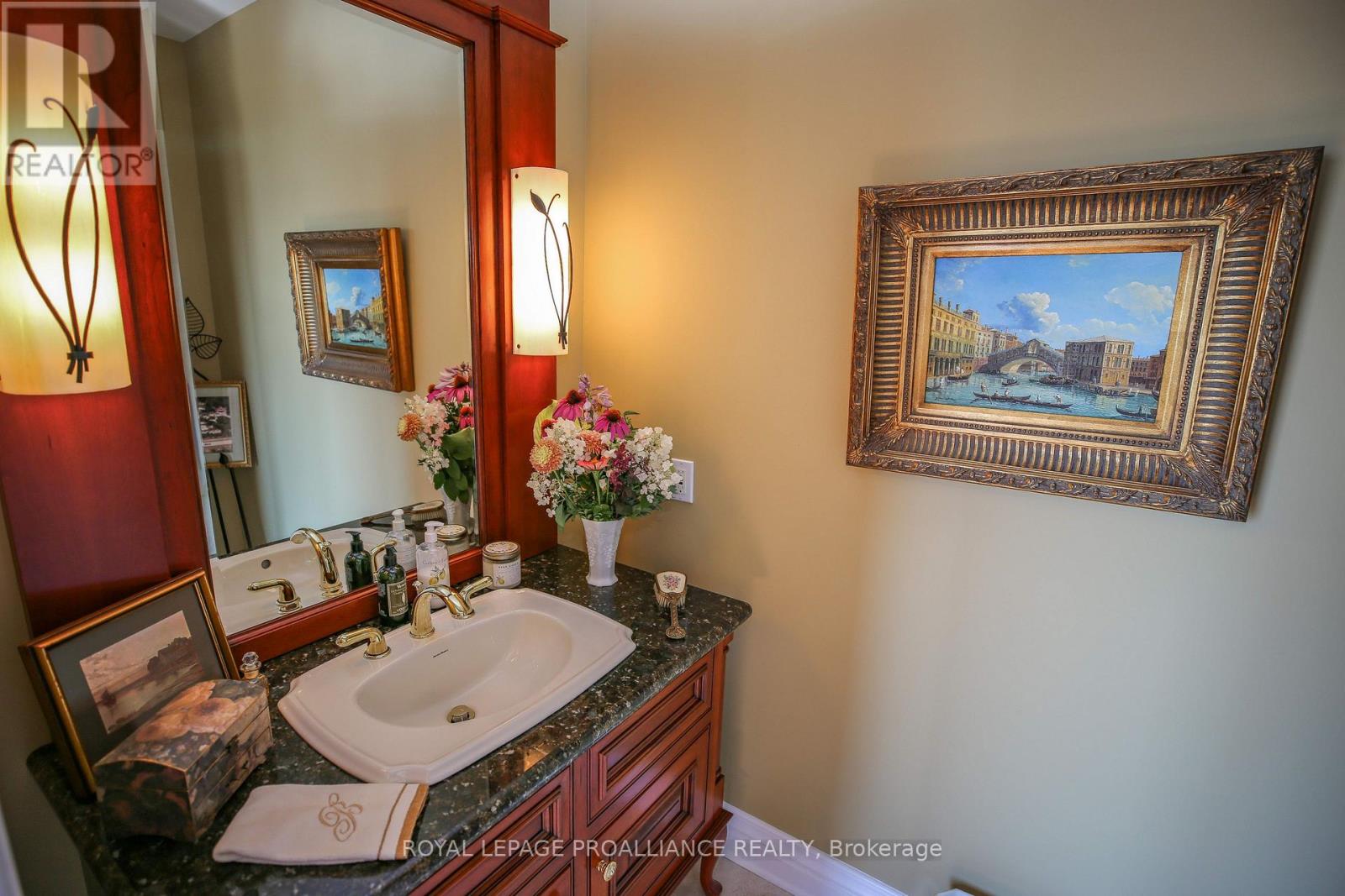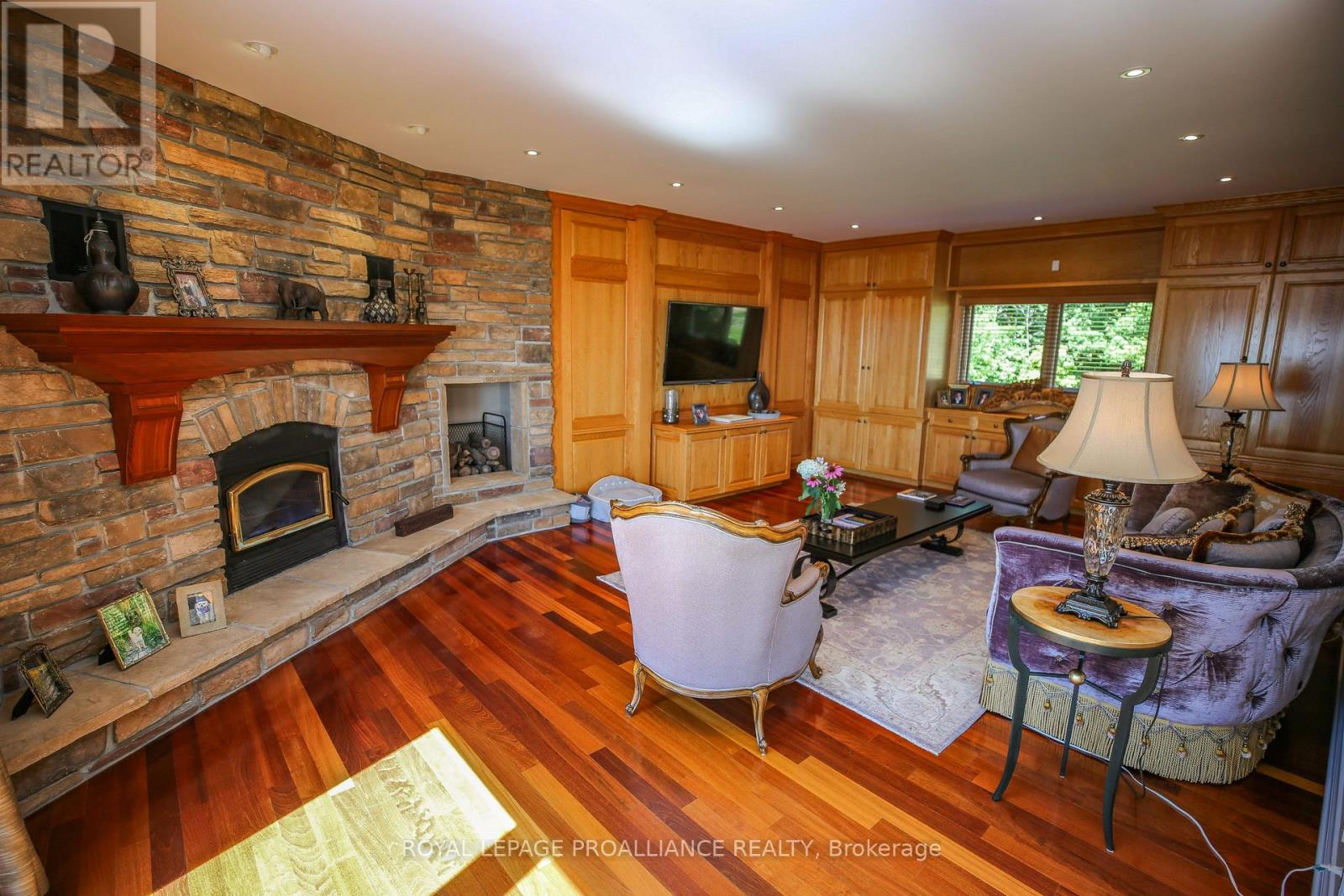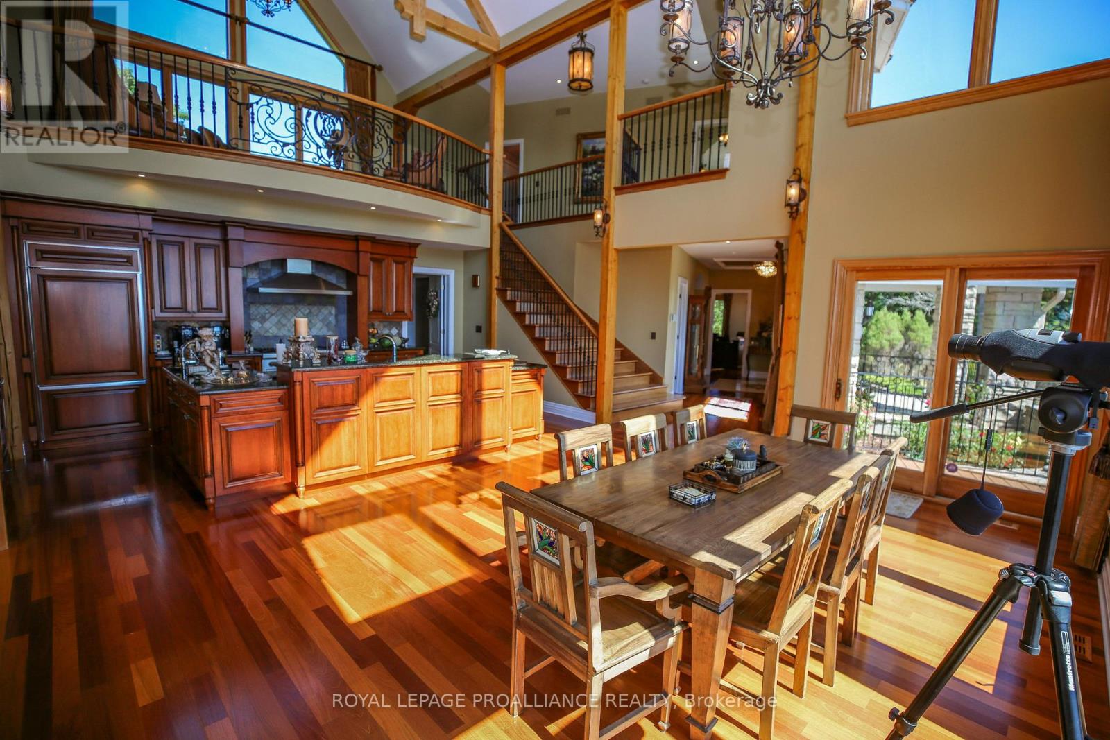 Perched high above the St. Lawrence River in the heart of the world-renowned 1000 Islands, this exceptional custom-built estate offers breathtaking panoramic views stretching to the iconic Singer Castle. A rare combination of timeless design, elevated privacy, and refined outdoor living, this is waterfront living at its finest. Spanning approximately 6,000 sq. ft., the home is designed to maximize light and scenery, with expansive floor-to-ceiling windows framing the ever-changing river views. Inside, rich Brazilian cherry hardwood and marble flooring, along with handcrafted Hubbardton Forge lighting, create a warm yet sophisticated atmosphere. Floor to ceiling stone fireplace with air tight wood insert, perfect for both relaxing and entertaining. The gourmet kitchen features custom cherry cabinetry, a Wolf gas stove, and two Dacor ovens, family room with custom built-ins and stunning water views. The principal suite offers a private retreat with a spa-inspired ensuite and picturesque outlook, while two additional bedrooms each include their own ensuite for added comfort and privacy. The walk-out lower level, complete with 10-foot ceilings and in-floor heating, provides exceptional additional living space with a rec room, wet bar, office, and exercise area. Outdoors, professionally landscaped grounds showcase extensive stonework, stamped concrete, and maintenance-free decking. Multiple entertaining areas, including a built-in BBQ and smoker, create the perfect setting to enjoy the riverfront backdrop. A wrought iron gated entrance and fencing add both elegance and security, with additional access from Old River Road. Additional features include a steel roof, two central air units, and direct access to 37 km of paved walking and cycling trails leading to Gananoque. A truly rare offering in one of Canada's most iconic waterfront settings - this is more than a home, it's a landmark 1000 Islands estate. (id:28469)