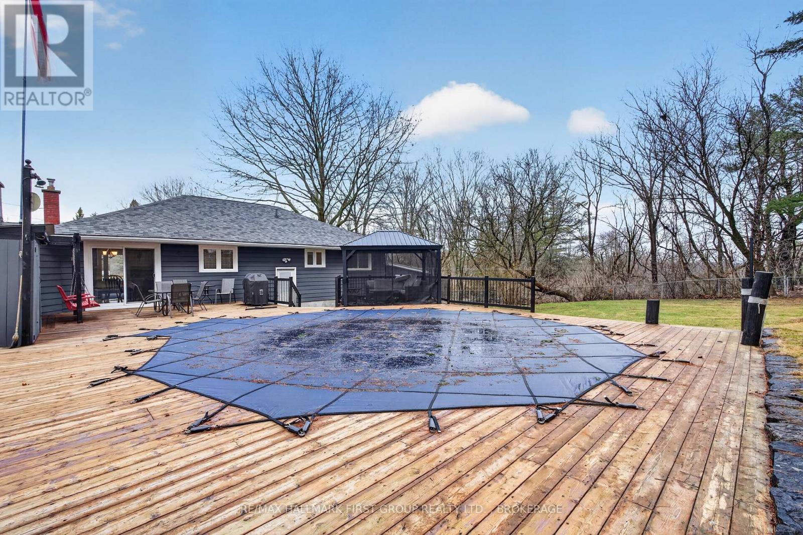 Tucked away in a hidden enclave on the edge of town, this exceptional bungalow offers a rare opportunity to experience refined living surrounded by nature and complete privacy. Set on a beautifully secluded lot beside a creek and conservation lands, the setting is serene, picturesque, and truly one-of-a-kind-an unexpected retreat within city limits.Thoughtfully maintained and with lovely curb appeal, the home offers 3 bedrooms and 1 bathroom. The newly updated kitchen features fresh cabinetry, stylish granite countertops, and a modern paint palette that blend style and functionality. The attached garage has lots of storage, while the bungalow layout provides effortless, single-level living.Outdoors, the property transforms into a private sanctuary. Perennial gardens create a lush, ever-changing landscape, while the saltwater on-ground pool offers the perfect place to unwind. Solar heating is in place and can be easily reconnected to extend your enjoyment throughout the seasons. Extensive decking creates an incredible entertaining area.Located just minutes from Costco and with easy access to the K&P Trail, this home seamlessly combines tranquil, country-like living with the convenience of nearby amenities.A rare offering for those seeking privacy, natural beauty, and understated luxury in a truly special setting. (id:28469)