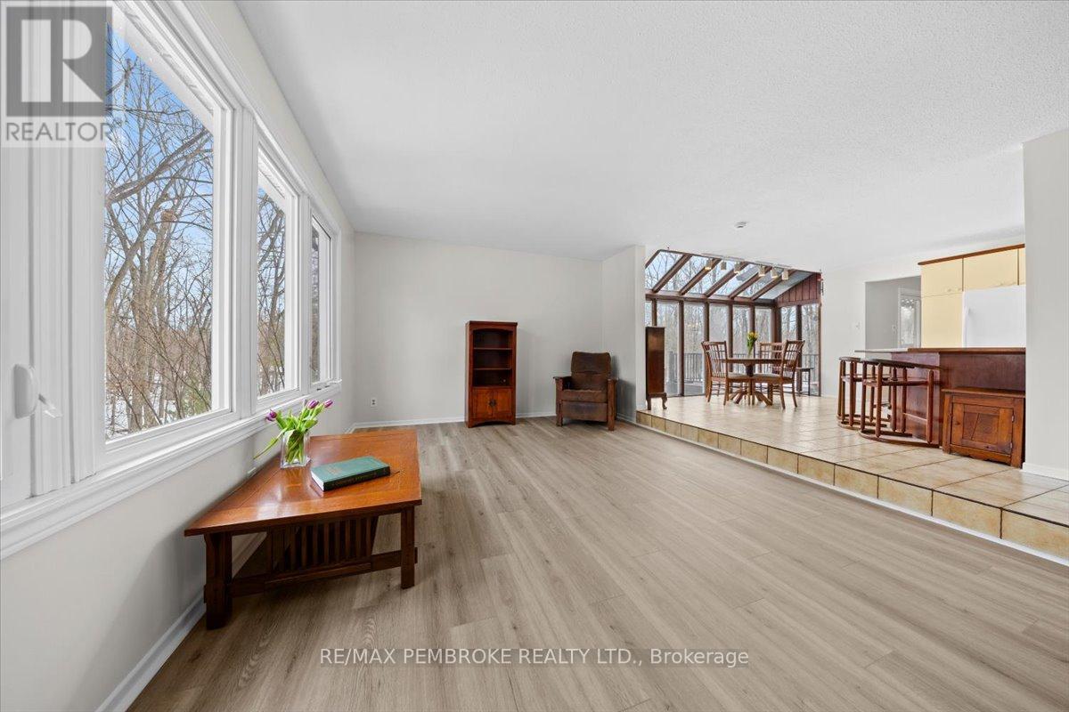 Welcome to 1235 Millburn Crescent, a beautifully updated 3-bedroom, 2-bathroom home set on just over 6 acres of mature, treed land, offering the peace and privacy of country living with the feeling of being surrounded by nature. A long paved circular driveway creates a welcoming approach and enhances the home's private setting. Inside, the main floor is filled with an abundance of natural light and has been extensively refreshed in 2026 with fresh paint, all new flooring, and new carpet on the stairs. The lower level offers incredible versatility, featuring a spacious family room, workshop, laundry room, and cold storage area. There is also an unfinished section already plumbed for an additional bathroom, along with two unfinished rooms that offer excellent potential for a future bedroom, games room, or additional living space. Enjoy outdoor living with a large deck (2025) off the dining room, perfect for entertaining, as well as a private deck off the primary bedroom for your own quiet retreat. The property also includes a double car garage. This is the perfect family home on one of the largest and most private lots in the area - a rare opportunity to enjoy space, comfort, and nature all in one. (id:28469)