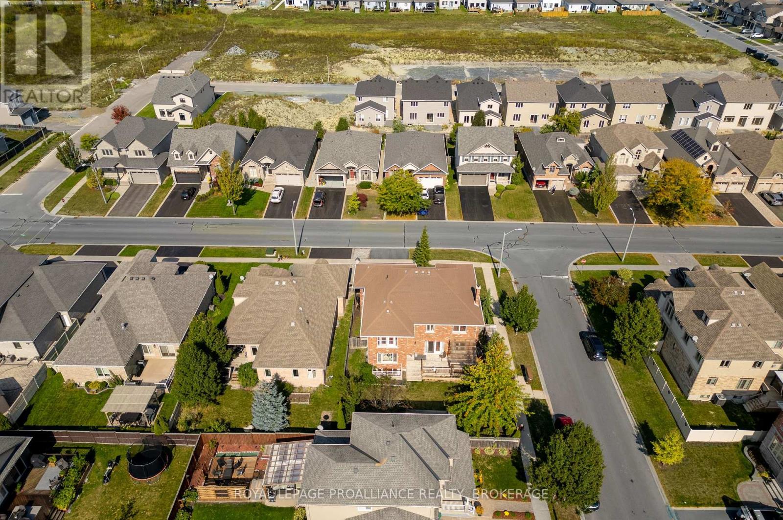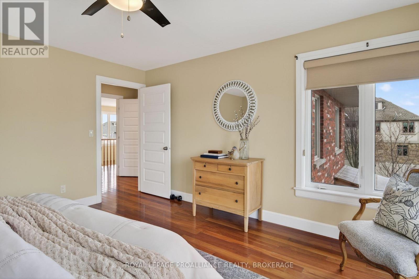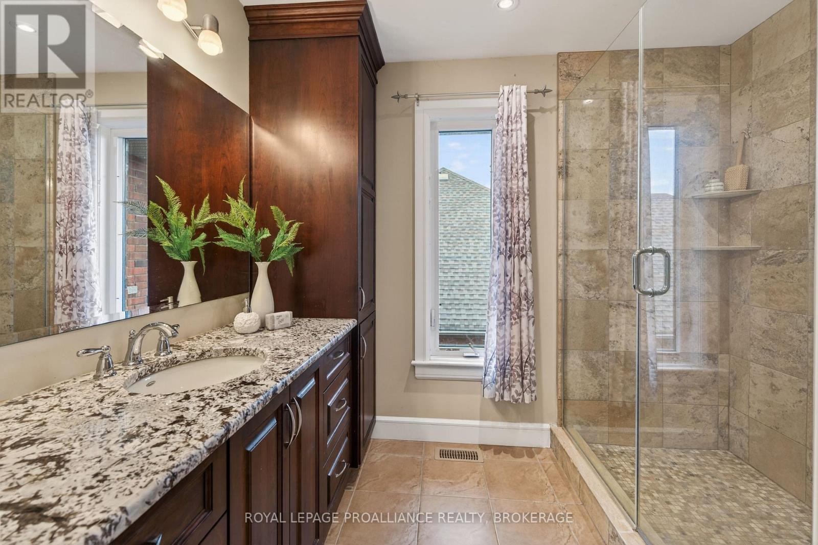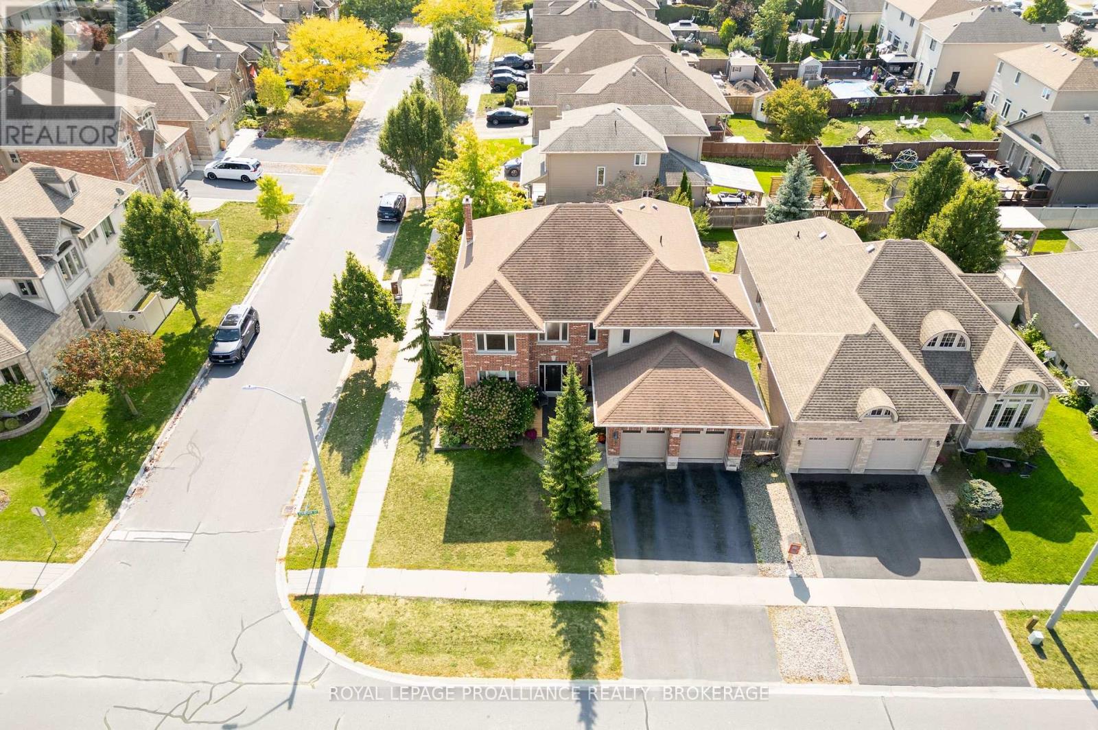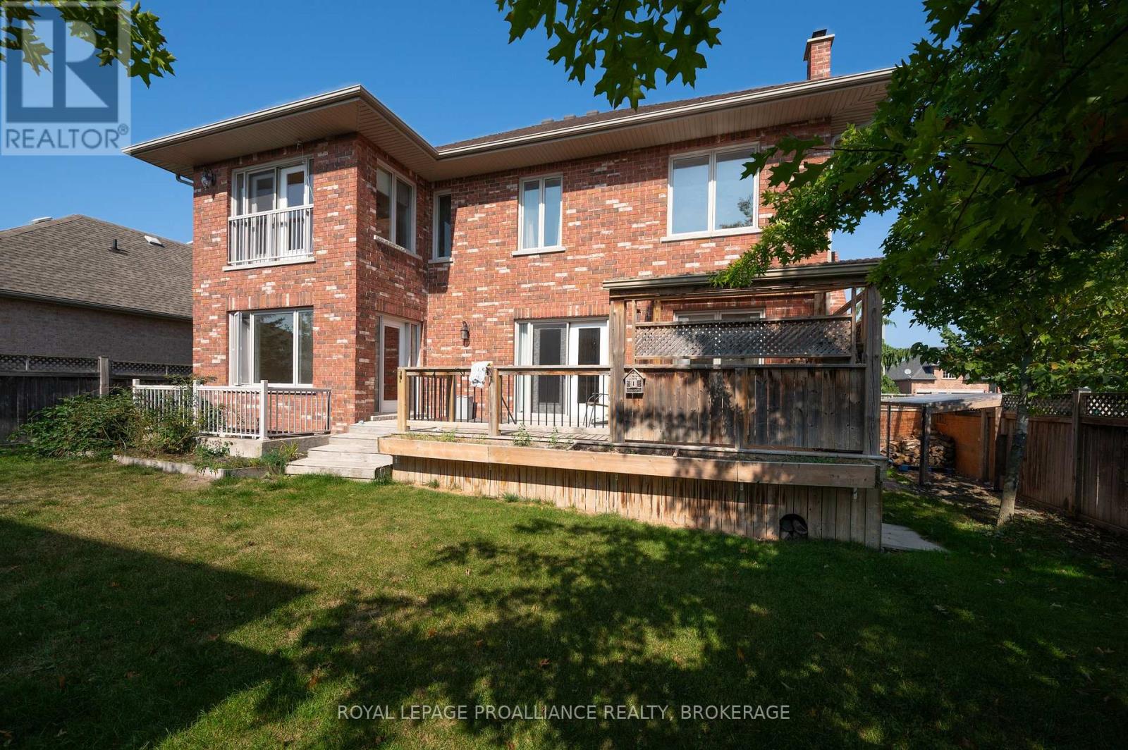 Modern Luxury on a Corner Lot in Cataraqui North. Bright, spacious, and beautifully finished, this 4+2 bedroom home offers refined living on a generous corner lot with a sunny south-facing backyard. The grand two-storey foyer features shaker-style columns and a striking cantilevered staircase leading to an open balcony landing. The main floor's open-concept layout showcases cherry-wood floors, granite counters, transom windows, and custom built-ins. A large prep island anchors the cherry kitchen, complete with slow-close cabinetry and a walk-in pantry. Oversized windows flood the space with natural light, continuing upstairs into four spacious bedrooms. The primary suite includes patio doors to a Juliet balcony and a stylish ensuite with a tiled walk-in shower and stone-topped vanity. The luxurious family bath features a roll-top clawfoot tub and separate shower. A second-floor laundry adds everyday convenience. The finished basement-with 9-foot ceilings-offers two additional bedrooms, a second kitchen, second laundry, and a large rec room, ideal for in-laws or teens. Outside, enjoy a covered gazebo patio, landscaped flower beds, and a deck with hot tub connections under a lean-to shelter. The property is equipped with hot tub and generator hookups, offering added comfort and peace of mind year-round. This home blends elegance and functionality-perfect for families, entertainers, or multi-generational living. (id:28469)