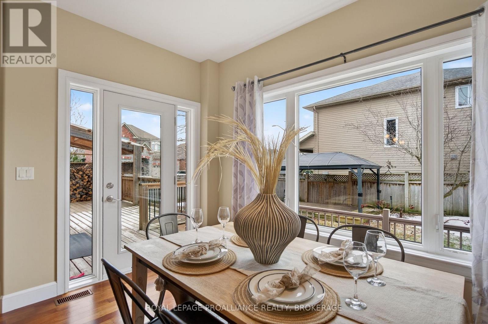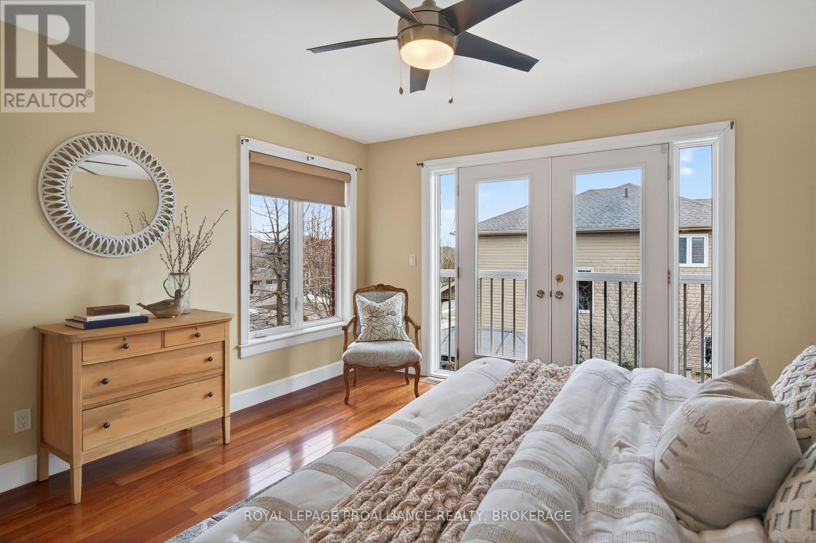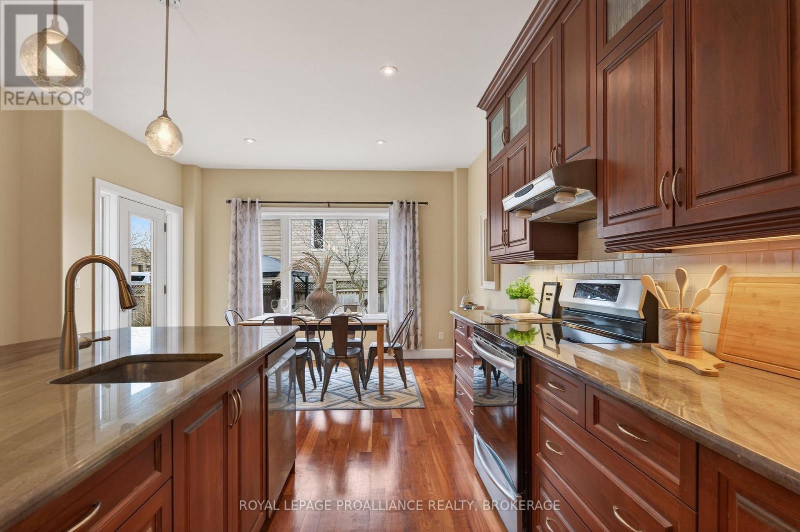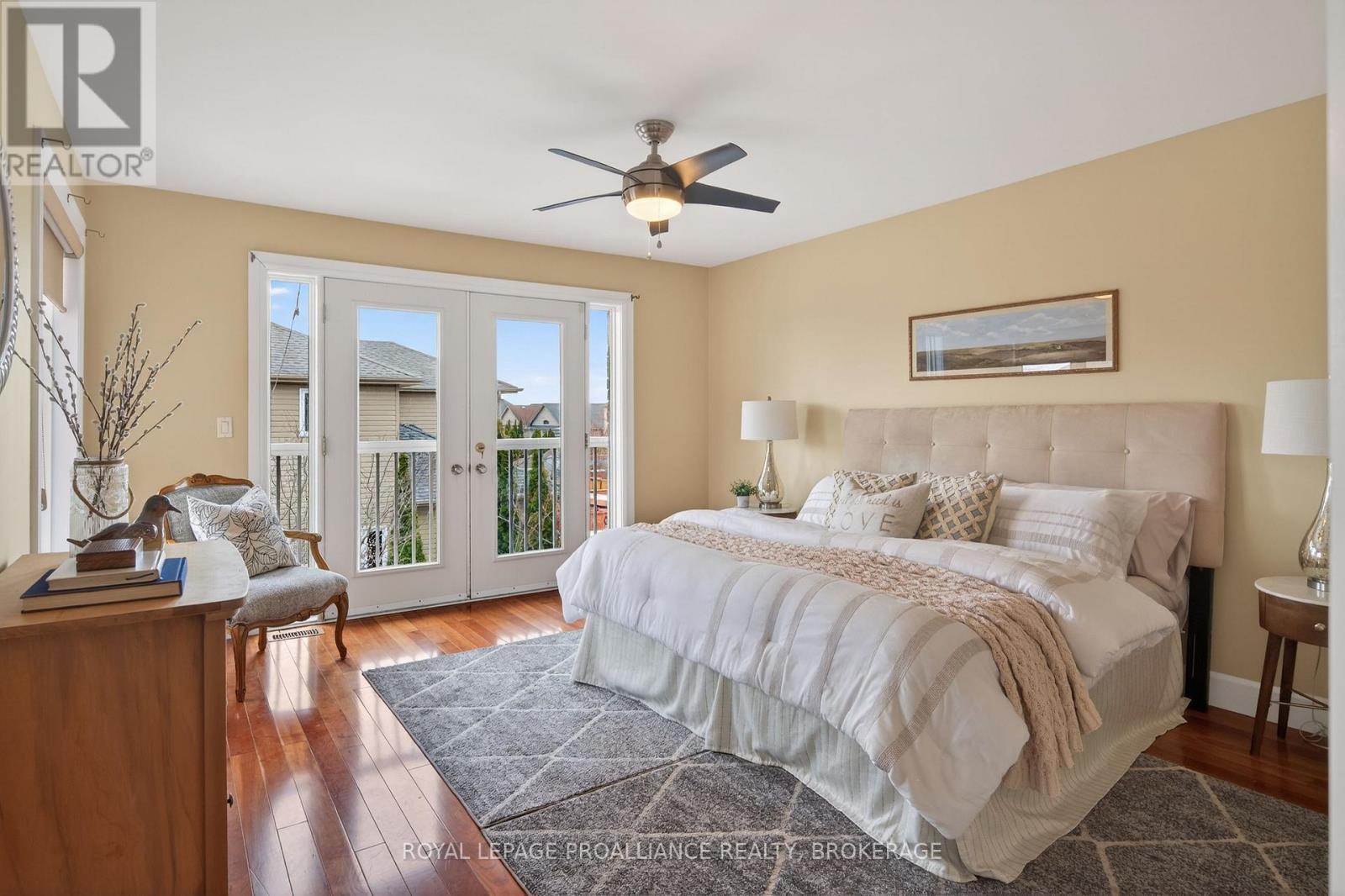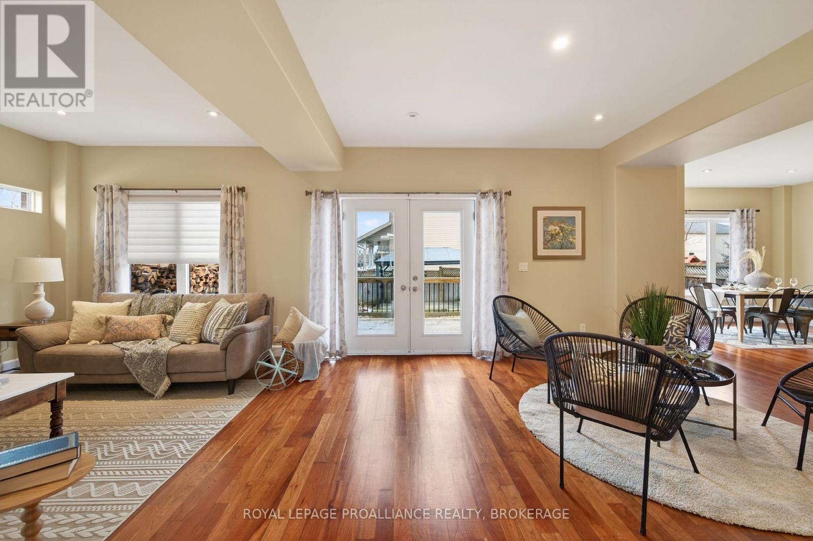 Modern Luxury on a Corner Lot in Cataraqui North. Bright, spacious, and beautifully finished, this 4+2 bedroom home offers refined living on a generous corner lot with a sunny south-facing backyard. The grand two-storey foyer features shaker-style columns and a striking cantilevered staircase leading to an open balcony landing. The main floor's open-concept layout showcases cherry-wood floors, granite counters, transom windows, and custom built-ins. A large prep island anchors the cherry kitchen, complete with slow-close cabinetry and a walk-in pantry. Oversized windows flood the space with natural light, continuing upstairs into four spacious bedrooms. The primary suite includes patio doors to a Juliet balcony and a stylish ensuite with a tiled walk-in shower and stone-topped vanity. The luxurious family bath features a roll-top clawfoot tub and separate shower. A second-floor laundry adds everyday convenience. The finished basement-with 9-foot ceilings-offers two additional bedrooms, a second kitchen, second laundry, and a large rec room, ideal for in-laws or teens. Outside, enjoy a covered gazebo patio, landscaped flower beds, and a deck with hot tub connections under a lean-to shelter. The property is equipped with hot tub and generator hookups, offering added comfort and peace of mind year-round. This home blends elegance and functionality-perfect for families, entertainers, or multi-generational living. (id:28469)