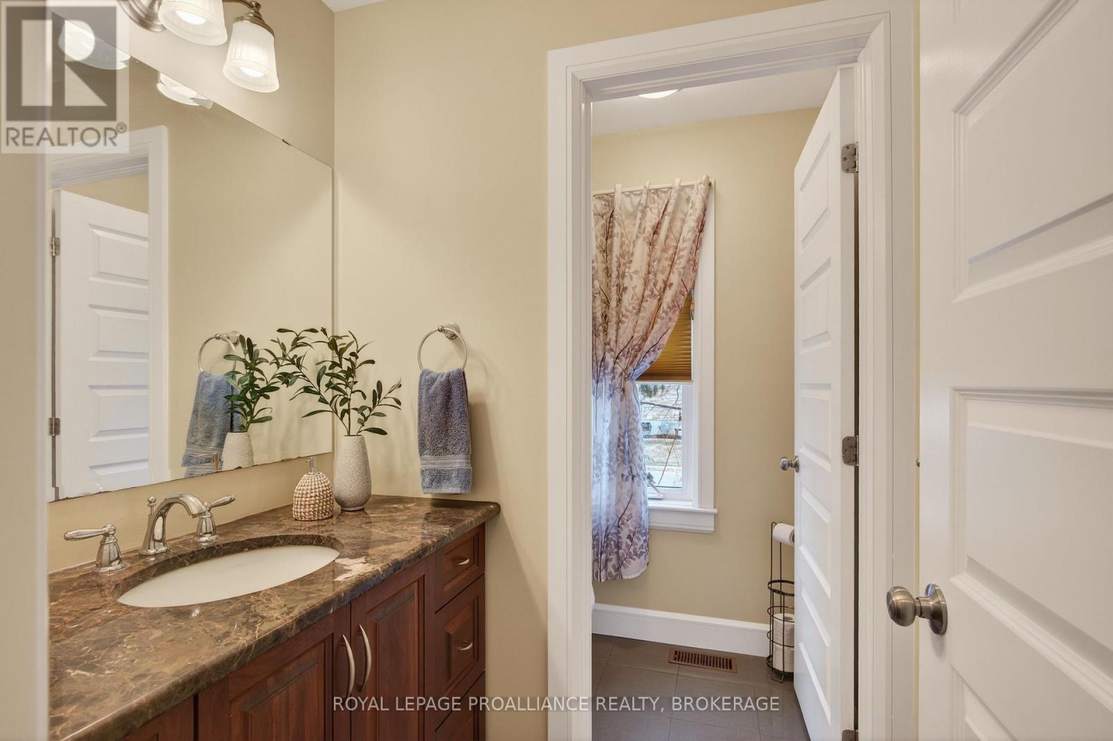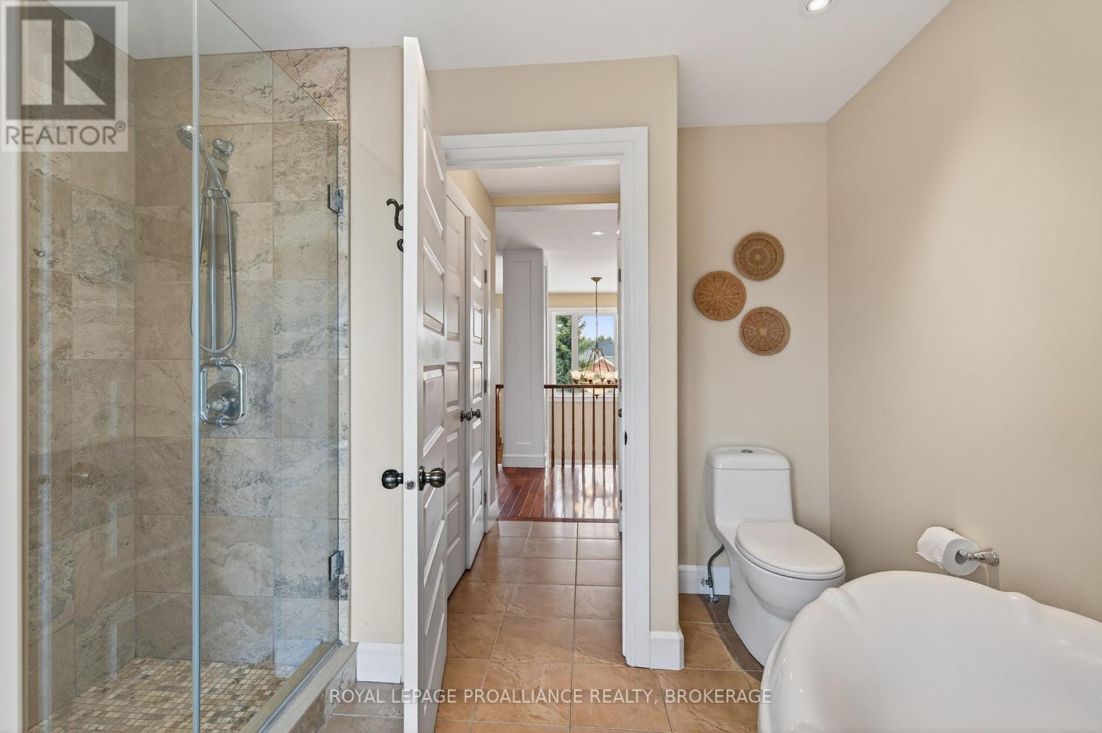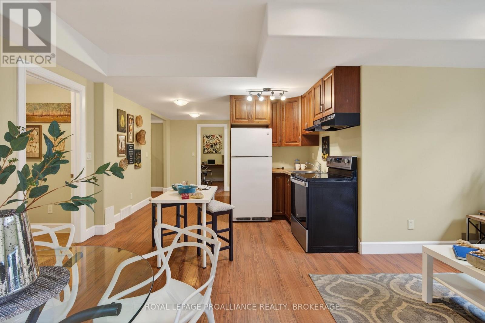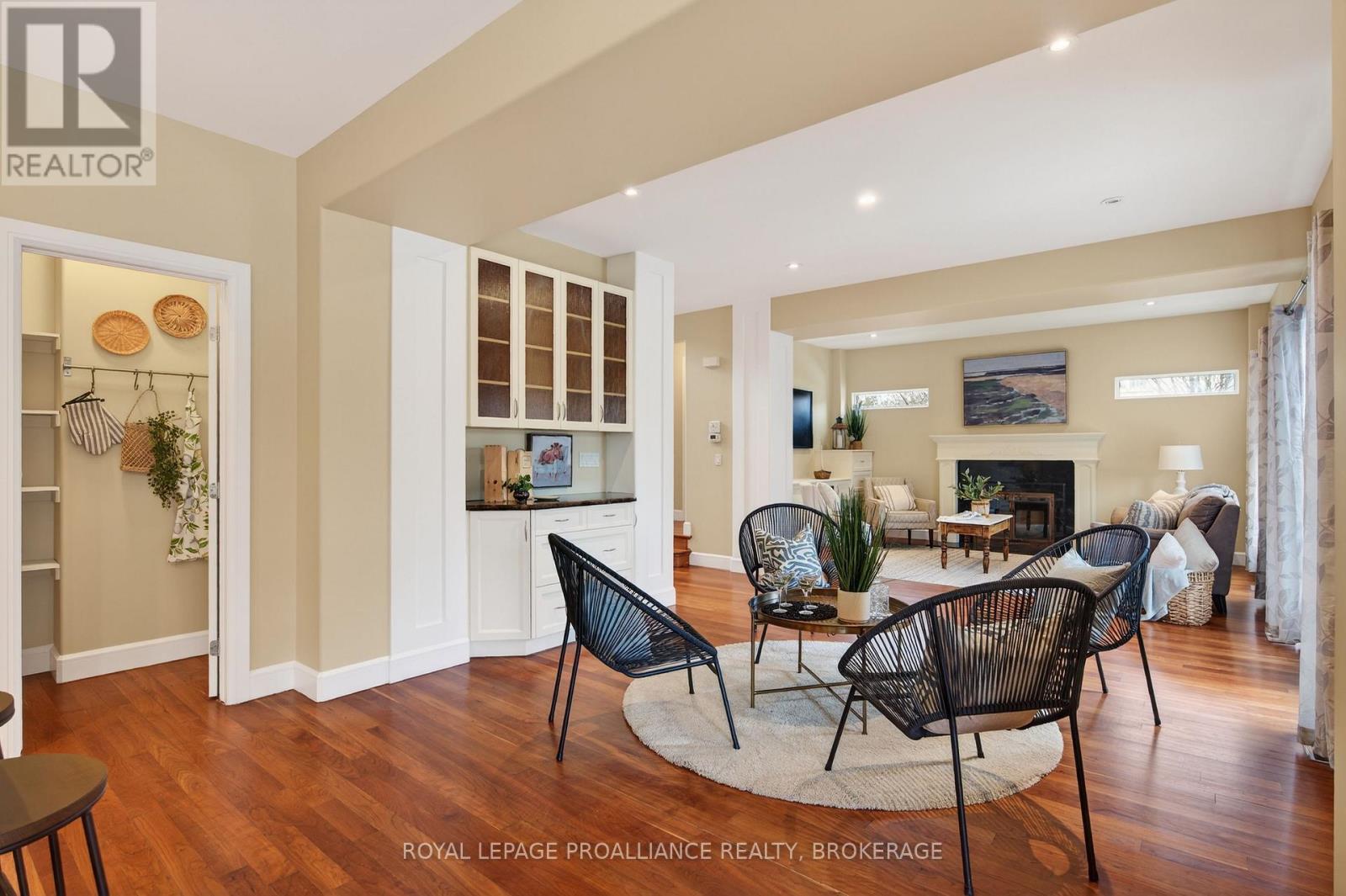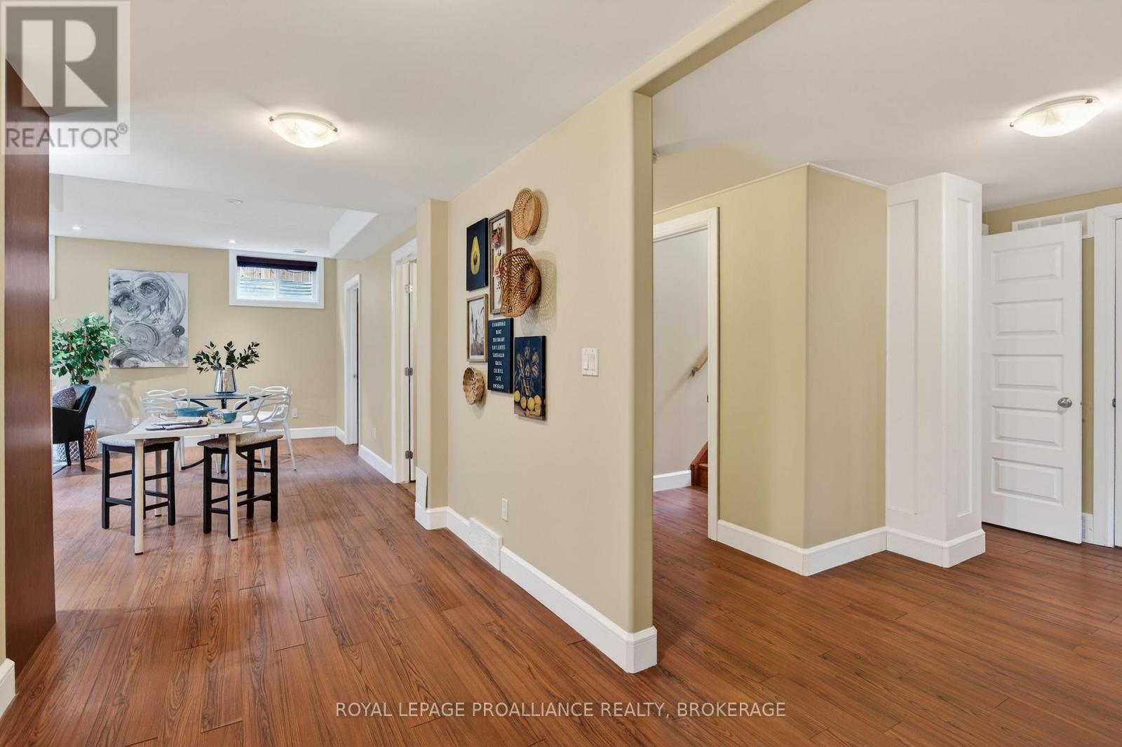 Modern Luxury on a Corner Lot in Cataraqui North. Bright, spacious, and beautifully finished, this 4+2 bedroom home offers refined living on a generous corner lot with a sunny south-facing backyard. The grand two-storey foyer features shaker-style columns and a striking cantilevered staircase leading to an open balcony landing. The main floor's open-concept layout showcases cherry-wood floors, granite counters, transom windows, and custom built-ins. A large prep island anchors the cherry kitchen, complete with slow-close cabinetry and a walk-in pantry. Oversized windows flood the space with natural light, continuing upstairs into four spacious bedrooms. The primary suite includes patio doors to a Juliet balcony and a stylish ensuite with a tiled walk-in shower and stone-topped vanity. The luxurious family bath features a roll-top clawfoot tub and separate shower. A second-floor laundry adds everyday convenience. The finished basement-with 9-foot ceilings-offers two additional bedrooms, a second kitchen, second laundry, and a large rec room, ideal for in-laws or teens. Outside, enjoy a covered gazebo patio, landscaped flower beds, and a deck with hot tub connections under a lean-to shelter. The property is equipped with hot tub and generator hookups, offering added comfort and peace of mind year-round. This home blends elegance and functionality-perfect for families, entertainers, or multi-generational living. (id:28469)