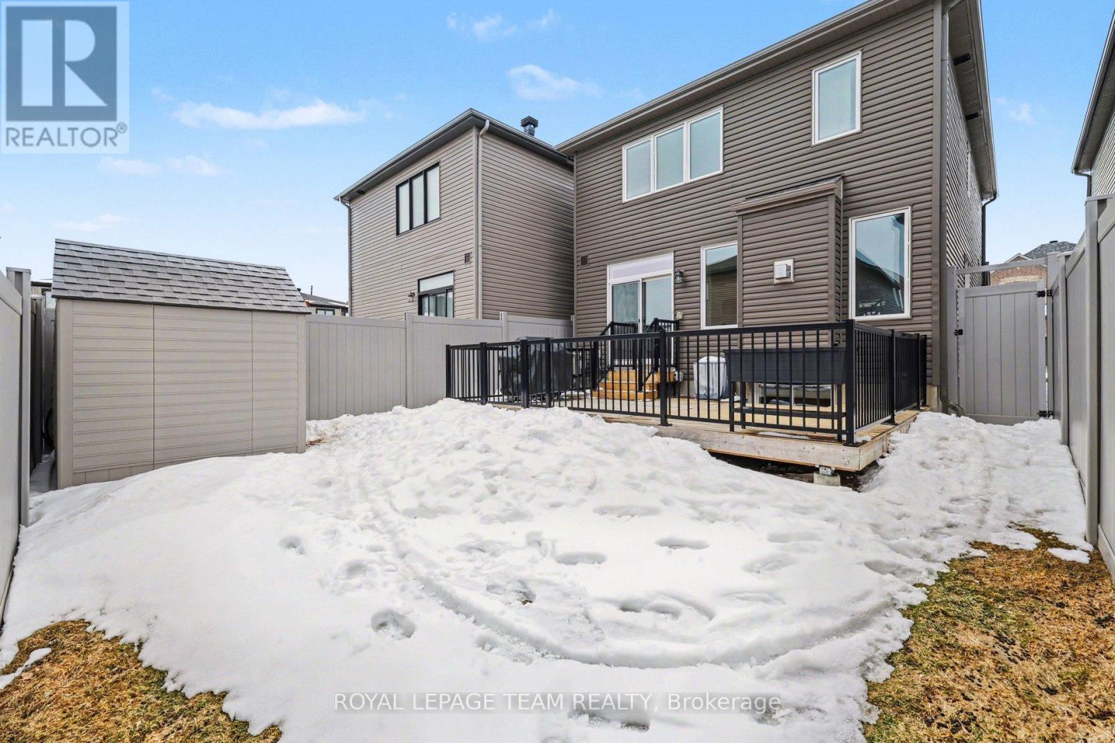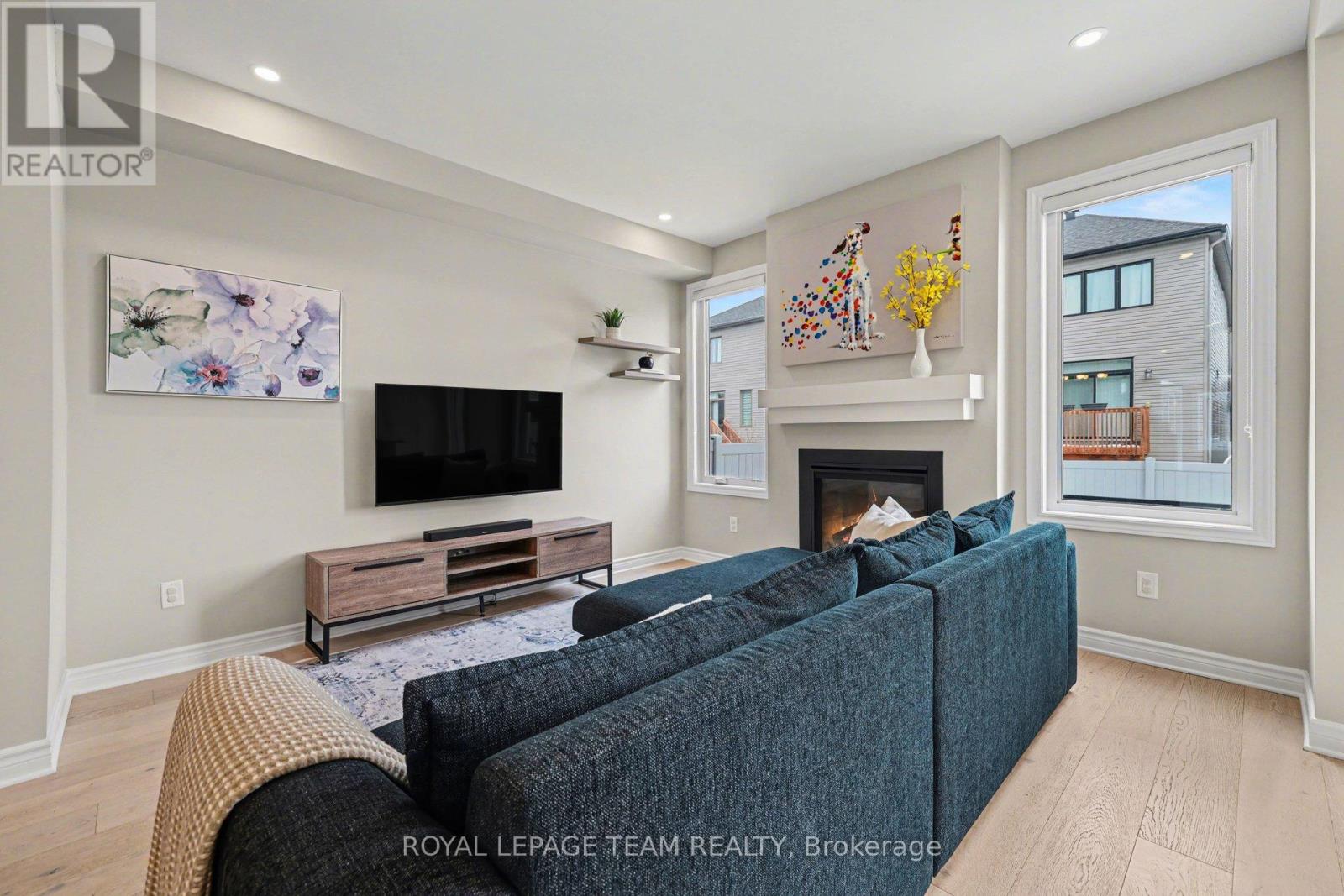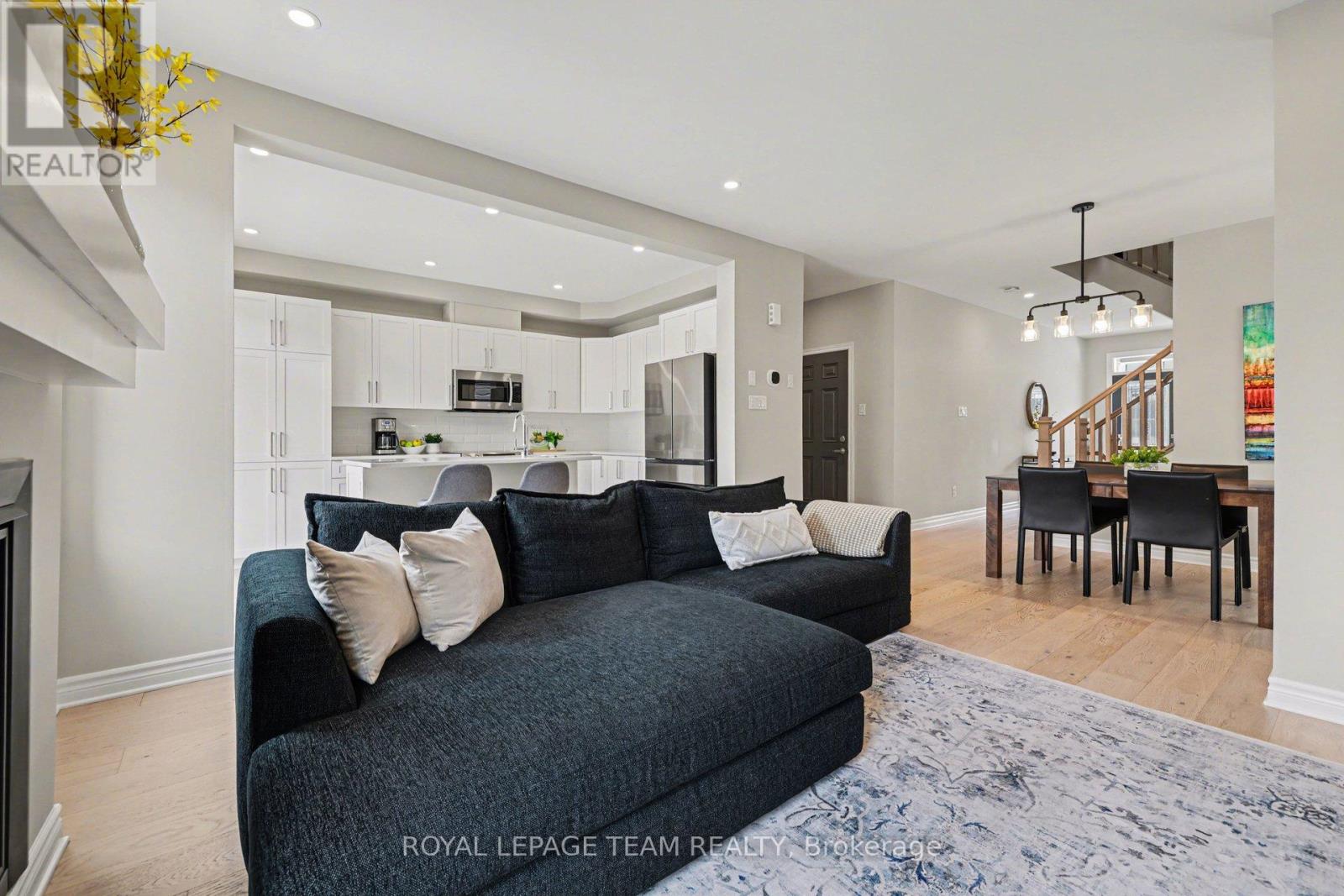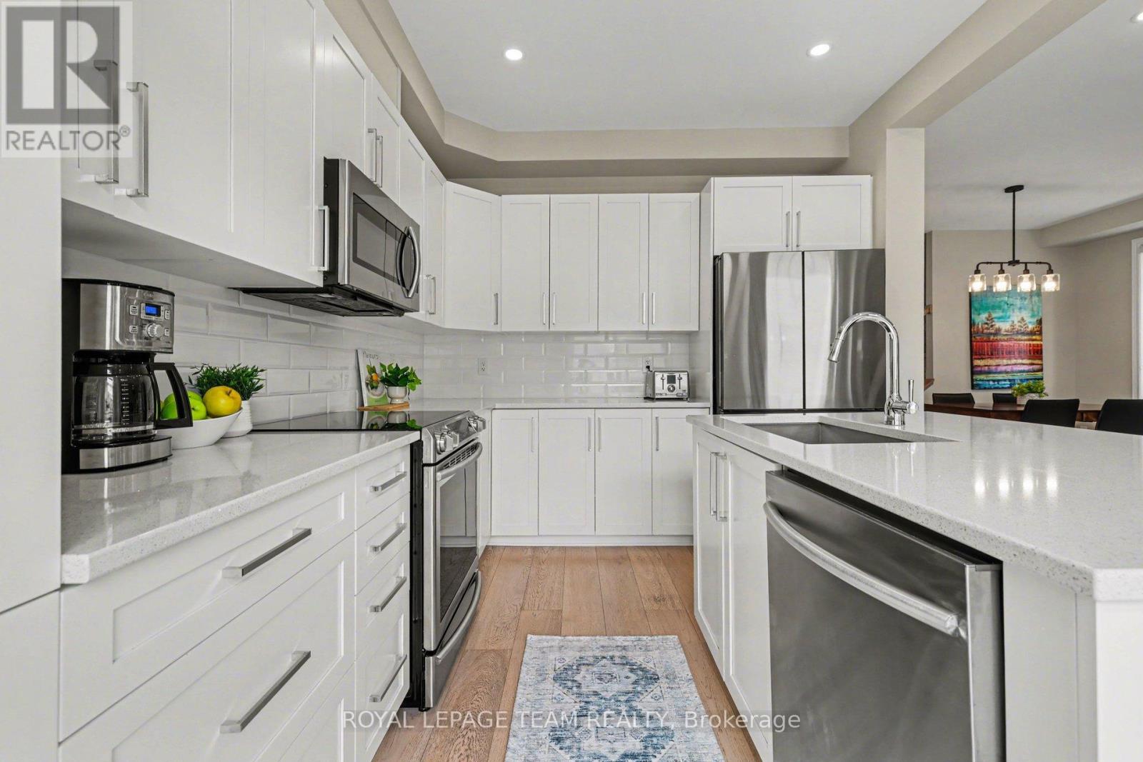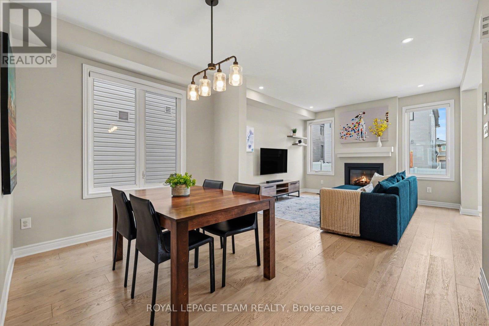 Offering the ideal blend of style and walkability, this impeccable 3 bedroom 4 bathroom home is situated on a popular family friendly street. Located walking distance to shops, restaurants, Farm Boy, Starbucks, parks, trails, schools and amenities & close proximity to Hwy 417. The main level features a sun filled open concept living and dining room with wide-plank engineered hardwood floors, pot lighting, custom roller shades and gas fireplace. Chef's will delight in this bright kitchen with stainless steel appliances, generous pantry, large island with oversize sink & breakfast bar. A walk-in closet and powder room complete this level. The second level features a spacious primary bedroom with walk in closet & 3-piece ensuite, 2 additional good sized bedrooms, main bathroom & convenient laundry room. The finished basement (2023) provides additional living space, including a family room with pot lighting, an electric fireplace, a 3-piece bathroom, and a flex space currently used as an exercise room. The exterior is perfect for entertaining, featuring a fully fenced backyard with a spacious cedar deck (2020). For added convenience, the property includes an irrigation system, a natural gas BBQ hookup, a garden shed, and a garage wired for an EV charger. (id:28469)