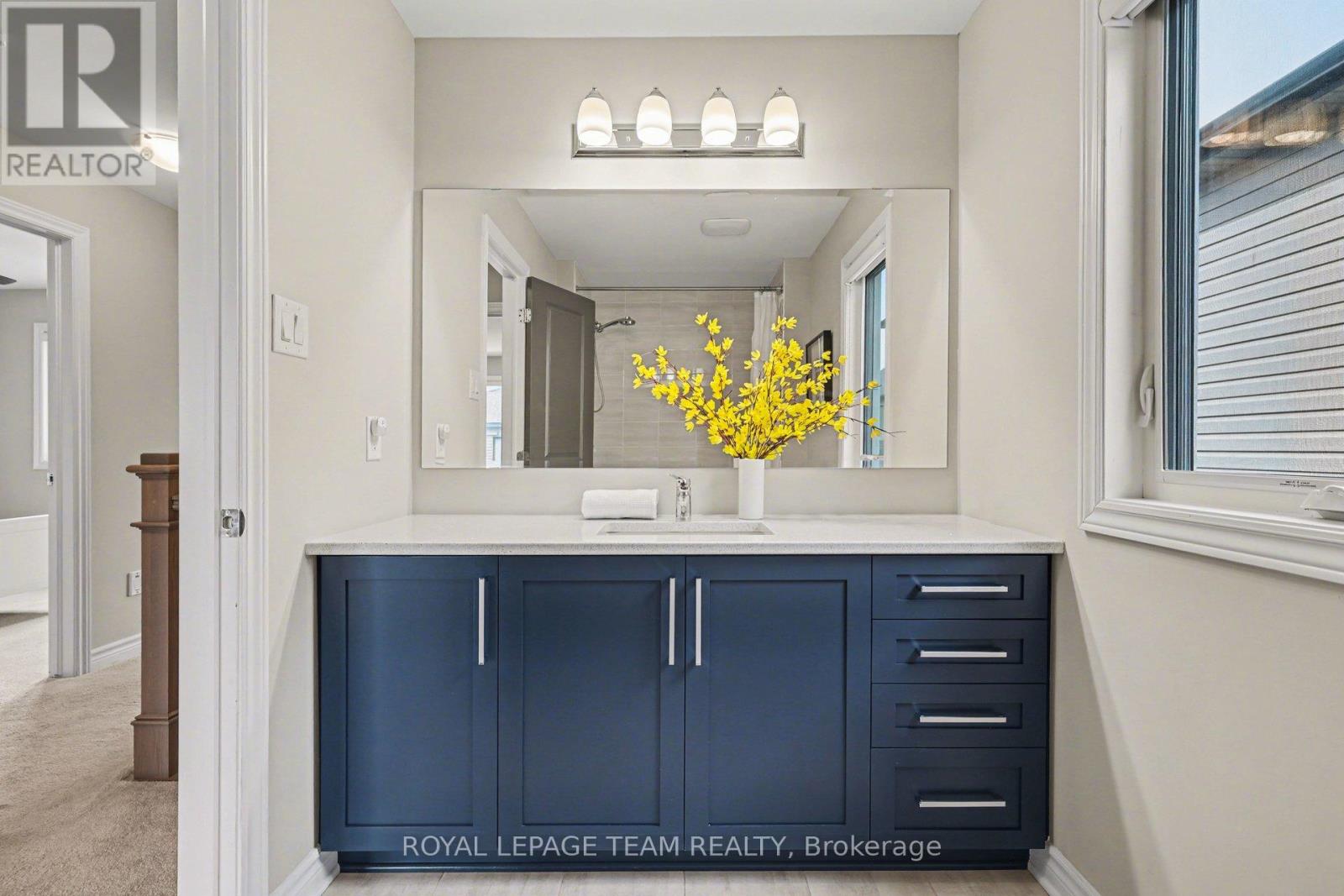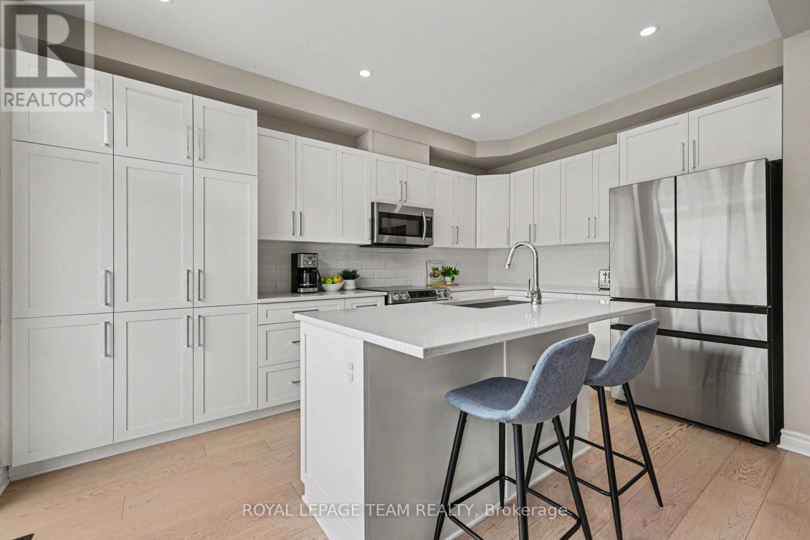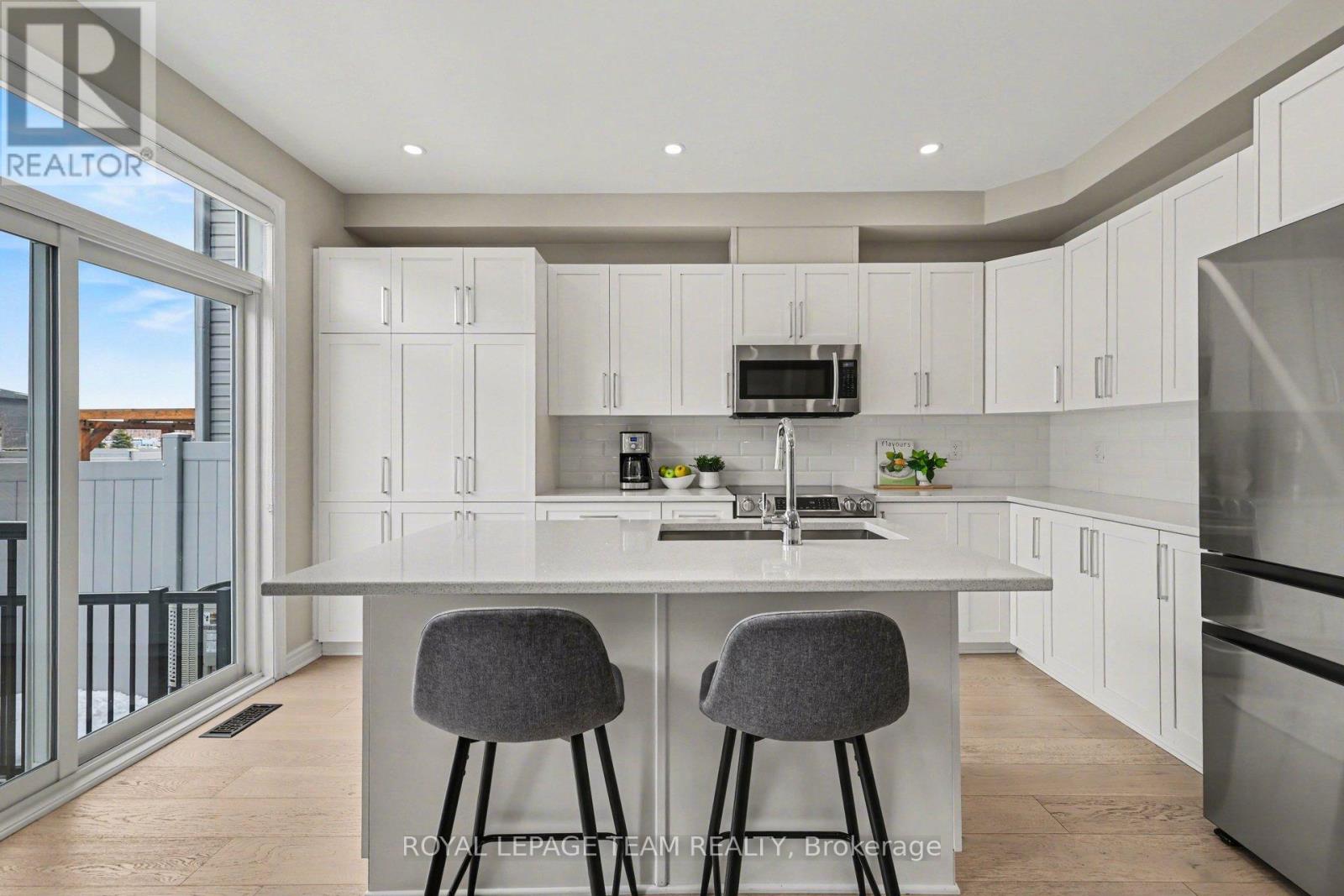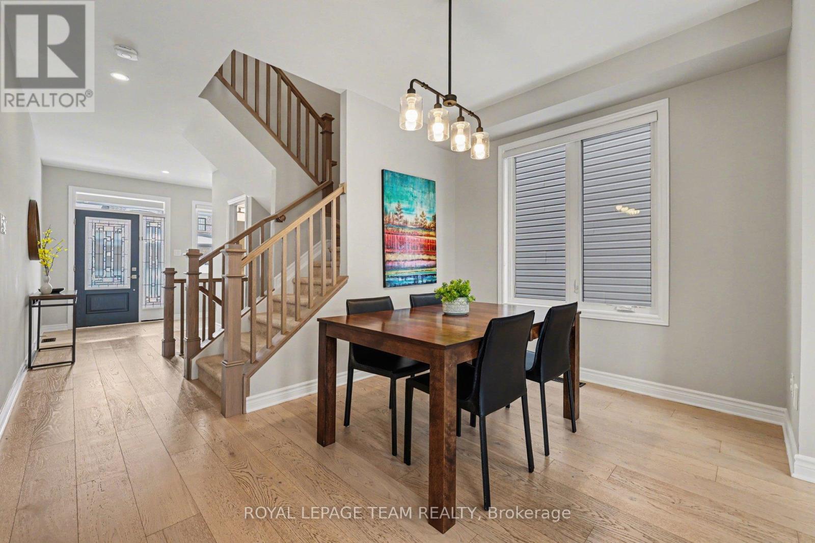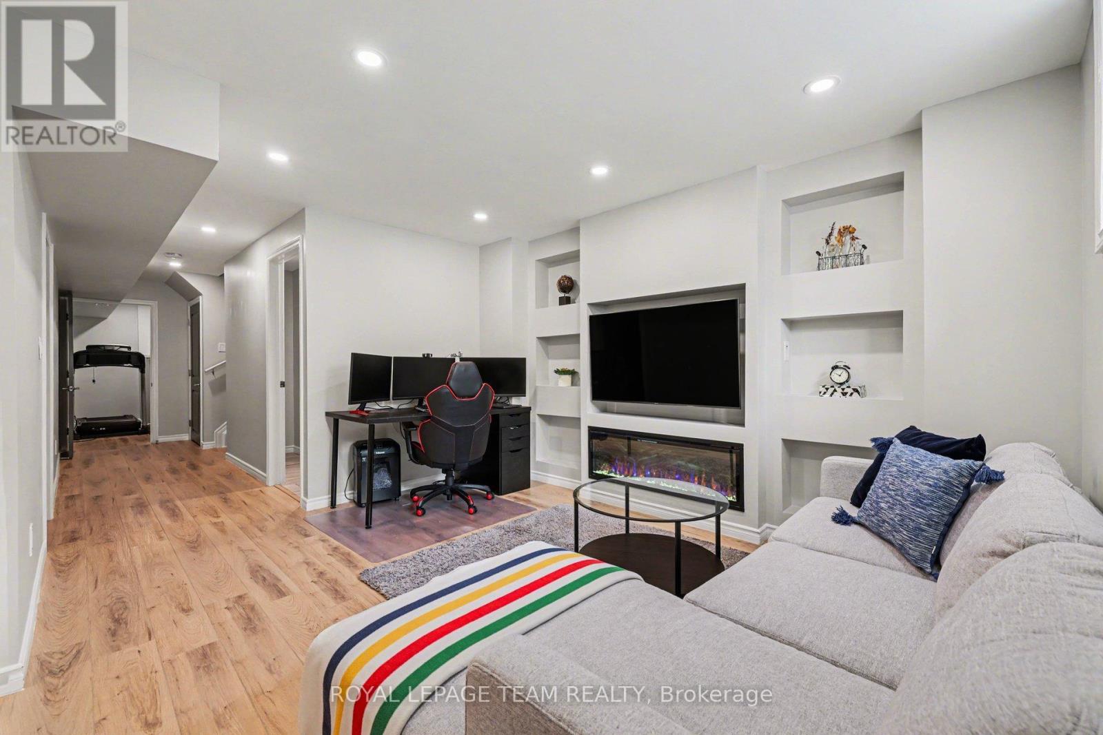 Offering the ideal blend of style and walkability, this impeccable 3 bedroom 4 bathroom home is situated on a popular family friendly street. Located walking distance to shops, restaurants, Farm Boy, Starbucks, parks, trails, schools and amenities & close proximity to Hwy 417. The main level features a sun filled open concept living and dining room with wide-plank engineered hardwood floors, pot lighting, custom roller shades and gas fireplace. Chef's will delight in this bright kitchen with stainless steel appliances, generous pantry, large island with oversize sink & breakfast bar. A walk-in closet and powder room complete this level. The second level features a spacious primary bedroom with walk in closet & 3-piece ensuite, 2 additional good sized bedrooms, main bathroom & convenient laundry room. The finished basement (2023) provides additional living space, including a family room with pot lighting, an electric fireplace, a 3-piece bathroom, and a flex space currently used as an exercise room. The exterior is perfect for entertaining, featuring a fully fenced backyard with a spacious cedar deck (2020). For added convenience, the property includes an irrigation system, a natural gas BBQ hookup, a garden shed, and a garage wired for an EV charger. (id:28469)
