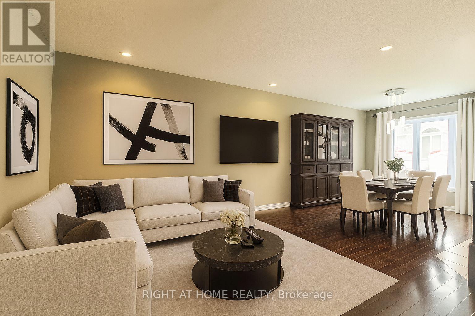 Welcome to the Minto Manhattan model, a benchmark in townhome design that defined luxury living in the early 2000s and remains highly sought after today. Known for its enduring layout and proportions, this residence delivers a balanced blend of functionality, comfort, and timeless appeal.This well-appointed home offers 3 bedrooms, 2.5 bathrooms, and a single-car garage, with an open-concept main floor designed for both everyday living and entertaining. Hardwood flooring and railings anchor the space, with clear sightlines connecting the living, dining, and kitchen areas. The kitchen is thoughtfully laid out with a central island, upgraded backsplash, stainless steel appliances, and a dedicated breakfast area.The fully finished basement with fireplace is efficiently planned with no wasted space and enhanced by look-out windows, making it ideal for a family room, home office, or gym. Upstairs, the primary suite features a generous walk-in closet and a well-sized ensuite with a deep soaker tub and separate stand-up shower.Located in the heart of Barrhaven, this home sits within a quiet, family-oriented community surrounded by parks, schools, shopping, and transit-offering both convenience and long-term livability. Photos are virtually staged. (id:28469)