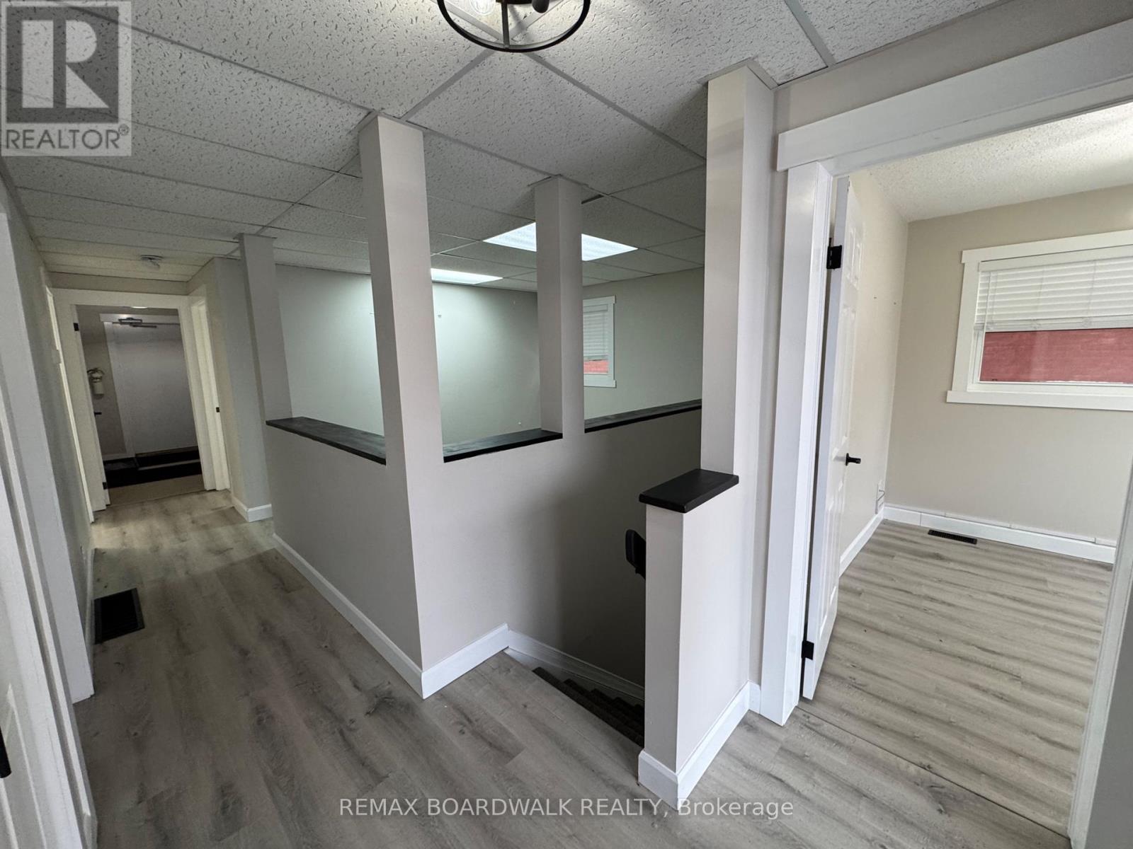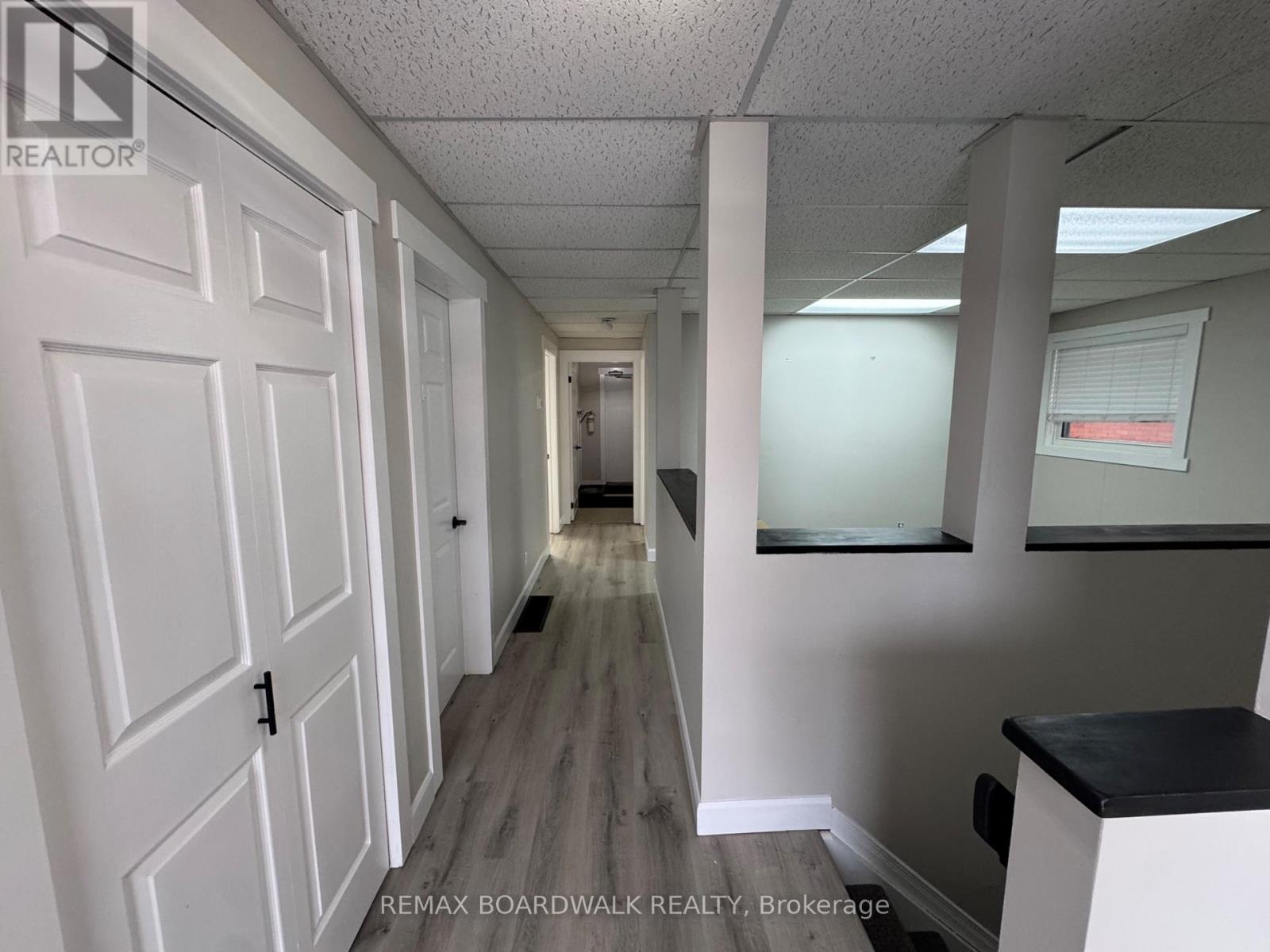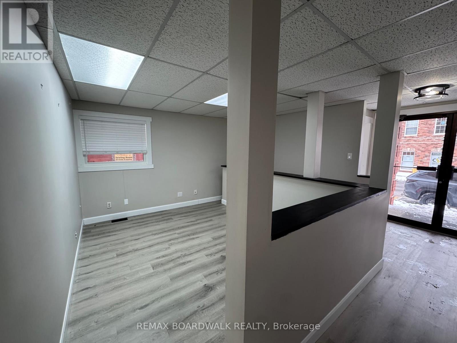 Sublease opportunity! Well-maintained and recently updated office/retail space located in the heart of Downtown Kemptville. The unit features new flooring and fresh paint throughout. The main level offers five private office spaces and a dedicated storage room, while the basement provides additional storage, two bathrooms, and a kitchenette. Two parking spaces are included and conveniently located behind the building. Rent includes water/sewer, gas, snow removal, and general maintenance. Tenant is responsible for hydro. (id:28469)