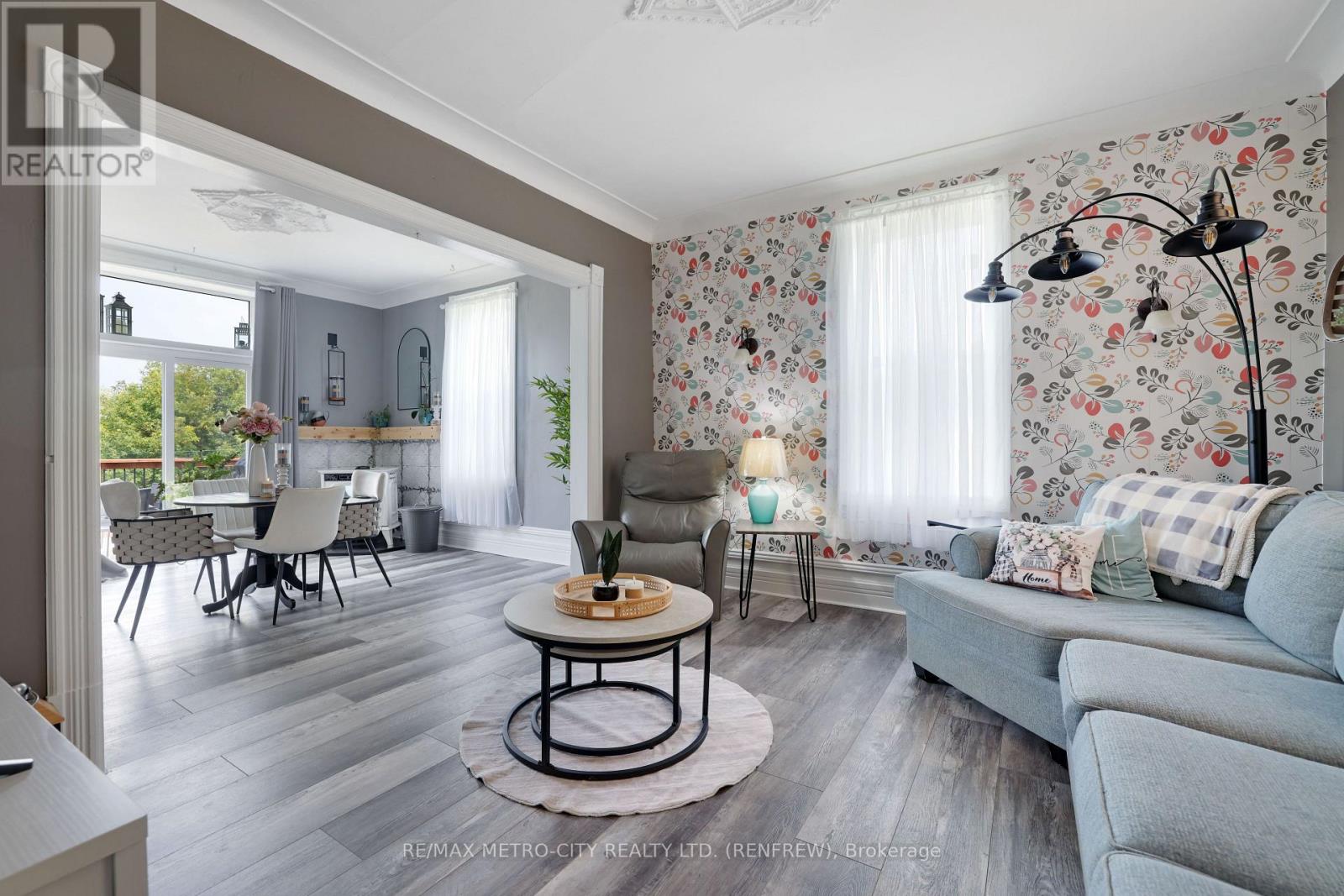 Captivating Renovated Farmhouse on 31 Acres at Renfrew's Edge !!! Discover the timeless charm of this traditional three-storey farmhouse, exquisitely transformed into a modern haven, set on an expansive 31-acre lot at the edge of Renfrew. This stunning property combines classic architecture with contemporary living conveniences, ensuring a refined rural lifestyle. Step onto the inviting covered front porch and enter a warm main floor featuring a gourmet kitchen with a central island, perfect for culinary creations and family gatherings. Enjoy the practicality of a main floor laundry room, alongside a cozy living room and elegant dining area. From the dining room, access the spacious rear deck that offers panoramic views over the sprawling acreage and serene pond, a perfect setting for outdoor entertainment. The second floor hosts three generously-sized bedrooms and a den that currently serves as a walk-in closet, along with a charming covered porch. A well-appointed 4-piece bath adds to the home's comfort. The third floor presents three partially finished rooms, offering a versatile space for further development. Imagine a home office, studio, or guest retreat. Updated within the past seven years, the home features efficient propane forced air heat and central air conditioning for year-round comfort. Nature enthusiasts will appreciate the property's proximity to the K&P Recreational Trail, providing endless opportunities to explore the scenic beauty of Renfrew County. Additionally, there is potential to sever two extra lots on the property's east end, accessible from McLaren Rd, paving the way for future growth or investment. Seize the opportunity to own this exceptional countryside escape that combines modern luxury with much added potential. Schedule your viewing today and envision the lifestyle awaiting you at this unique Renfrew home. (id:28469)