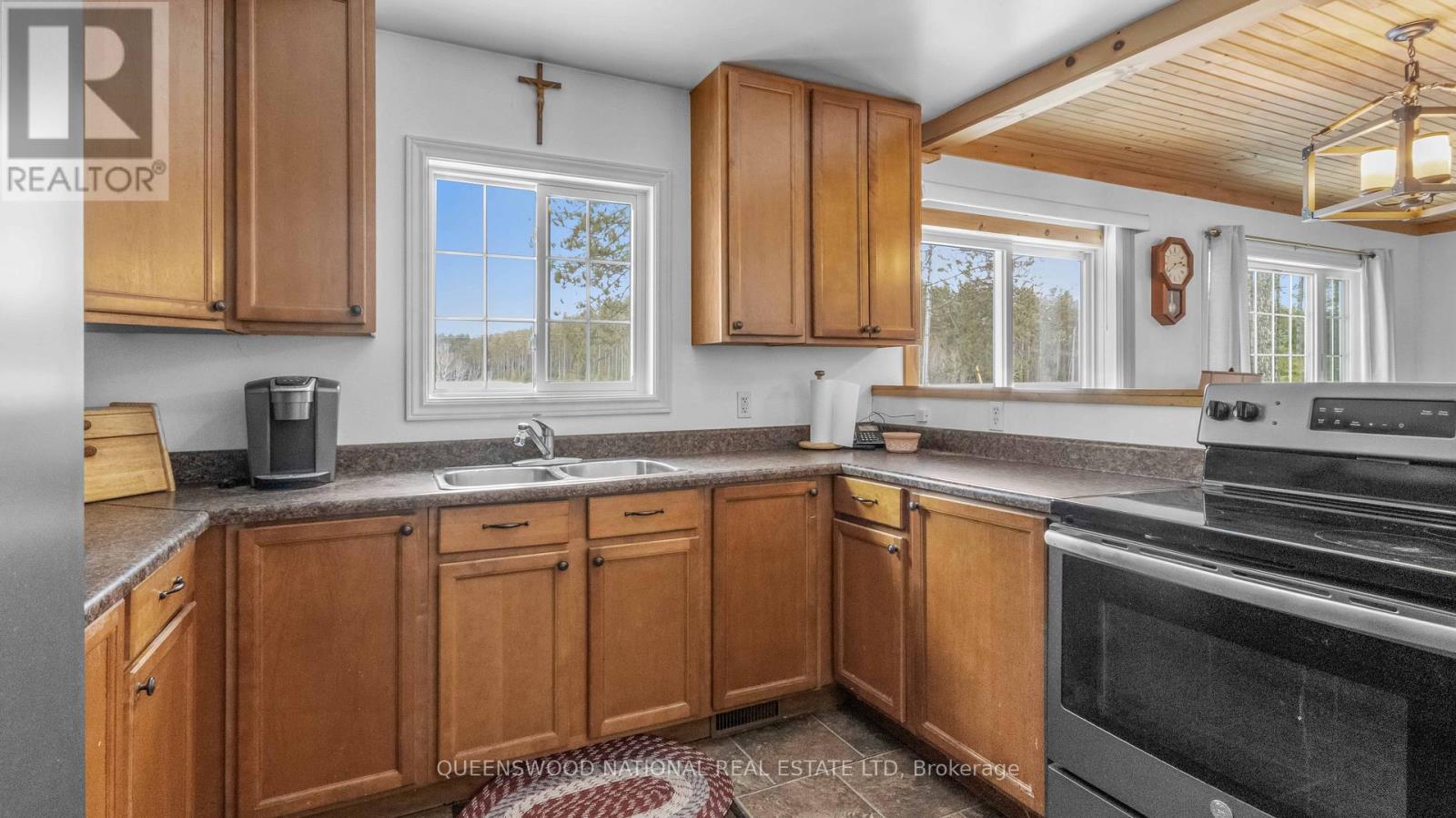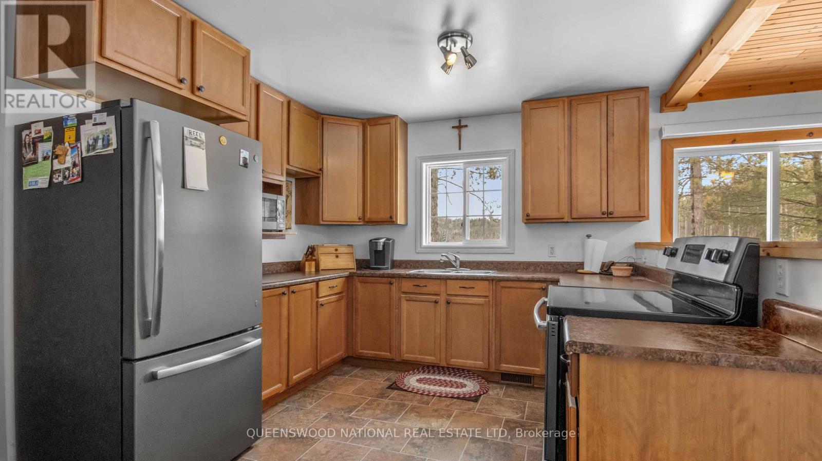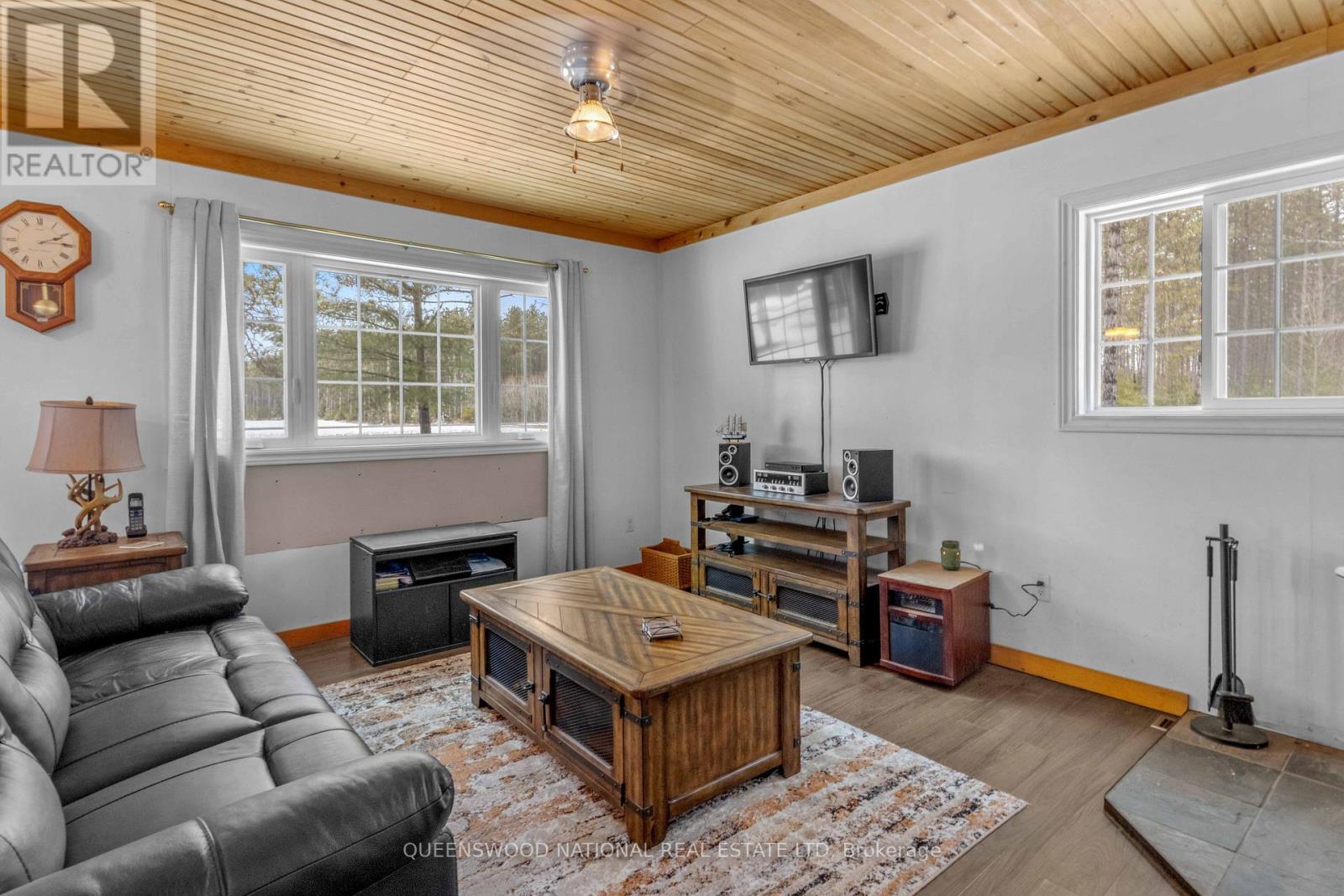 Home At Last: Your Upgraded Country Bungalow: Inhale the intoxicating fresh scent of majestic tall pines and step into a life of effortless comfort on this lush, level one-acre sanctuary. Nestled between Palmer Rapids and Quadeville, this two-bedroom, one-bathroom bungalow is a hidden gem where your only neighbours are the wild turkeys in the farm fields, deer in the morning light, and a chorus of songbirds. This land is a canvas for vibrant connection: picture starlit stories with family and friends around a roaring firepit, afternoons tending a sprawling garden, and building memories to last a lifetime.The residence underwent a stunning 2025 transformation, blending rugged endurance with high-quality upgrades. Wrapped in high-end Maibec CanExel siding with a fresh roof, the exterior is as tough as it is beautiful. Inside, the open-concept layout is drenched in natural light from the near-total replacement of windows and doors. The kitchen is a standout, featuring towering full-height cabinets, a new fridge and stove, and peaceful views over the farm fields. In the backyard, the view shifts to the deep, tranquil forest. Whether you're warming up by the crackling woodstove or using the new propane furnace and central air, you'll be perfectly cozy year-round.Adventure is at your doorstep. Launch your ATV or snowmobile directly onto regional trails, or explore the legendary Madawaska River and the endless boating and fishing across many nearby lakes. A ShelterLogic is included to house your toys. Downstairs, the high-ceilinged basement is a rock-solid space. Fully insulated with Armour Shield technology and boasting a separate entrance, it is primed to become a sprawling family room, hobby studio, or guest suite. This is a rare, move-in-ready property that offers the peace you've been searching for. It's bringing you home at last. (id:28469)