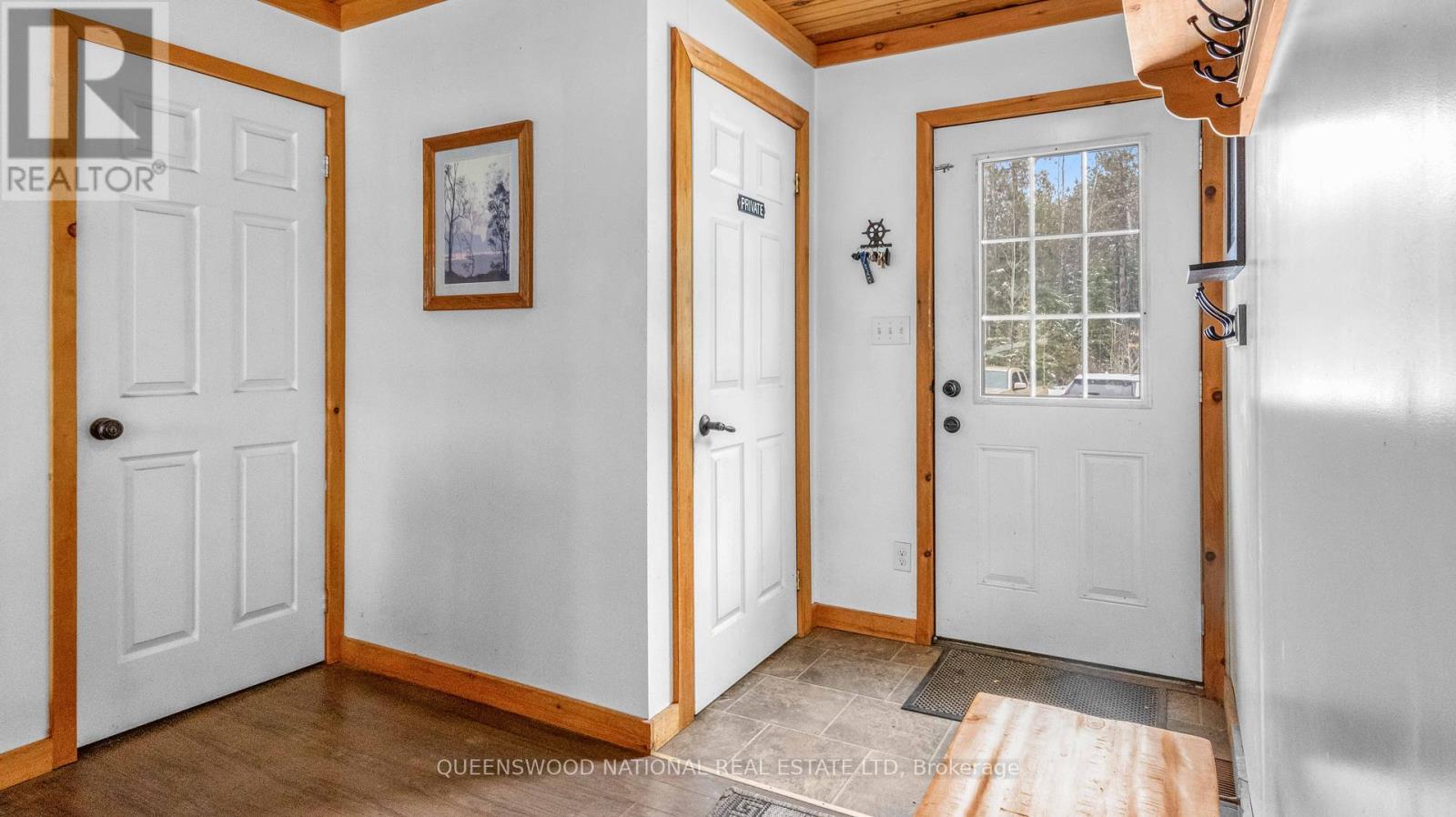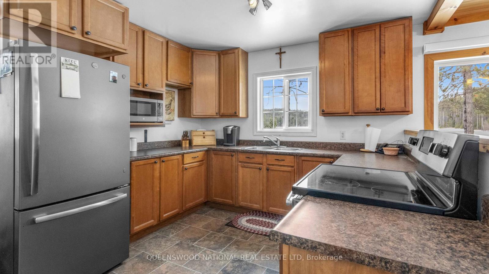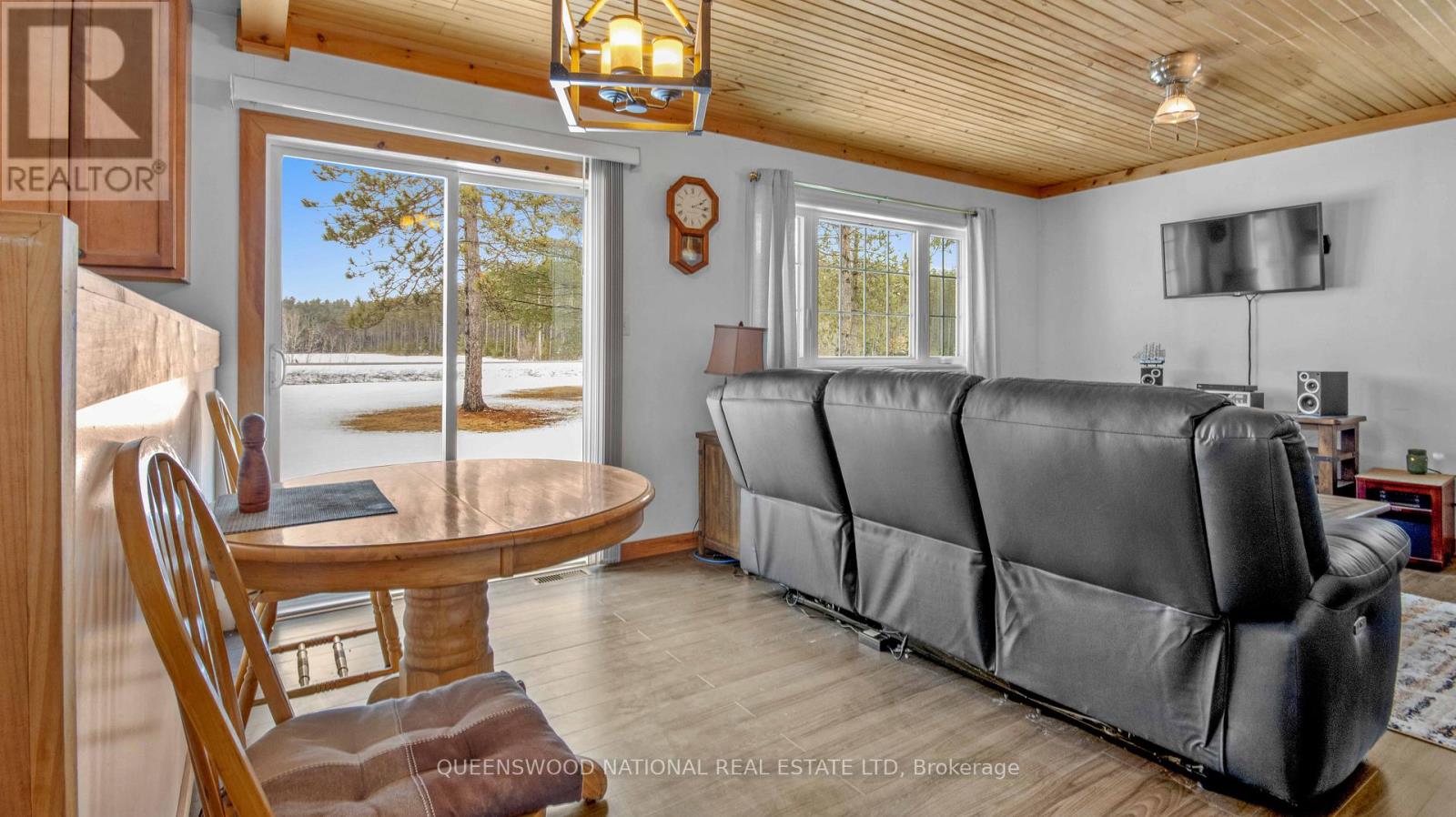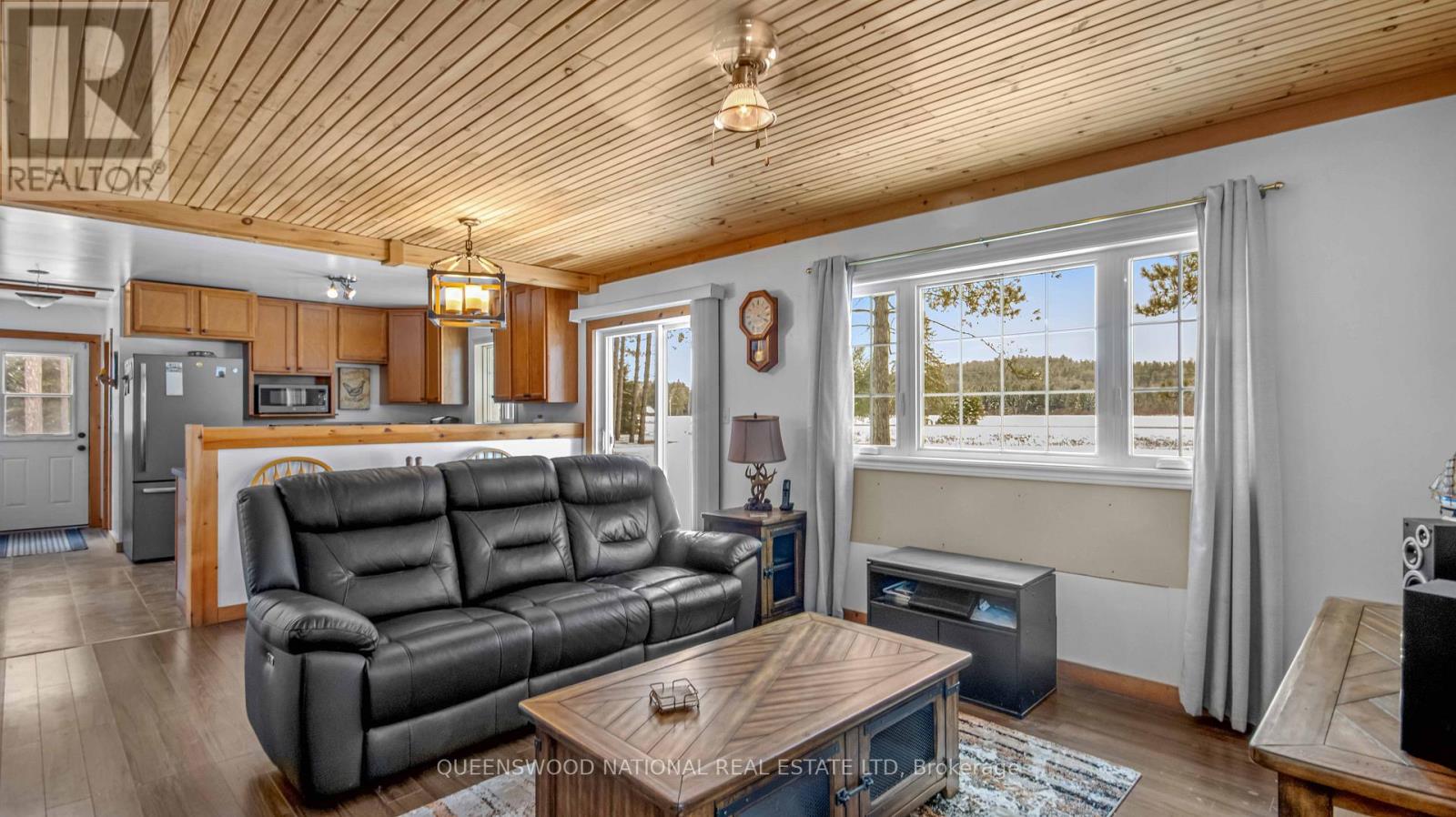 Home At Last: Your Upgraded Country Bungalow: Inhale the intoxicating fresh scent of majestic tall pines and step into a life of effortless comfort on this lush, level one-acre sanctuary. Nestled between Palmer Rapids and Quadeville, this two-bedroom, one-bathroom bungalow is a hidden gem where your only neighbours are the wild turkeys in the farm fields, deer in the morning light, and a chorus of songbirds. This land is a canvas for vibrant connection: picture starlit stories with family and friends around a roaring firepit, afternoons tending a sprawling garden, and building memories to last a lifetime.The residence underwent a stunning 2025 transformation, blending rugged endurance with high-quality upgrades. Wrapped in high-end Maibec CanExel siding with a fresh roof, the exterior is as tough as it is beautiful. Inside, the open-concept layout is drenched in natural light from the near-total replacement of windows and doors. The kitchen is a standout, featuring towering full-height cabinets, a new fridge and stove, and peaceful views over the farm fields. In the backyard, the view shifts to the deep, tranquil forest. Whether you're warming up by the crackling woodstove or using the new propane furnace and central air, you'll be perfectly cozy year-round.Adventure is at your doorstep. Launch your ATV or snowmobile directly onto regional trails, or explore the legendary Madawaska River and the endless boating and fishing across many nearby lakes. A ShelterLogic is included to house your toys. Downstairs, the high-ceilinged basement is a rock-solid space. Fully insulated with Armour Shield technology and boasting a separate entrance, it is primed to become a sprawling family room, hobby studio, or guest suite. This is a rare, move-in-ready property that offers the peace you've been searching for. It's bringing you home at last. (id:28469)