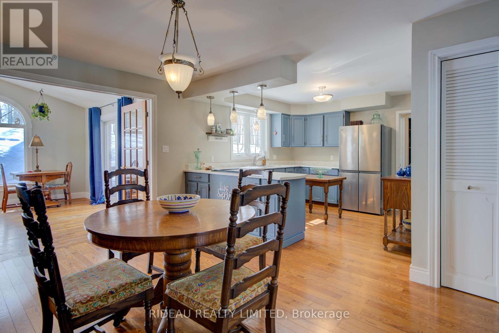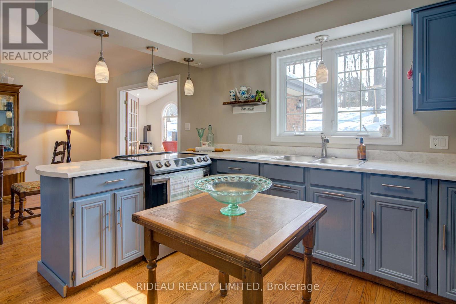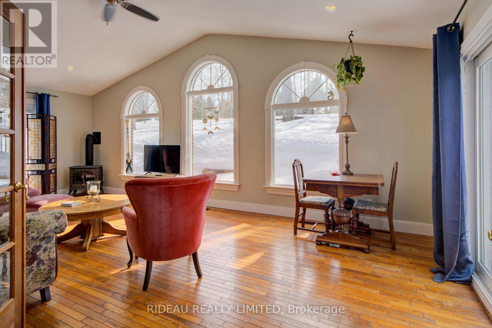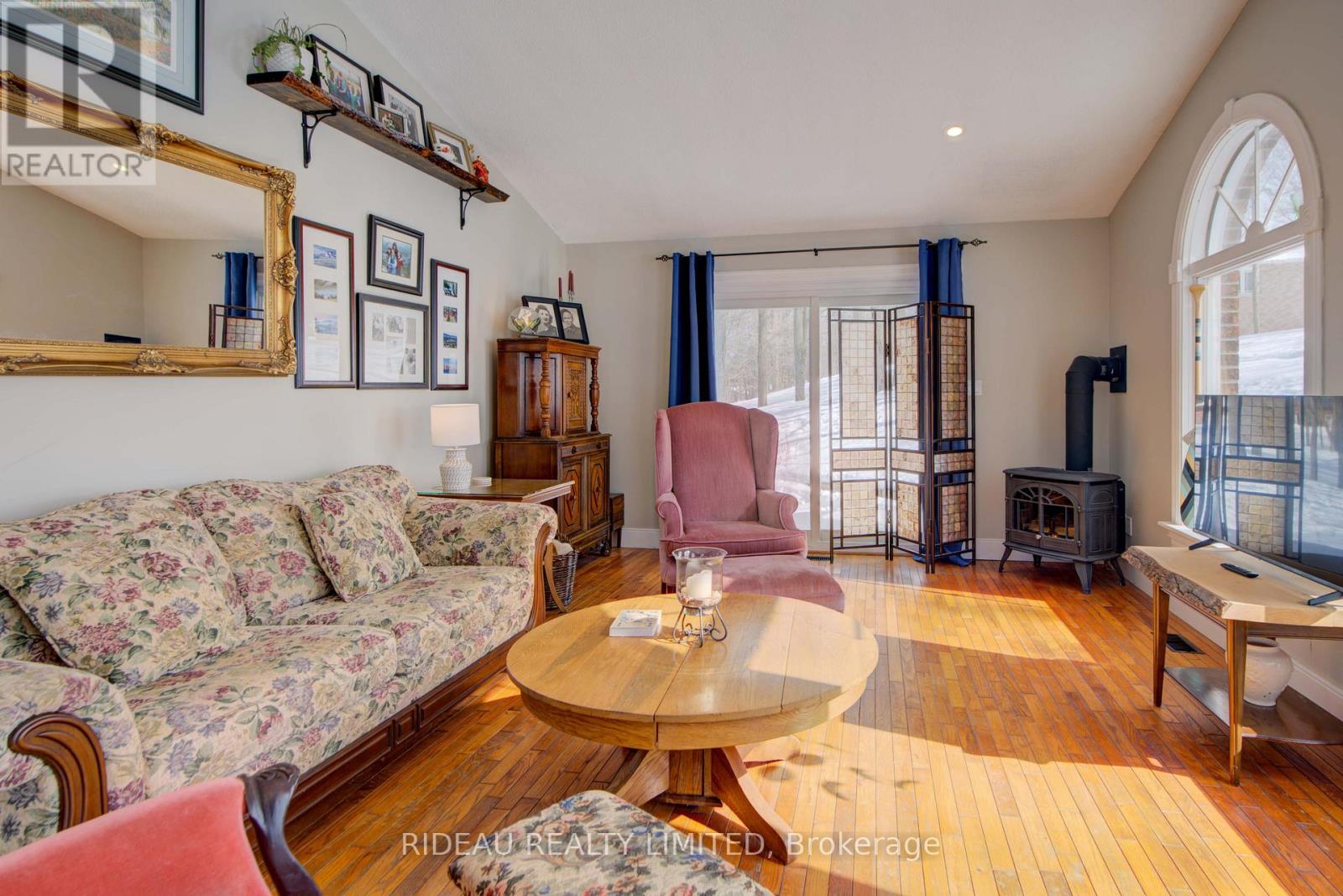 Welcome to 1445 Rickards Road. Homes like this don't come around often. Set on just under an acre of beautifully treed land, this rambling ranch-style bungalow offers approximately 1924 sq ft of main-floor living space, plus a bright finished basement, delivering the perfect blend of comfort, space, and functionality. Thoughtfully designed, the home features three spacious bedrooms and two full bathrooms. The inviting living room is filled with natural light from a beautiful bay window and anchored by a cozy wood-burning fireplace, creating a warm and welcoming space to unwind. It flows seamlessly into the kitchen and dining area, offering an effortless layout for everyday living and entertaining.The kitchen showcases refinished oak cabinetry (2023) and stainless steel appliances. At the back of the home, the family room truly stands out. Vaulted ceilings and floor-to-ceiling windows flood the space with natural light, while a propane fireplace adds warmth and character... a space designed for quiet mornings, relaxed evenings, and everything in between. The finished basement provides approximately 1747ft of additional bright and versatile space, ideal for a family room, home office, gym, or guest retreat. Outside, the two-car attached garage and garden shed provide practical storage and convenience. Surrounded by mature maple trees, the property offers privacy, shade, and a peaceful country setting that feels like a true escape. Ideally located between Inverary and Sydenham on a quiet dead-end road, it delivers the serenity of rural living while remaining just 15 minutes to Kingston and Highway 401. If you've been dreaming of leaving the hustle behind without sacrificing convenience and a home with space, warmth, and a peaceful setting... This is a property that feels right from the moment you arrive. (id:28469)