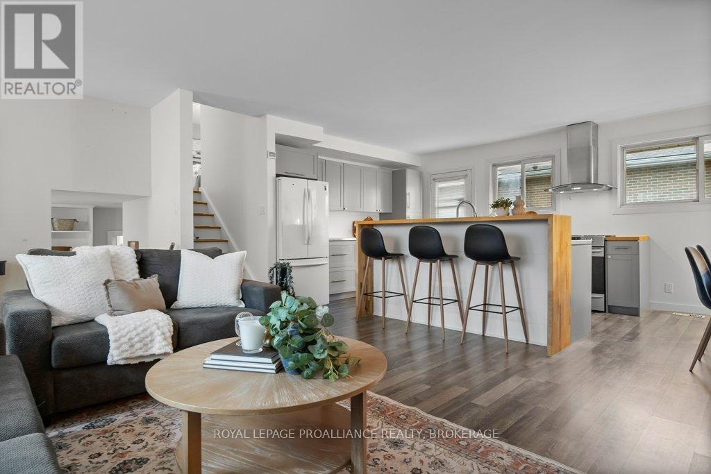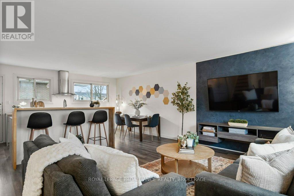 This spacious 4 bedroom, 2 bathroom side-split offers a practical layout and great functionality for everyday living. The main level features an open concept design with an updated kitchen that flows into the living and dining areas, creating a comfortable and connected space. There is also a partially finished basement, providing additional room for storage, recreation, or future customization. A durable steel roof adds long term value and peace of mind. One of the standout features of this property is the oversized double car garage with 11 foot ceilings - ideal for hobbyists, automotive work, or boat storage. Conveniently located with quick access to Highway 401, CFB Kingston, and downtown Kingston this home presents a solid opportunity for buyers seeking space, functionality, and value. Central Air Conditioning and appliances are included. (id:28469)
