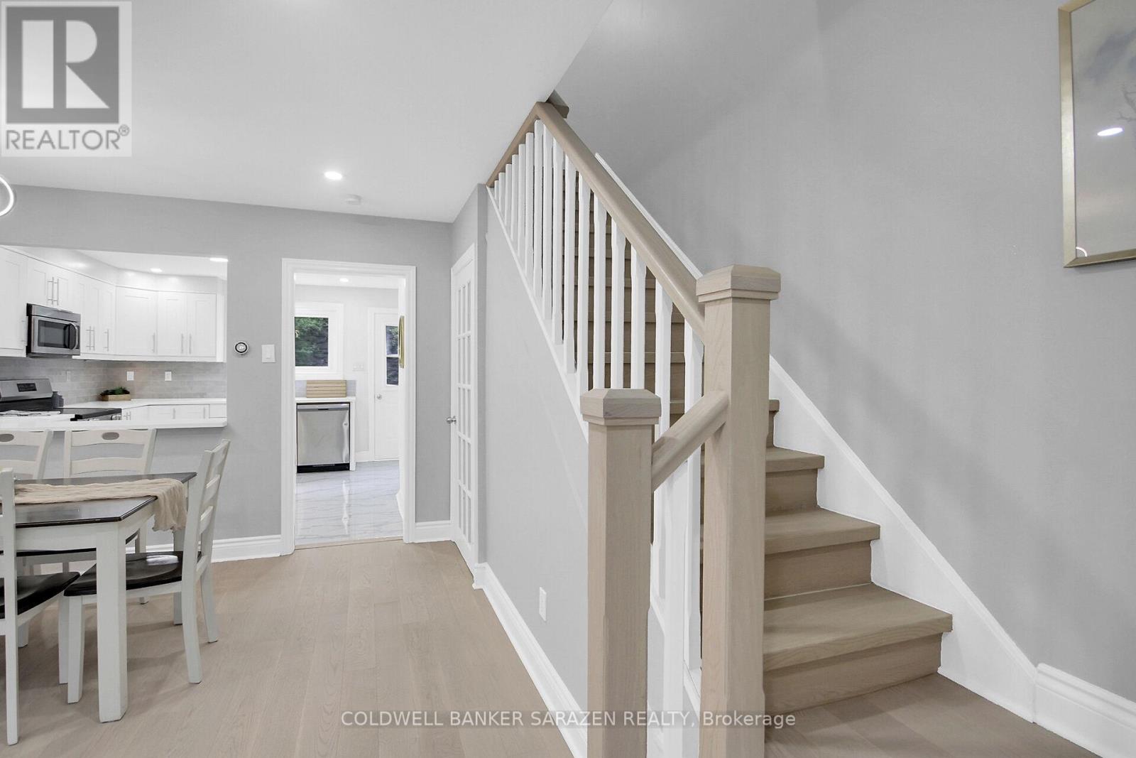 This completely renovated townhome offers modern comfort and style across all levels including a fully finished basement. From top to bottom, no detail has been overlooked. The main floor features a bright, open-concept living and dining area with gleaming new hardwood floors. The stylish kitchen is a chefs delight, boasting refinished cabinetry, brand new quartz countertops, a new backsplash, new ceramic tile flooring, and brand new appliances. Elegant hardwood stairs lead to both the second floor and the basement. Upstairs, you'll find three generously sized bedrooms and a fully updated bathroom with new ceramic tile and a sleek, modern vanity. The lower level offers a spacious, newly finished recreation room with durable new laminate flooring -- ideal as a media room, home office, gym, or play area. Plenty of new recessed lighting throughout adds warmth and style, along with many other thoughtful upgrades. Step outside to enjoy a private back deck -- perfect for summer evenings and two convenient outdoor parking spaces. Located just minutes from downtown, with easy access to Hwy 417, and close to parks, shops, and cafes, this move-in ready home delivers the perfect blend of location, comfort, and lifestyle style. (id:28469)