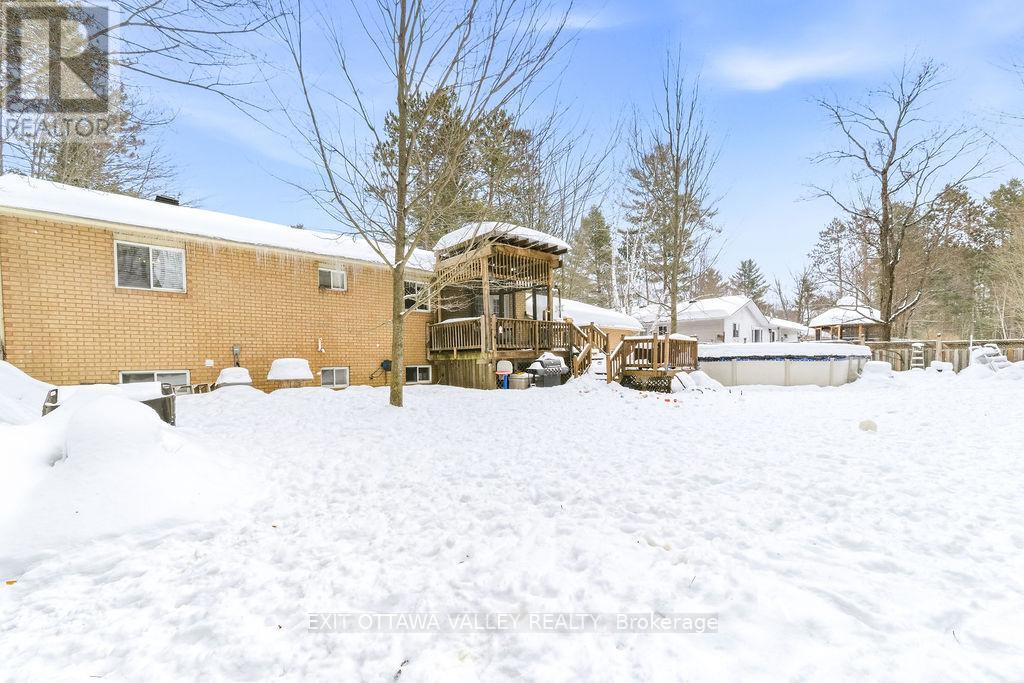 Welcome to 16 Heritage Drive - a turnkey family home nestled in a highly sought-after, family-friendly neighbourhood. The bright, newly renovated kitchen features stainless steel appliances and modern finishes, flowing seamlessly into the dining room and spacious living room. Patio doors fill the space with natural light and provide direct access to the deck and backyard making entertaining effortless. The main level also offers a full bathroom with a jetted tub and three well-appointed bedrooms, including a generous primary suite complete with it's own private ensuite. The fully finished lower level expands your living space with a large family room, perfect for cozy movie nights or a dedicated play area for the kids. This level also includes an oversized fourth bedroom, a convenient three-piece bathroom, and the laundry room. Step outside to enjoy the private backyard surrounded by mature trees and fully fenced for peace of mind. Whether you're relaxing on the deck or cooling off in the above-ground pool, this outdoor space is designed for making lasting memories. Additional highlights include an in-ground sprinkler system in the front yard, paved driveway, and double-car garage with ample storage. Conveniently located just a short commute to CFB Petawawa, this home checks all the boxes for growing families and professionals alike. (id:28469)