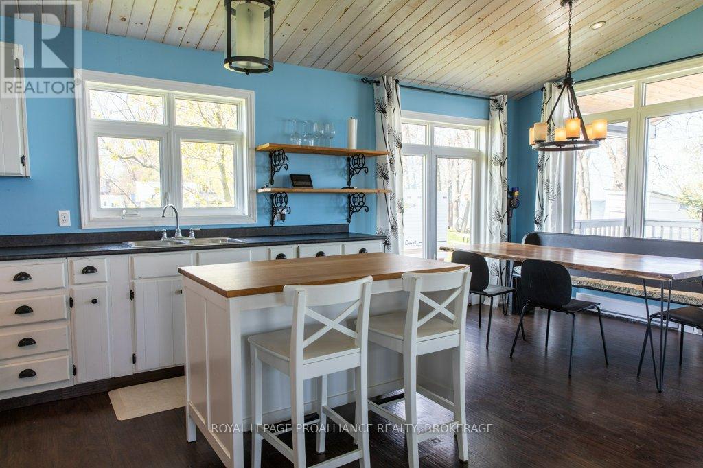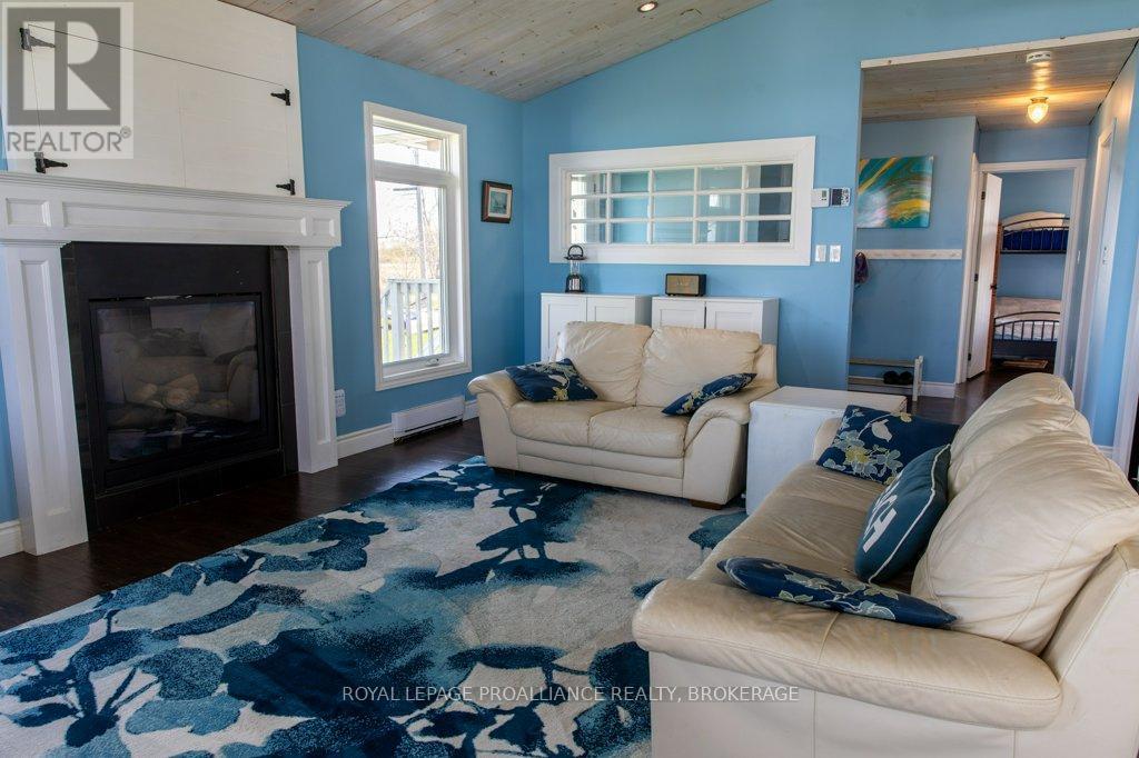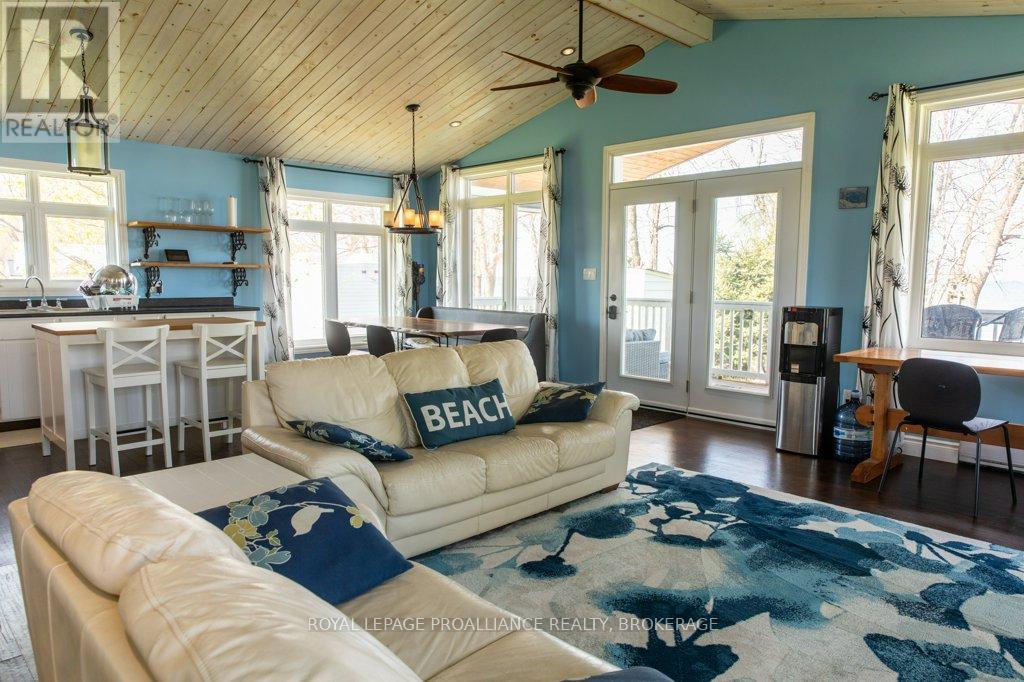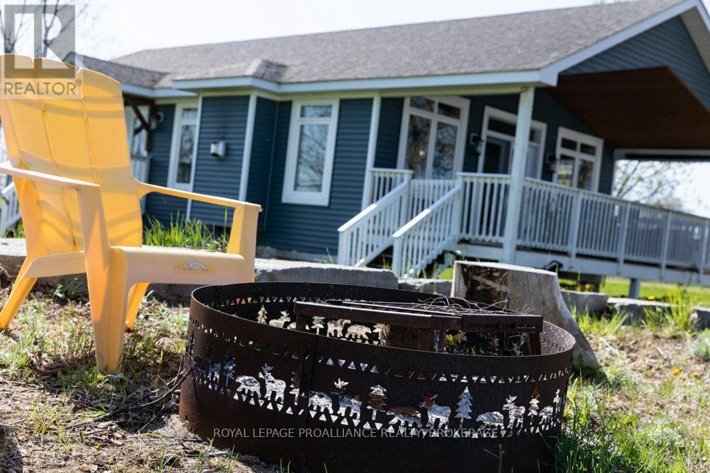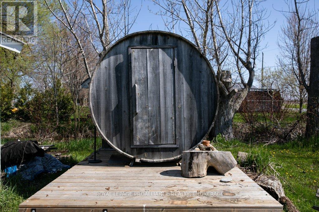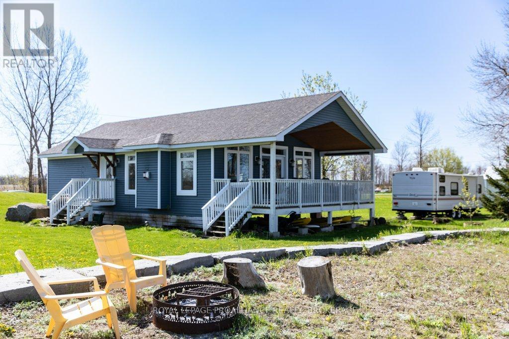 Amazing waterfront home or seasonal retreat, located on the western end of Wolfe Island, where Lake Ontario meets the St. Lawrence River. Enjoy the sun rising over the peaceful countryside and breathtaking sunsets over Reeds Bay from this low maintenance turn key bungalow. This homes main floor offers an open concept kitchen, dining, living with propane fireplace, which leads out to a spacious covered front deck, two good sized bedrooms and a full bath with laundry and plenty of storage. Outside there is a bunkie for extra sleeping for guests, a shed for garden tools and a sauna! The well-kept grounds lead you to clean natural rock shoreline, where you'll find the easy access, which provides excellent swimming, Kayaking, boating and fishing. All this within a 10 minute drive to Marysville and a short walk to Big Sandy Bay. Its time to pack your bags, to start making new memories with friends and family, see how wonderful Island life and residents are and make your move before the summer starts! (id:28469)