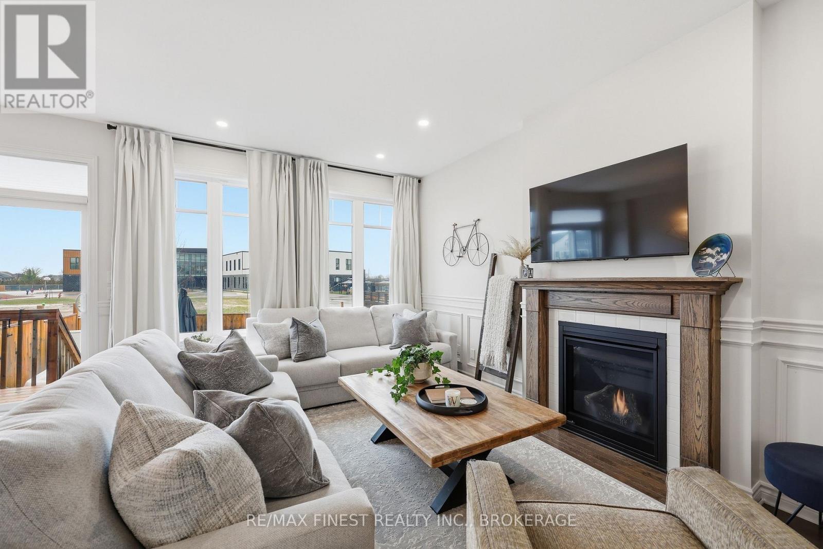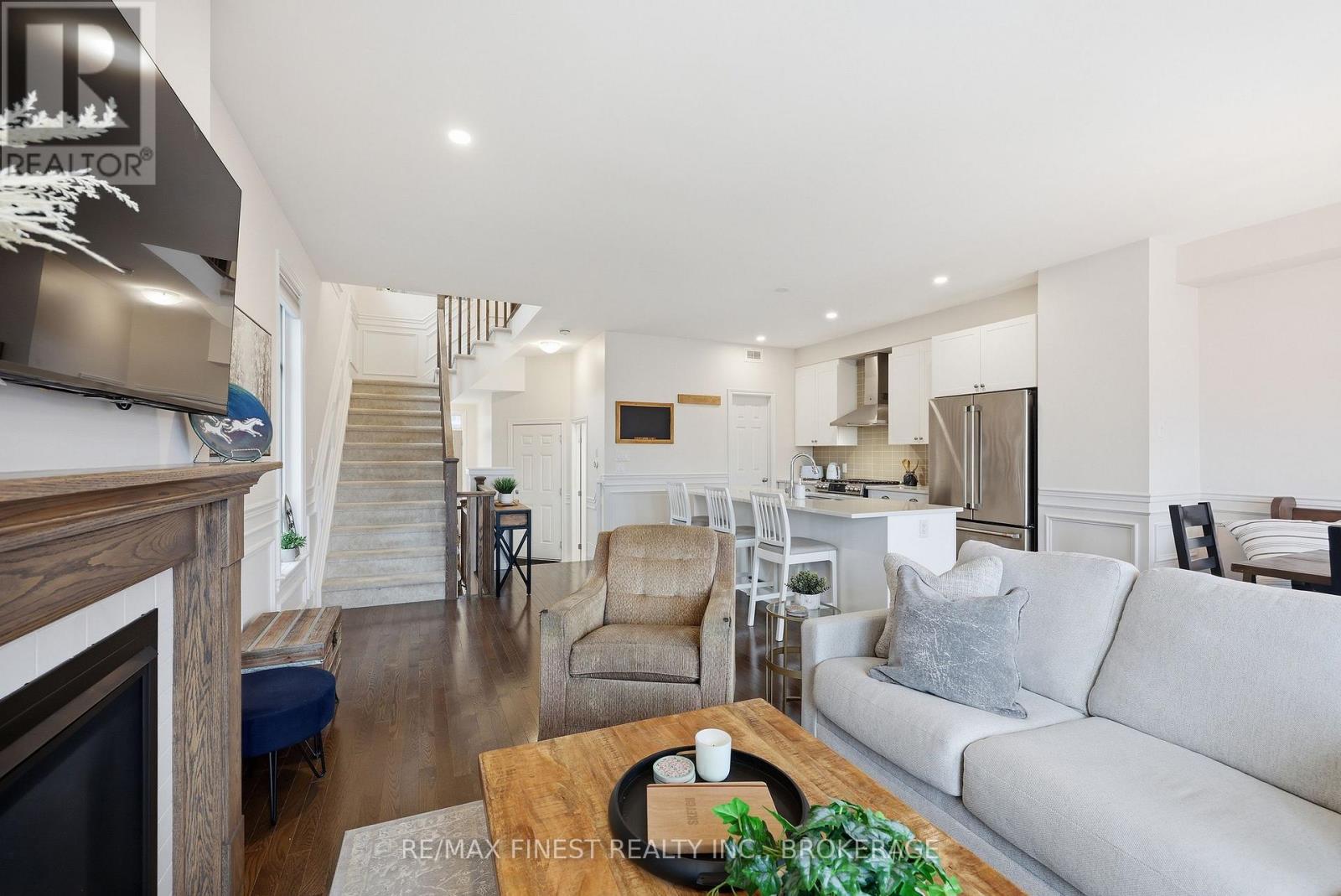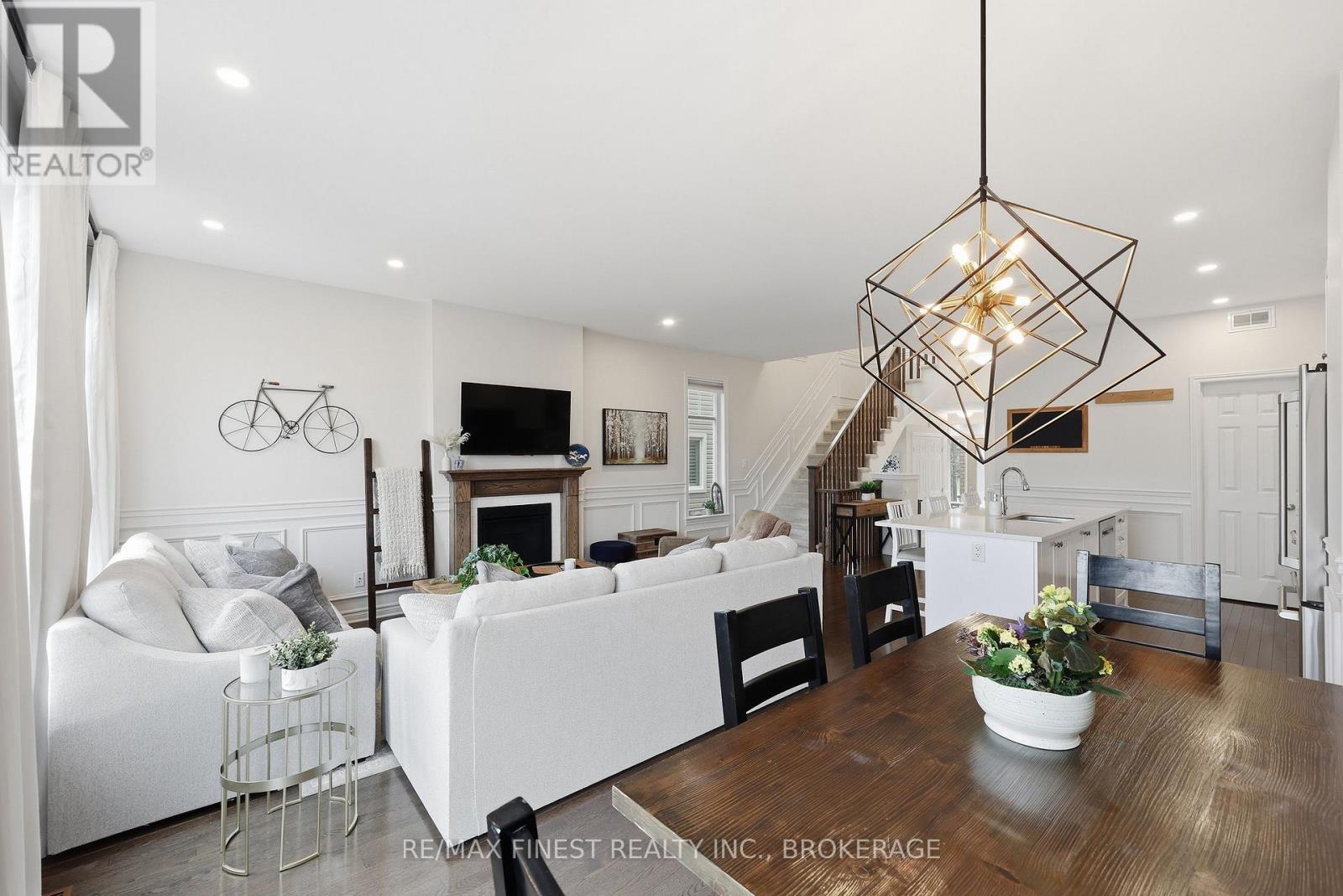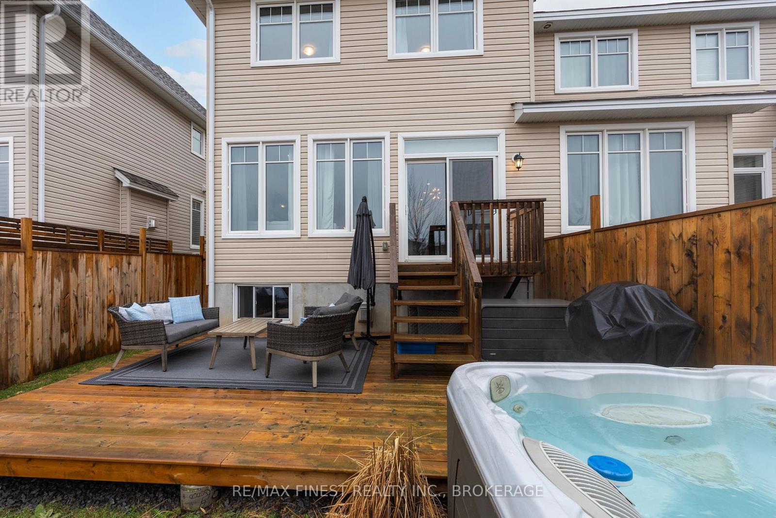 ABSOLUTELY LOADED!! A rare opportunity to own an END UNIT Tamarak 3 Bed 2.5 Bath Townhouse in the Woodhaven subdivision, overlooking St. Genevieve Catholic Elementary School with fast access to the 401 and all west end amenities. This gorgeous home was built in 2021 and is loaded with $42,000 of Builder Upgrades PLUS $30,000 of exterior extras! The main floor features, gleaming hardwood floors, wainscoting throughout, high ceilings, pot lights, powder room, upgraded maple cabinetry in the open concept kitchen with quartz countertops, Walk-in Pantry, high end stainless steel appliances, including gas range for cooking, gas fireplaces in the main living room and cozy fully finished lower rec room, large deck, and fully fenced backyard with Hydro spa hot tub still under warranty. The upper level features 3 spacious bedrooms, including a massive primary bedroom with luxurious 3pc en-suite with glass shower and soaker tub, a large walk-in closet, laundry room between bedrooms plus a 4 piece main bathroom. Don't miss out!! (id:28469)