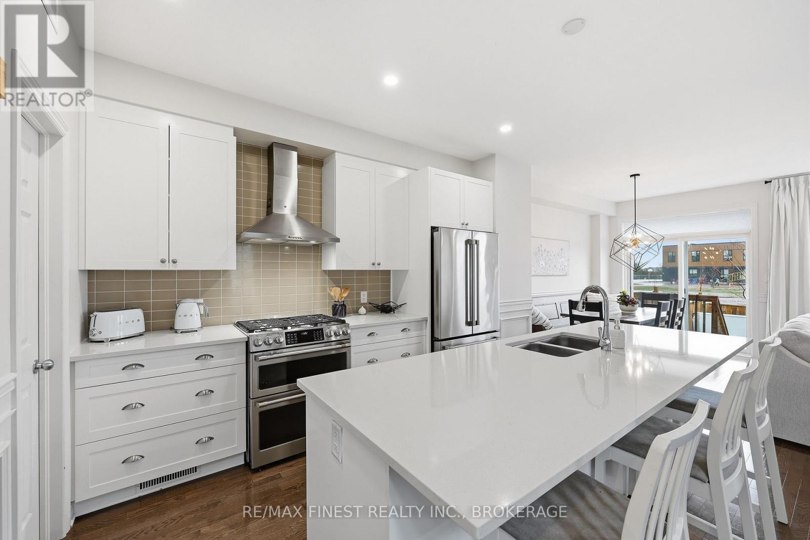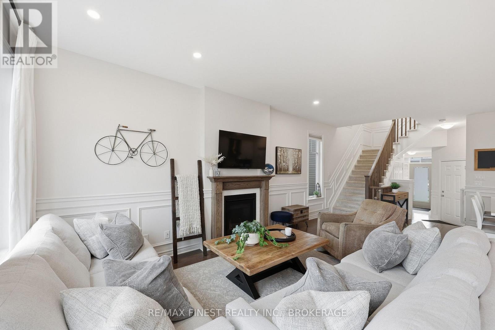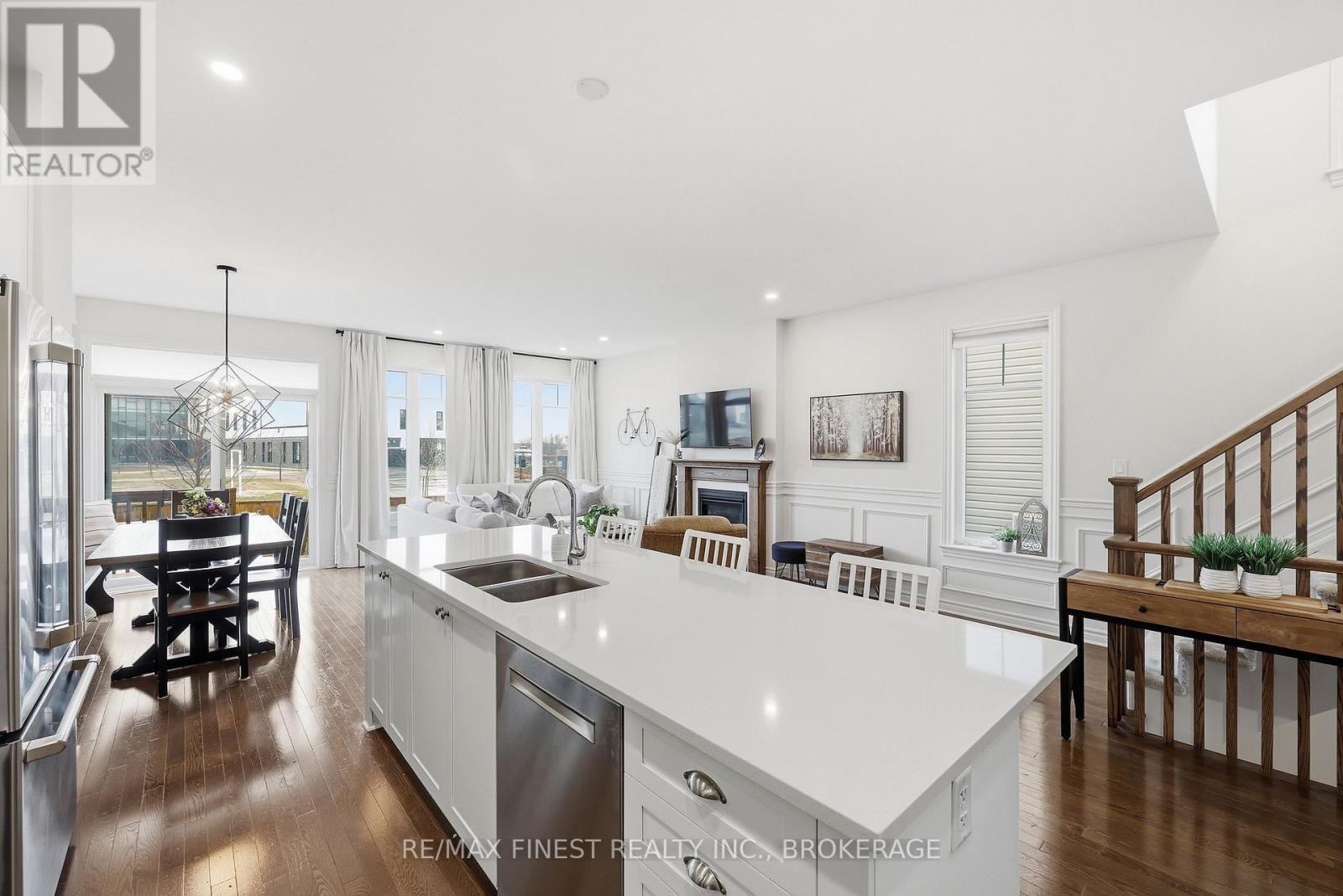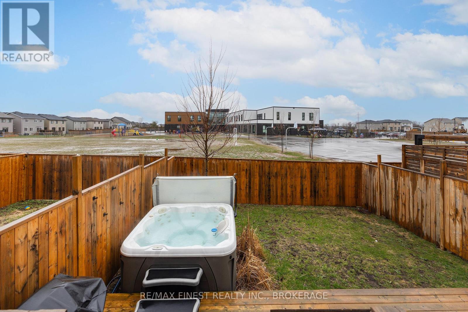 ABSOLUTELY LOADED!! A rare opportunity to own an END UNIT Tamarak 3 Bed 2.5 Bath Townhouse in the Woodhaven subdivision, overlooking St. Genevieve Catholic Elementary School with fast access to the 401 and all west end amenities. This gorgeous home was built in 2021 and is loaded with $42,000 of Builder Upgrades PLUS $30,000 of exterior extras! The main floor features, gleaming hardwood floors, wainscoting throughout, high ceilings, pot lights, powder room, upgraded maple cabinetry in the open concept kitchen with quartz countertops, Walk-in Pantry, high end stainless steel appliances, including gas range for cooking, gas fireplaces in the main living room and cozy fully finished lower rec room, large deck, and fully fenced backyard with Hydro spa hot tub still under warranty. The upper level features 3 spacious bedrooms, including a massive primary bedroom with luxurious 3pc en-suite with glass shower and soaker tub, a large walk-in closet, laundry room between bedrooms plus a 4 piece main bathroom. Don't miss out!! (id:28469)