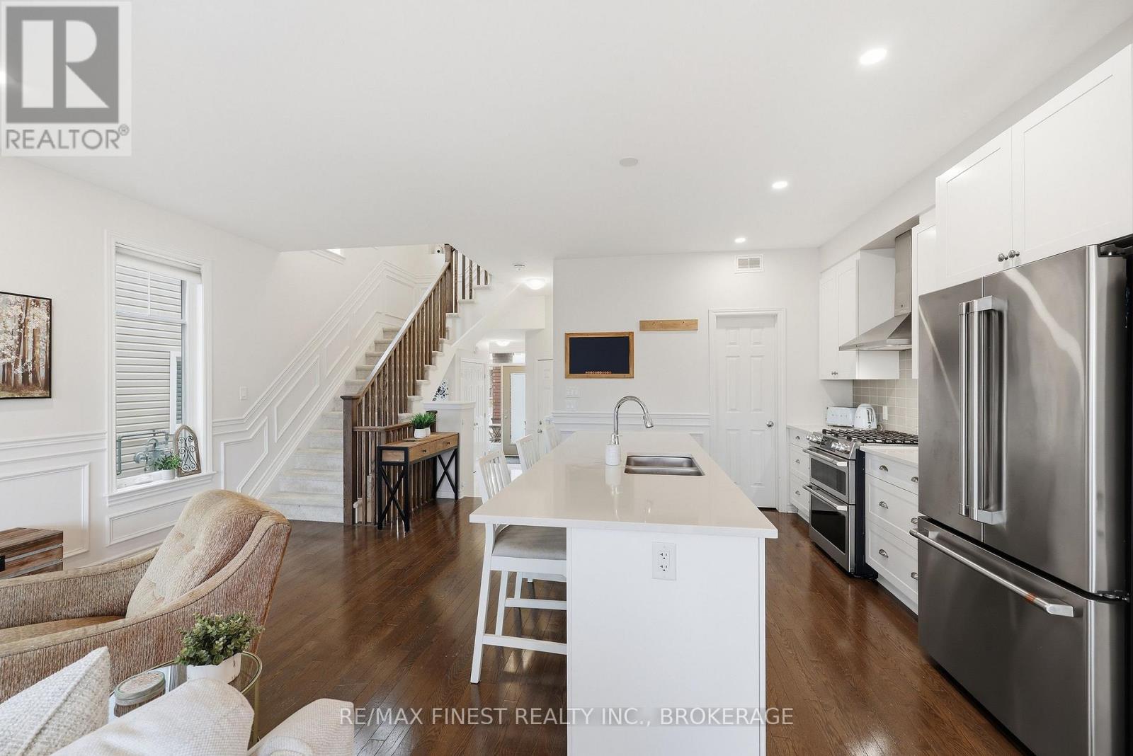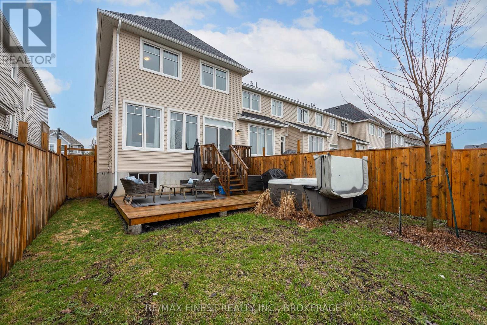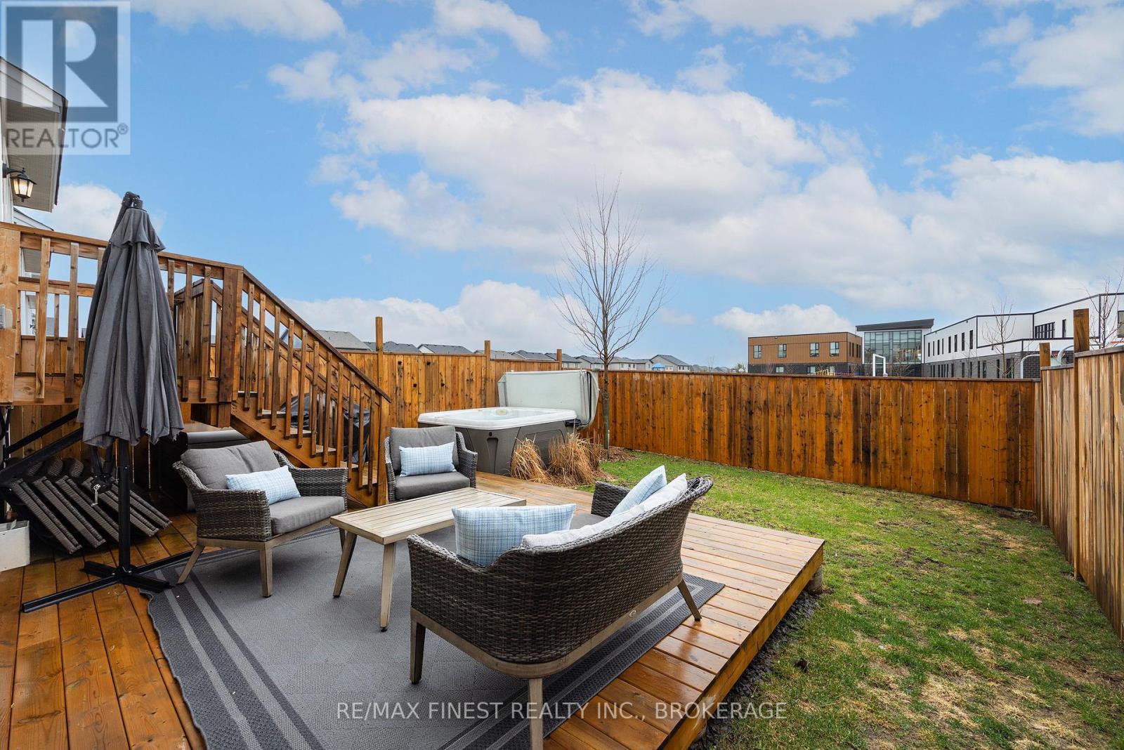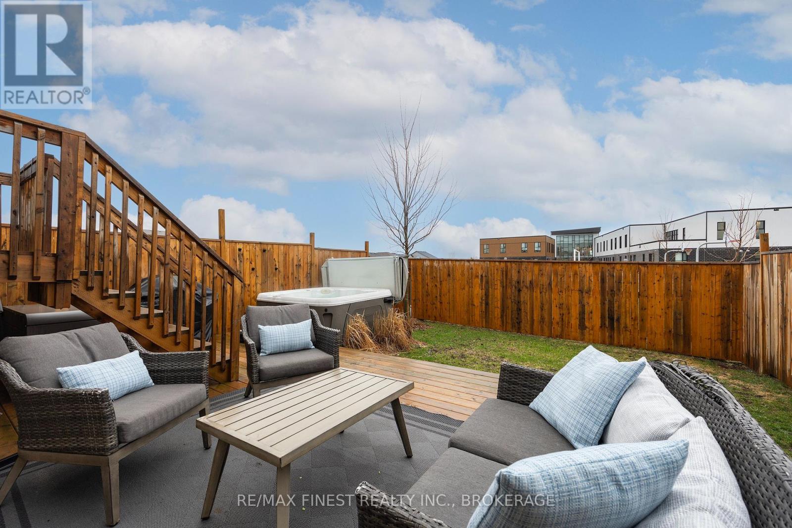 ABSOLUTELY LOADED!! A rare opportunity to own an END UNIT Tamarak 3 Bed 2.5 Bath Townhouse in the Woodhaven subdivision, overlooking St. Genevieve Catholic Elementary School with fast access to the 401 and all west end amenities. This gorgeous home was built in 2021 and is loaded with $42,000 of Builder Upgrades PLUS $30,000 of exterior extras! The main floor features, gleaming hardwood floors, wainscoting throughout, high ceilings, pot lights, powder room, upgraded maple cabinetry in the open concept kitchen with quartz countertops, Walk-in Pantry, high end stainless steel appliances, including gas range for cooking, gas fireplaces in the main living room and cozy fully finished lower rec room, large deck, and fully fenced backyard with Hydro spa hot tub still under warranty. The upper level features 3 spacious bedrooms, including a massive primary bedroom with luxurious 3pc en-suite with glass shower and soaker tub, a large walk-in closet, laundry room between bedrooms plus a 4 piece main bathroom. Don't miss out!! (id:28469)