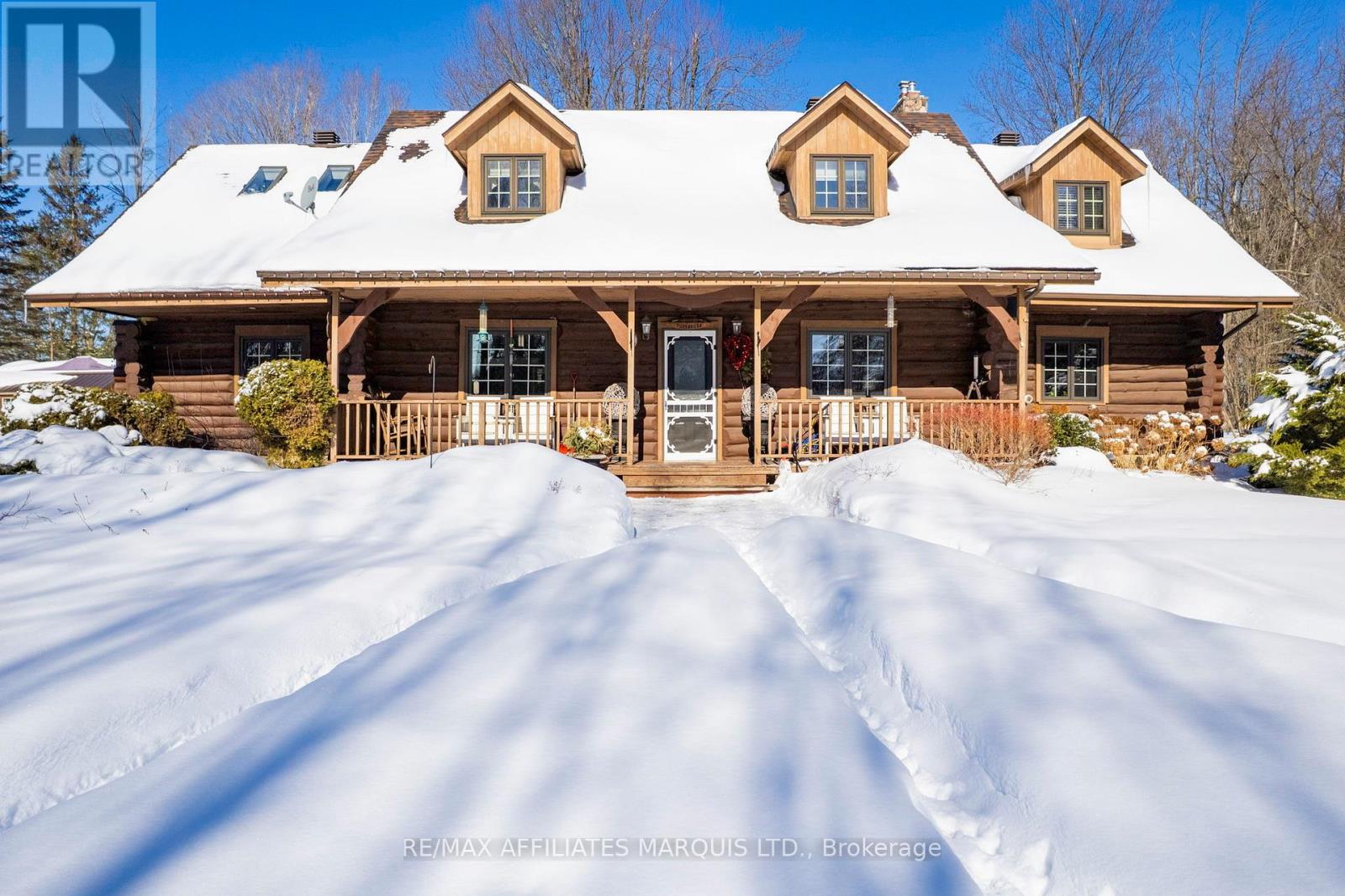 Welcome to this stunning 3,000 sq. ft. log home set on over 2 beautifully maintained acres just outside the city limits. Offering the perfect blend of peaceful rural living and convenient proximity to Cornwall, this property is ideal for families seeking space, character, and comfort. From the moment you arrive, the charm is undeniable. A spacious front porch invites you to relax and enjoy the quiet surroundings. Inside, exposed wood throughout the main floor creates a warm, timeless atmosphere. The updated eat-in kitchen features custom cabinetry, granite countertops, and a large island perfect for gathering. The inviting living room is highlighted by a striking stone fireplace with a gas insert and patio doors leading to the expansive screened-in patio, ideal for evening relaxation. A separate main-floor family room offers additional living space, and a convenient 2-piece bath combined with laundry adds everyday practicality. Upstairs you'll find four generously sized bedrooms. The primary suite includes a private 3-piece ensuite and a bonus room that could serve as a fifth bedroom, office, nursery, or exercise space. A full bathroom and an additional second-floor family room provide flexibility for growing families. The basement is currently used for storage but offers excellent potential for future development, with a walk-out from the attached single-car garage. Outside, the immaculate yard showcases mature landscaping, stone walkways, multiple patio areas, and a fire pit, perfect for entertaining or peaceful evenings under the stars. With ample parking and space for campers, boats, or recreational vehicles, this property blends lifestyle and practicality. Located minutes to Cornwall, approximately one hour to Ottawa and just over an hour to Montreal, this home offers space, warmth, and character you won't want to miss. (id:28469)