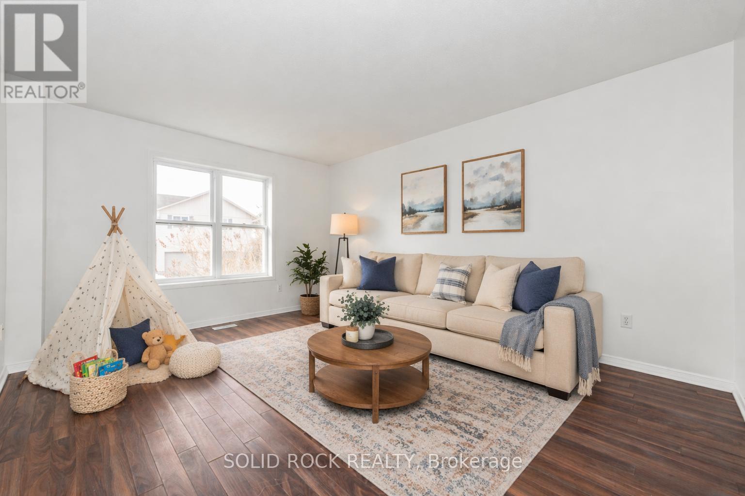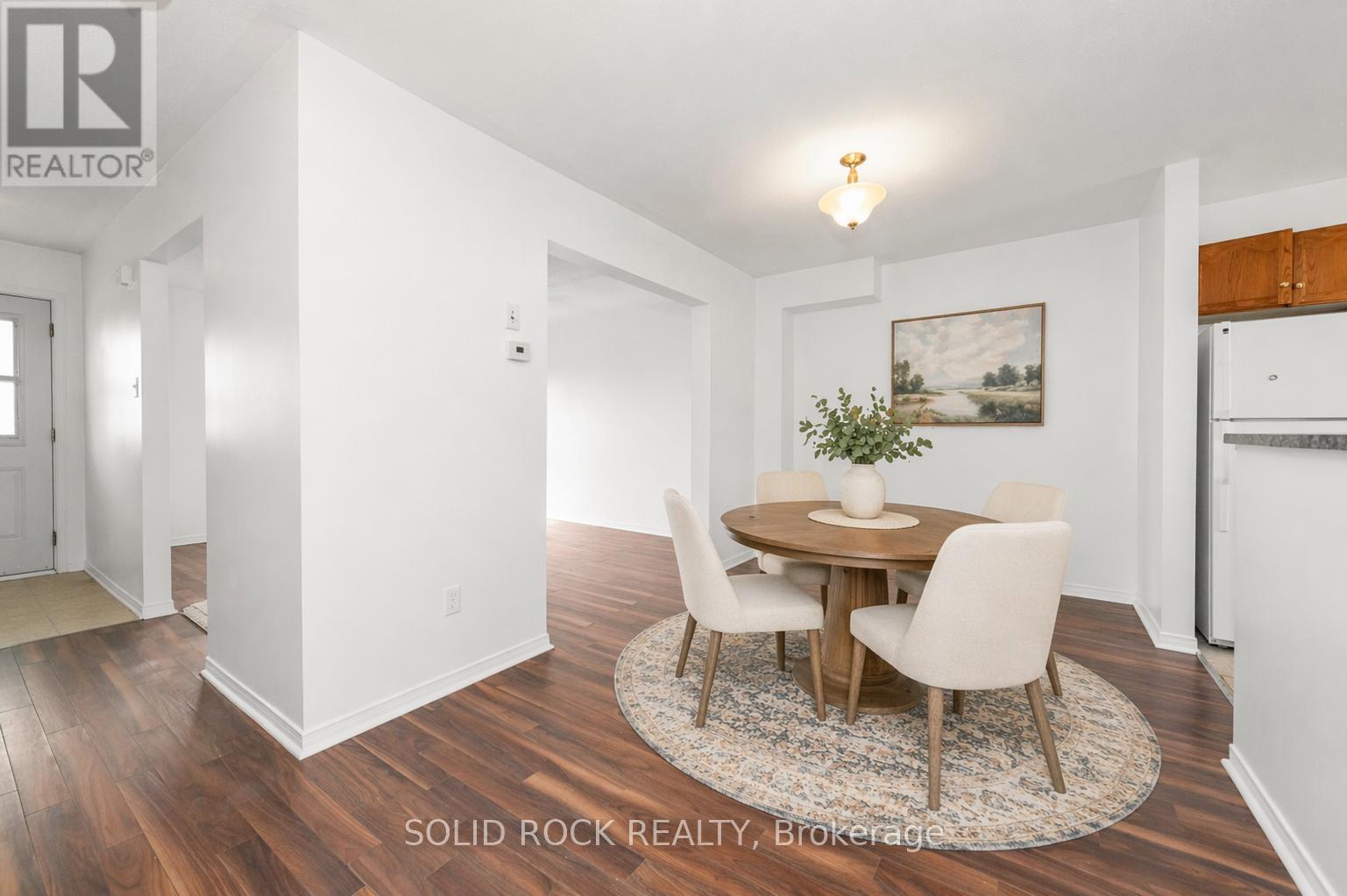 MOVE IN READY AND VACANT. Freshly painted townhouse (2026) in Westview Heights/Carleton Place. With a fantastic family-friendly layout, the main floor offers an inviting breakfast bar, open-concept living and dining spaces, and a kitchen overlooking the large 16x20 deck perfect for everyday living and effortless entertaining. This home features 3beds, 2baths and laminate flooring on all levels. Downstairs, the basement provides excellent versatility as adaptable living space ideal for guests, a home office, or recreation. Outside, a detached garage offers exciting potential as a workshop, studio, or extra storage. Powder room on main (2010), A/C unit (2010). Close to schools, parks, shopping. Quick access to HWY 7, 20 mins to Kanata/Ottawa. (id:28469)
