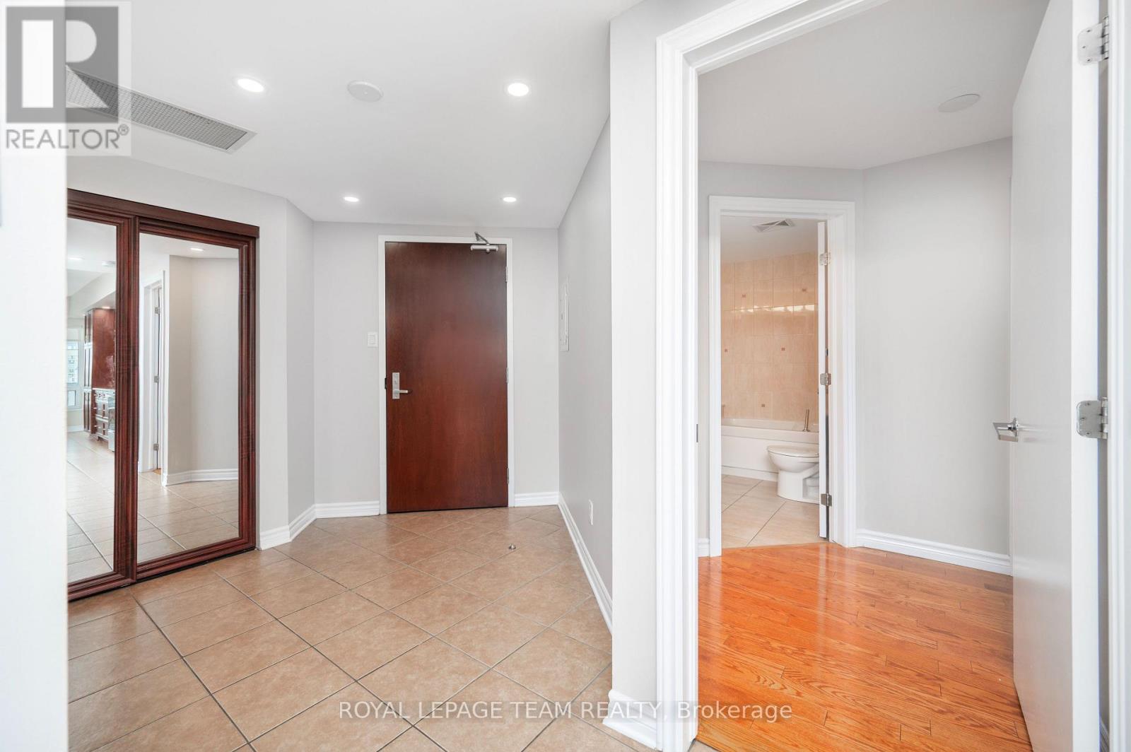 Discover elevated downtown living in this stunning 17th-floor 2-bedroom, 2-bathroom condo offering breathtaking panoramic views of Ottawa's skyline - truly a postcard-worthy backdrop day and night. Perfectly situated in the heart of the city, this residence delivers the ideal blend of comfort, style, and unbeatable convenience.The bright open-concept design showcases hardwood and tile flooring throughout, creating a seamless space for everyday living and effortless entertaining. The kitchen, dining, and living areas flow beautifully together, all framed by expansive windows filled with natural light.Step outside onto your private balcony - conveniently accessed from the primary bedroom - and enjoy a quiet retreat high above the city streets with spectacular views in every season.Both bedrooms are generously proportioned, complemented by two full bathrooms for added comfort and functionality.Residents enjoy premium building amenities including an indoor pool, fitness centre, outdoor terrace with BBQ area, secure underground parking, a storage locker, 24-hour concierge service, and controlled entry for peace of mind.Just steps to the Rideau Centre, public transit, restaurants, and Ottawa's vibrant downtown attractions, this pet-friendly condo (up to 25 lbs) offers an exceptional lifestyle in a prime location.Move in, settle in, and enjoy city living at its finest. (id:28469)